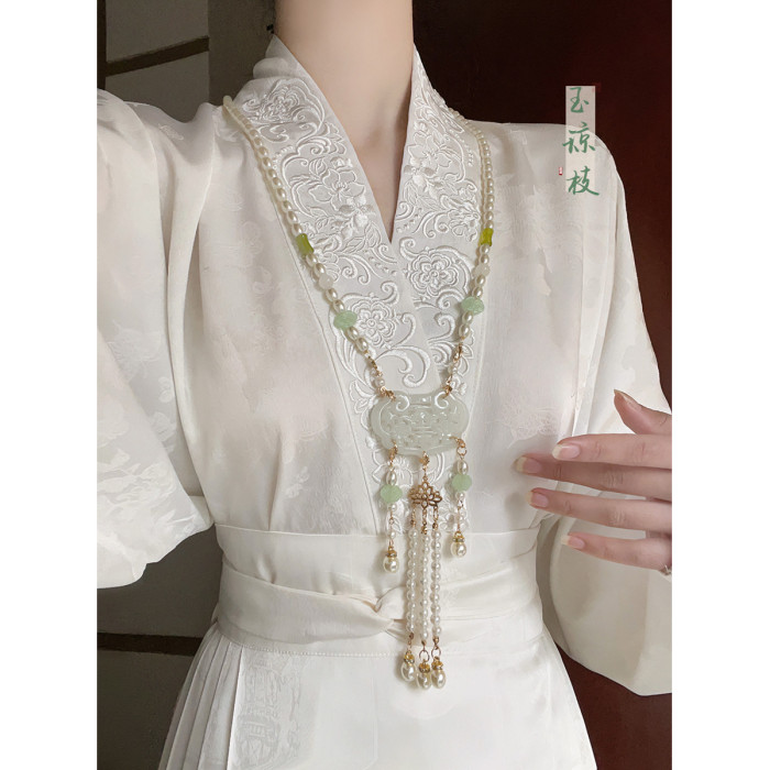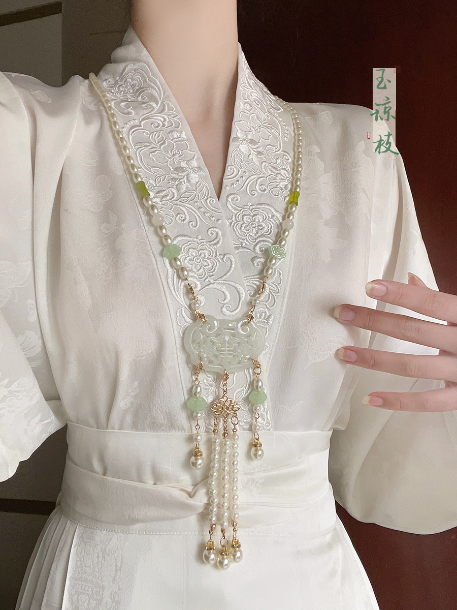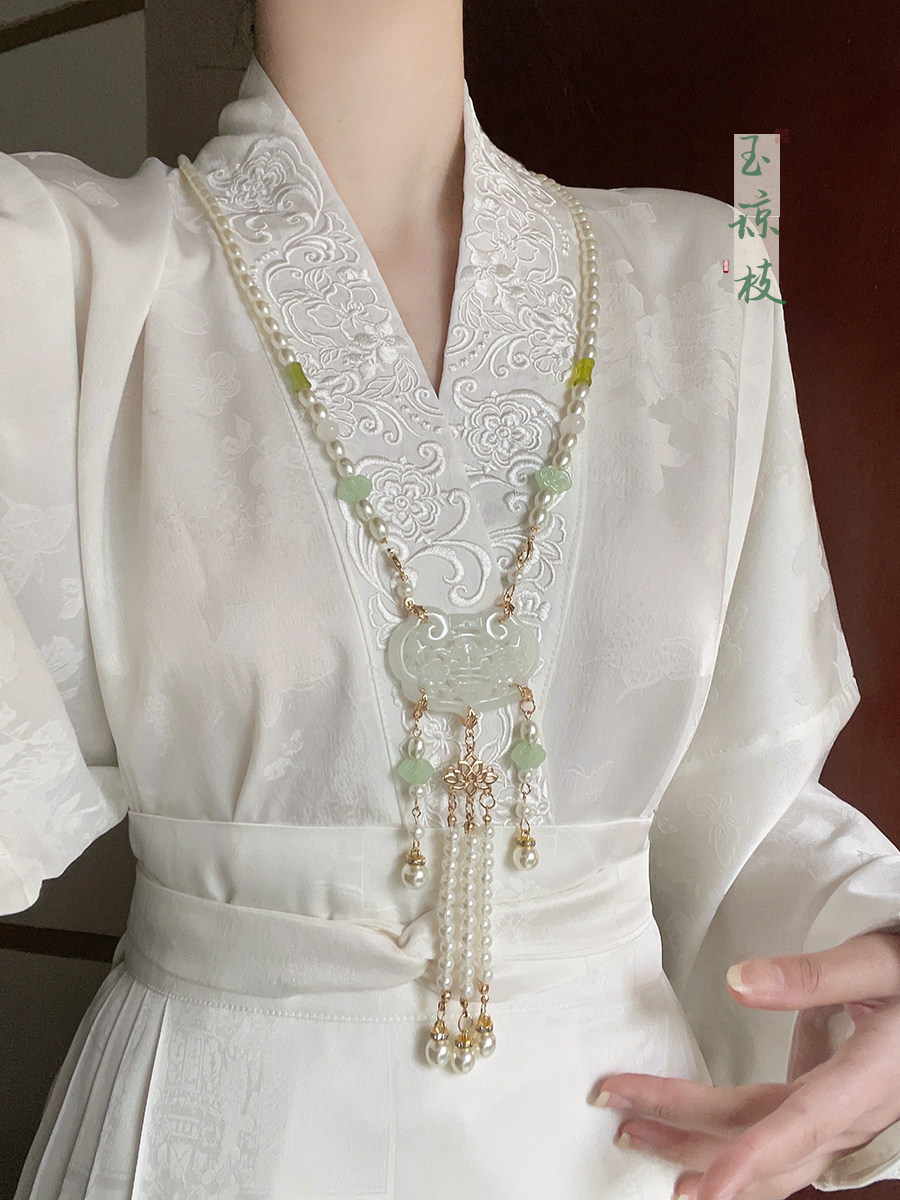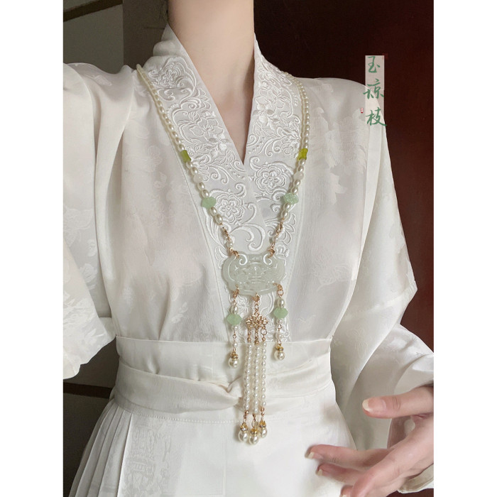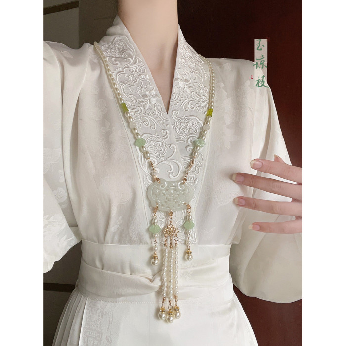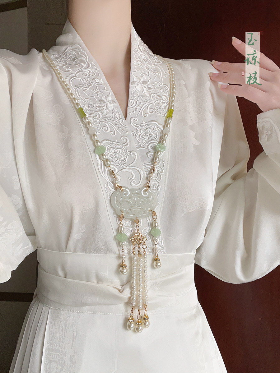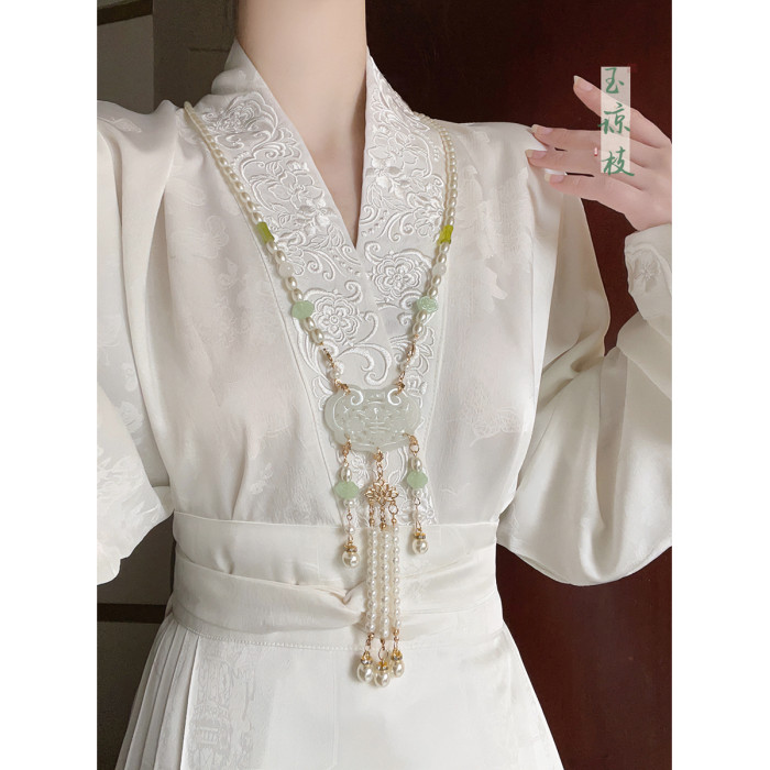 「祥雲」新中式白玉髓珍珠項鍊女古風瓔珞背雲流蘇串珠馬面裙配飾