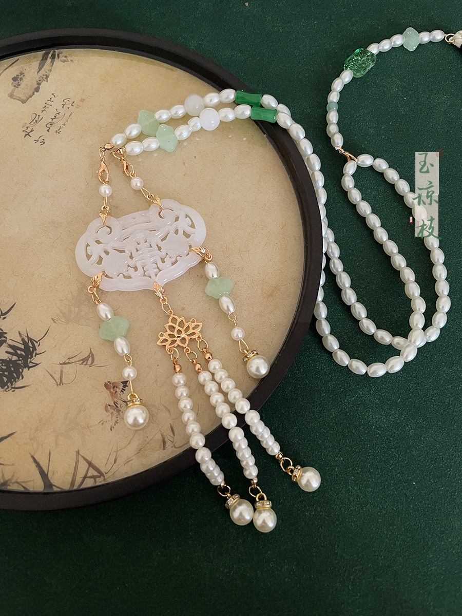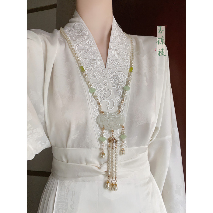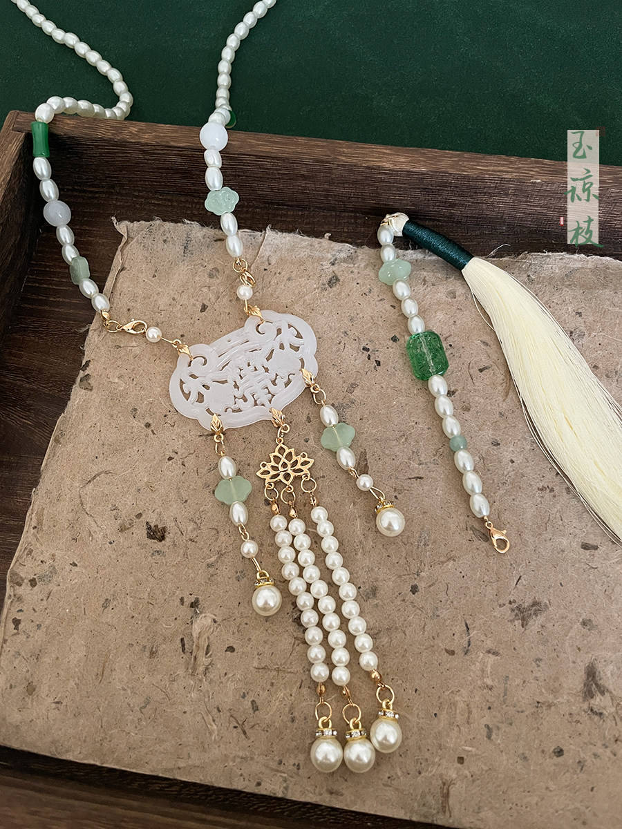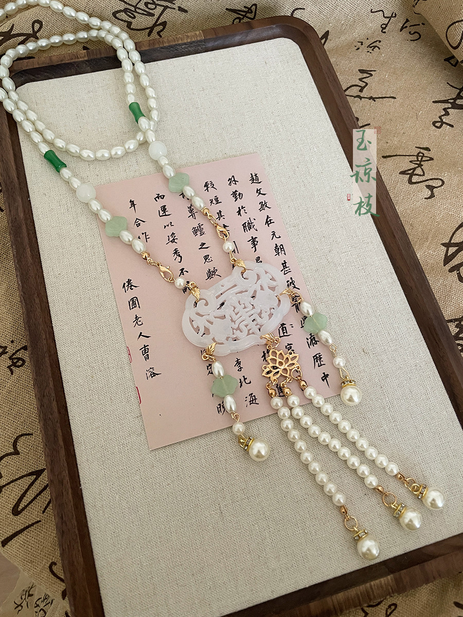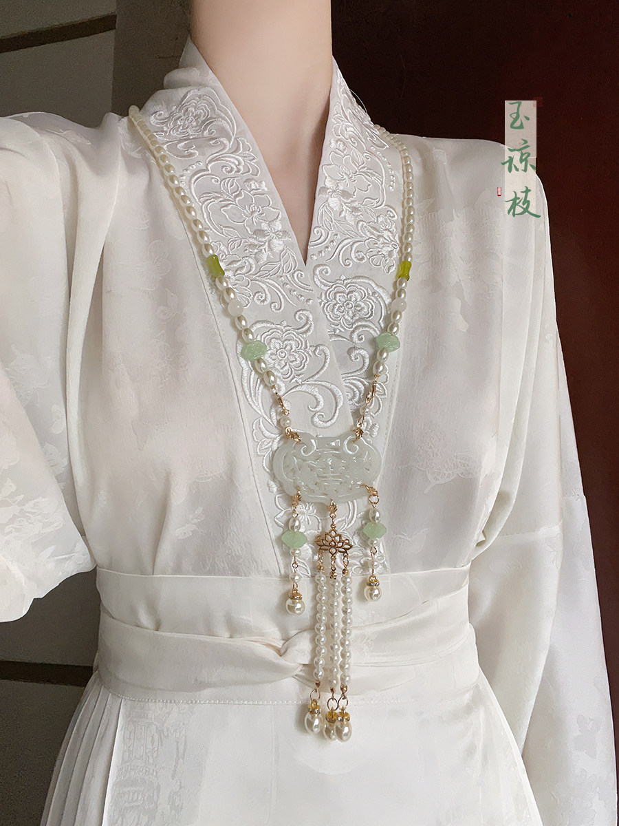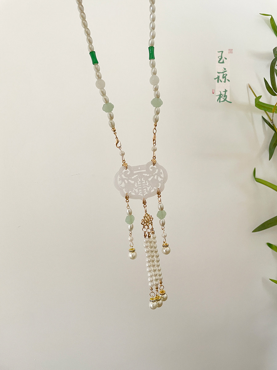 「祥雲」新中式白玉髓珍珠項鍊女古風瓔珞背雲流蘇串珠馬面裙配飾