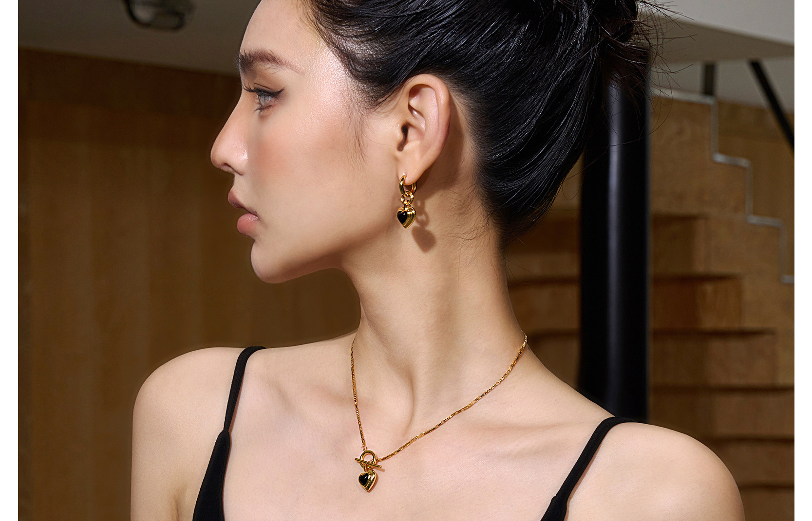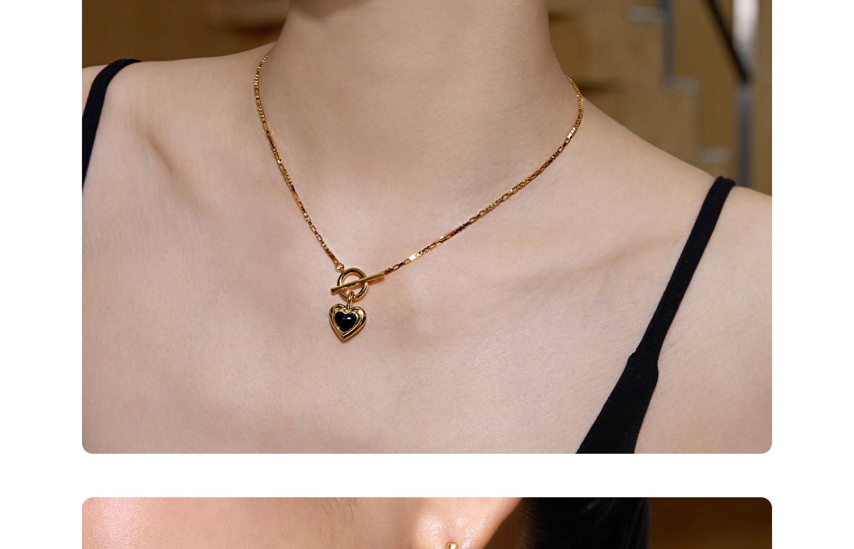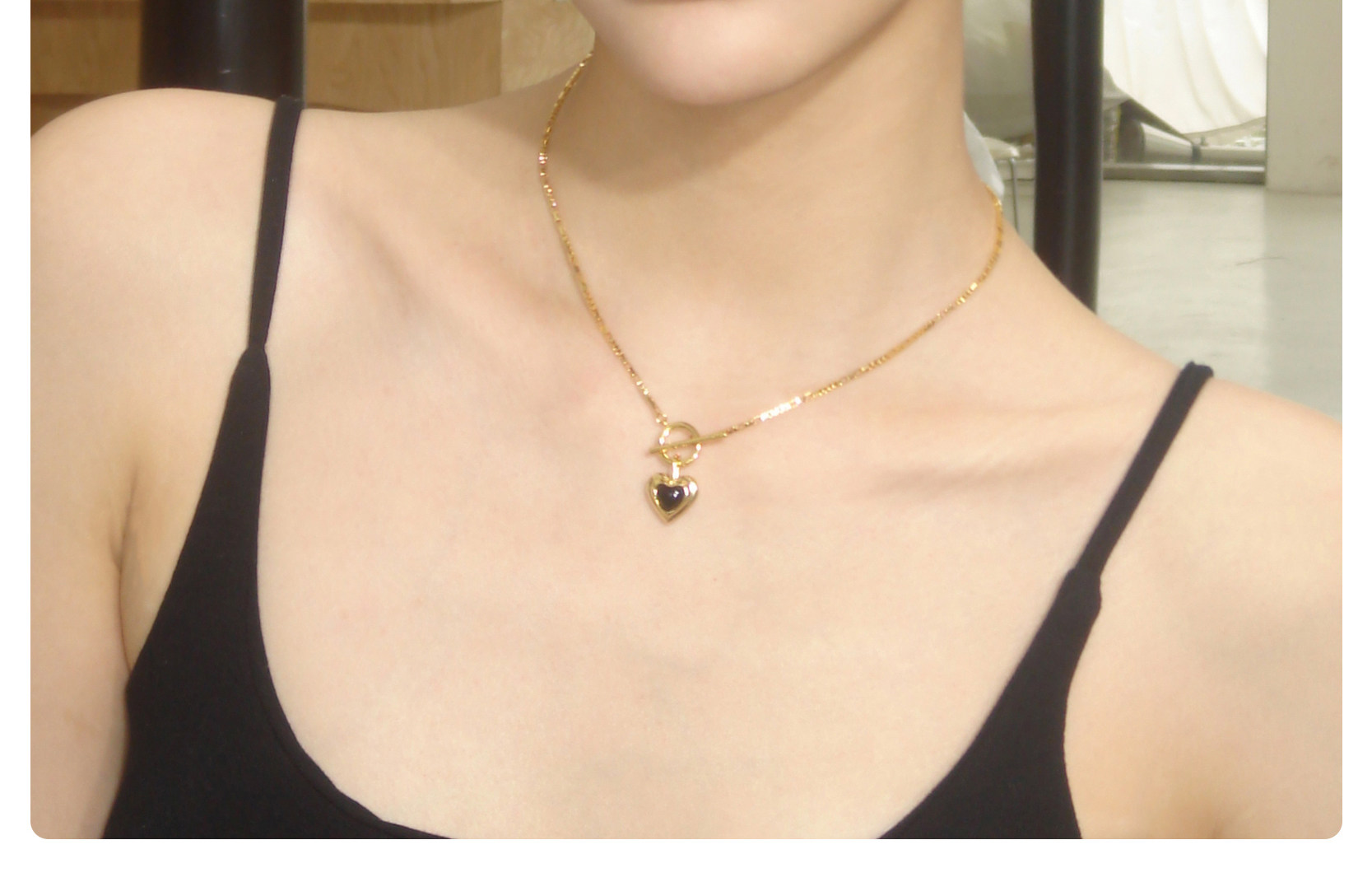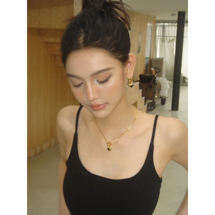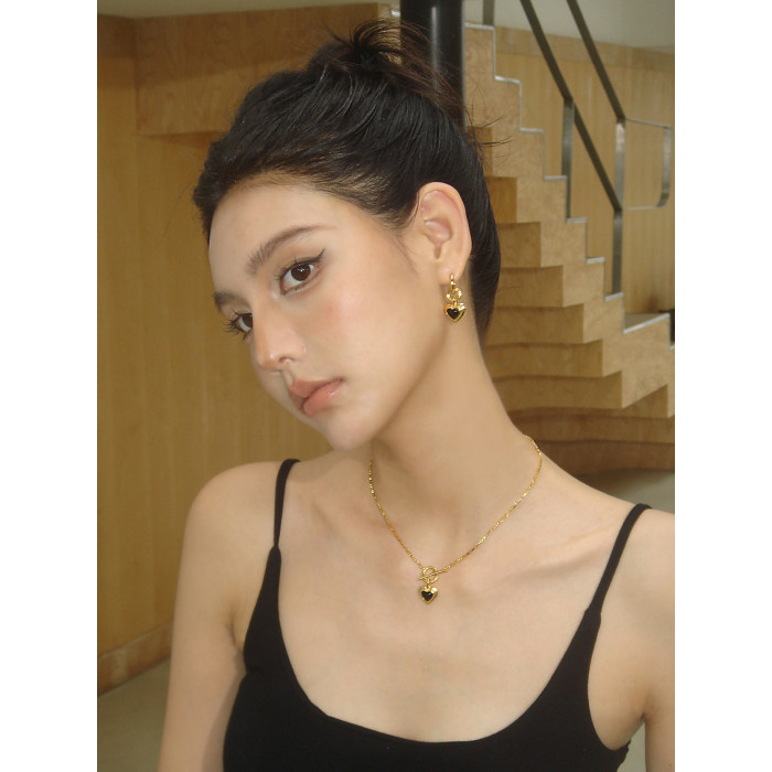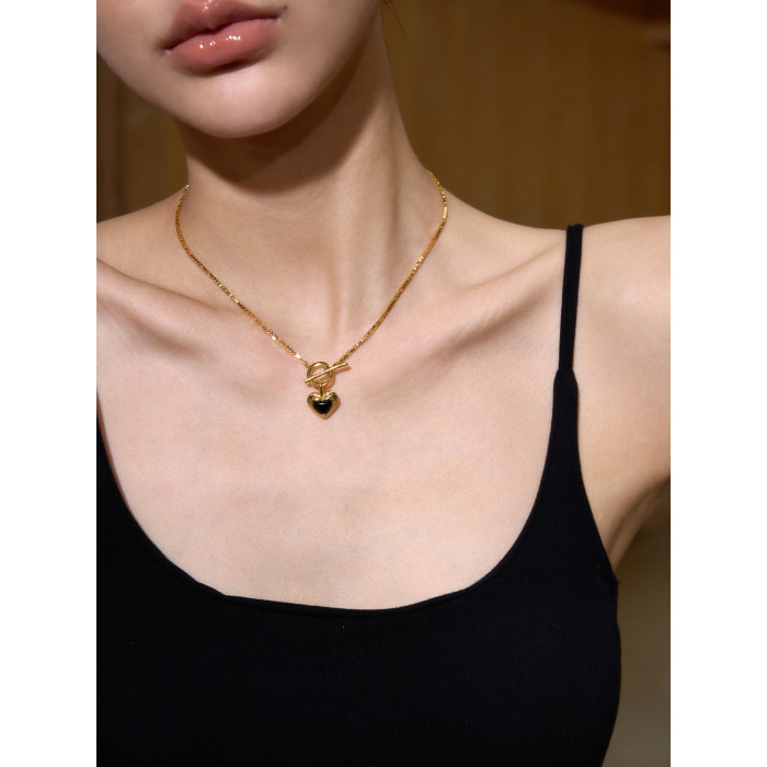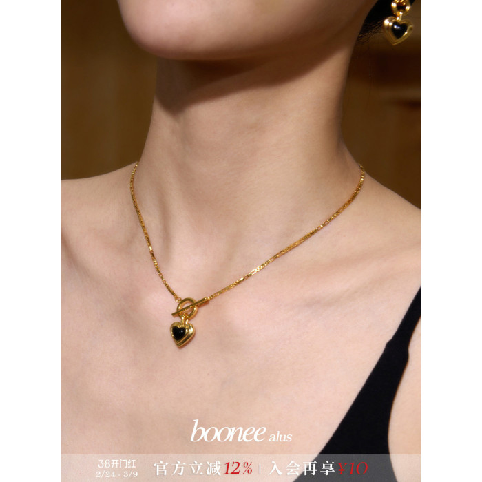 Boonee alus復古輕奢黑瑪瑙愛心項鍊新款爆款老錢風百搭鎖骨鍊