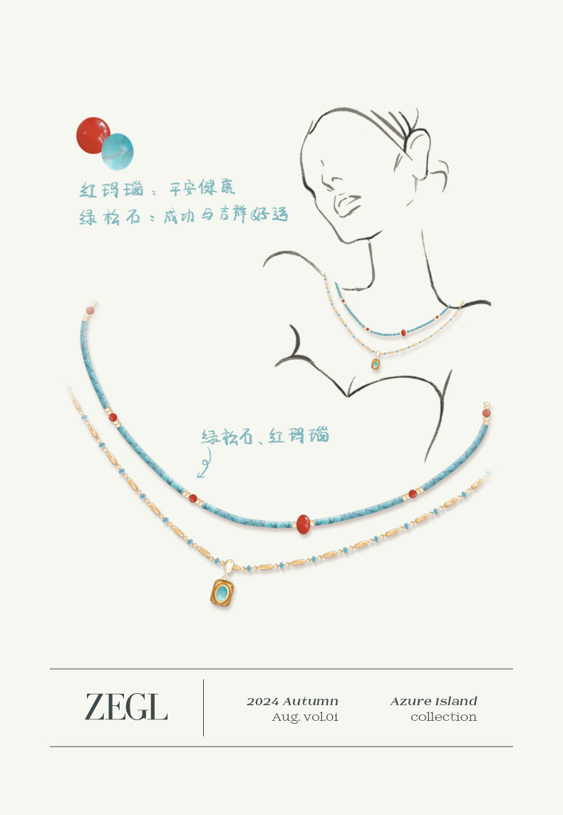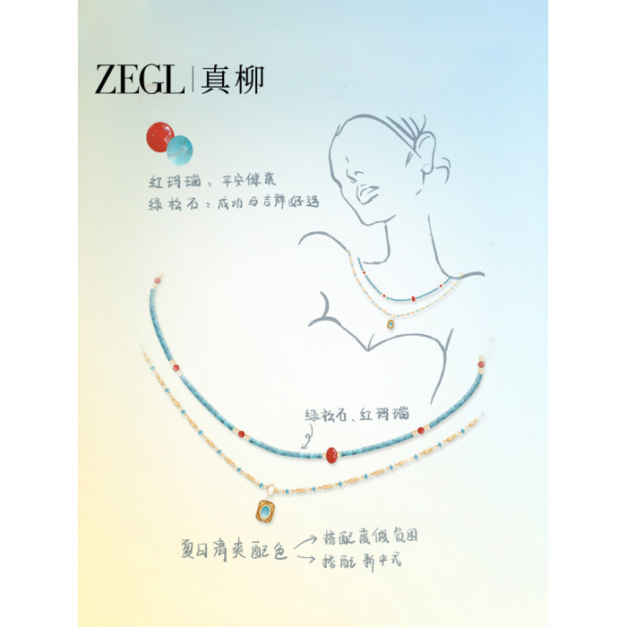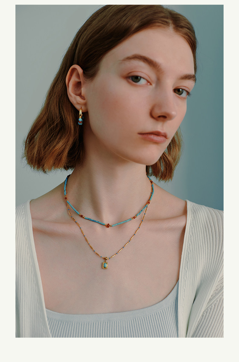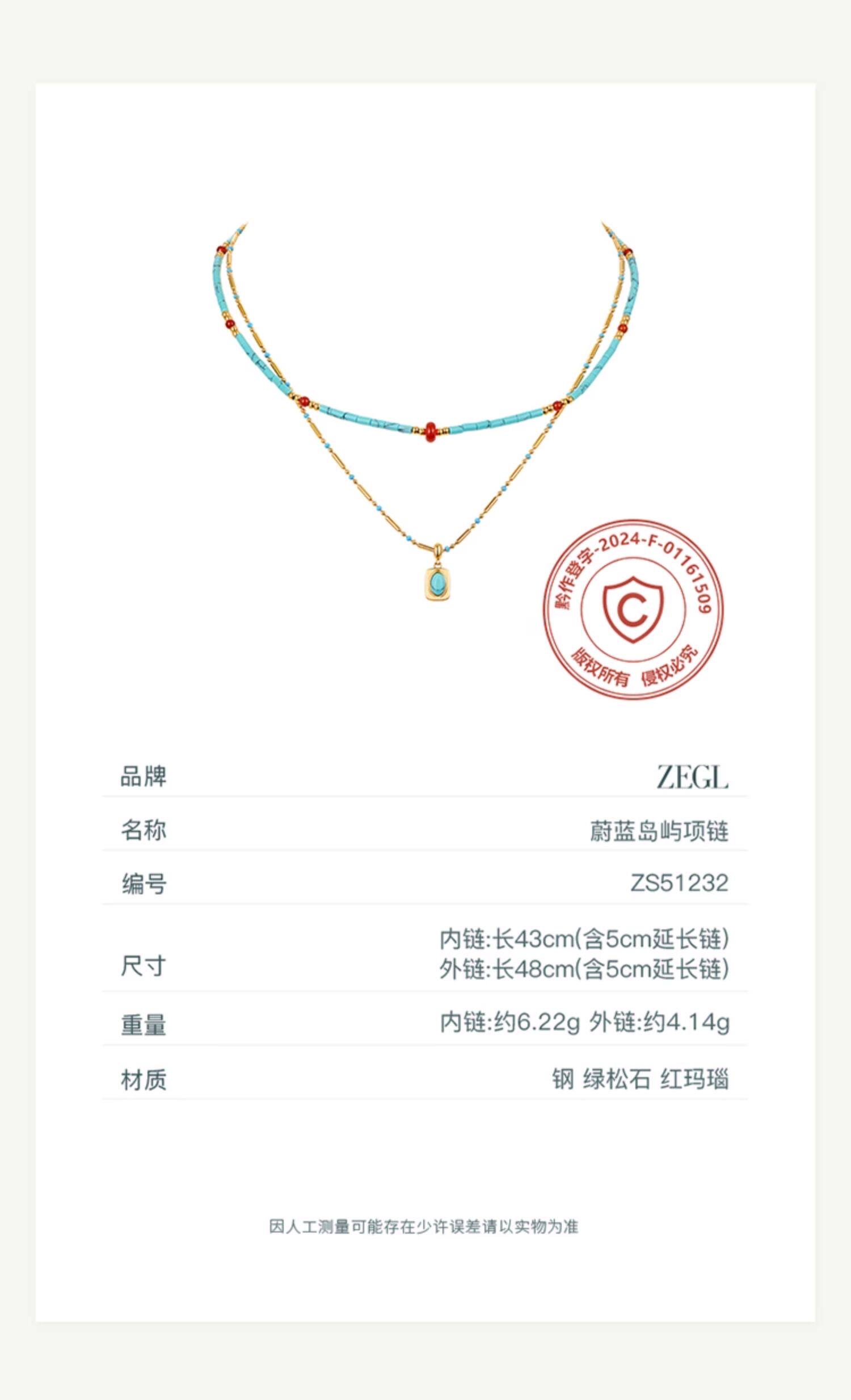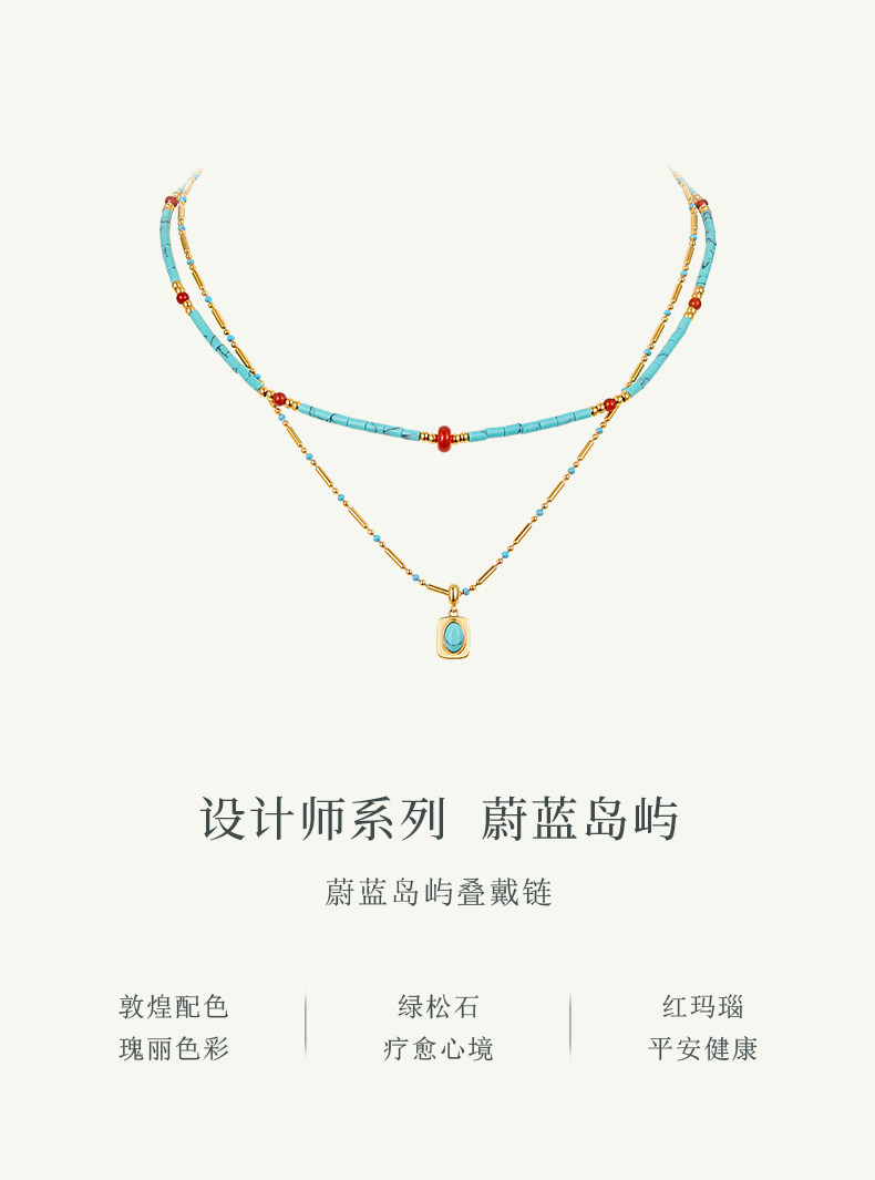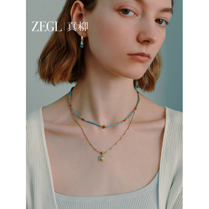 ZEGL設計師蔚藍島嶼綠松石曡戴項鍊配飾女輕奢小衆彩串海邊鎖骨鍊