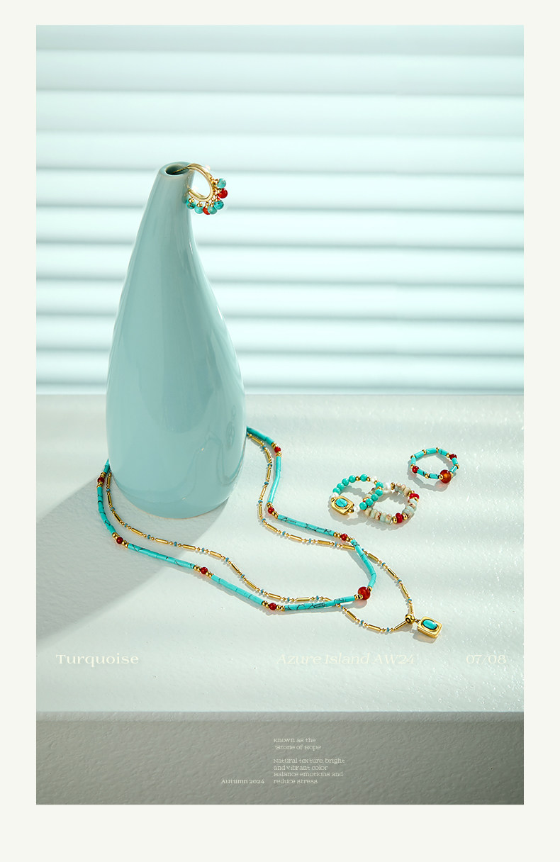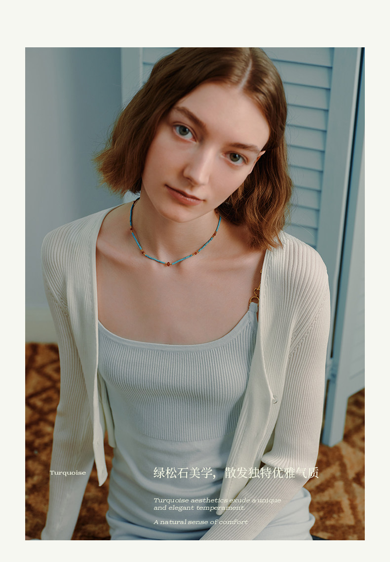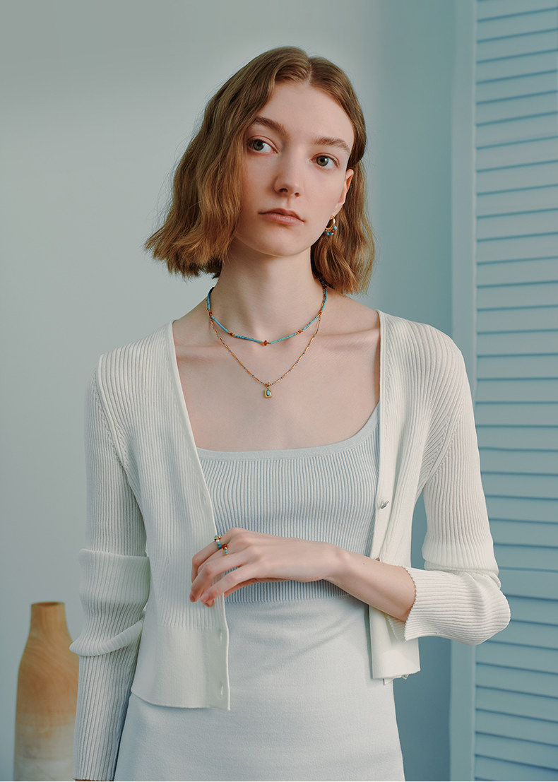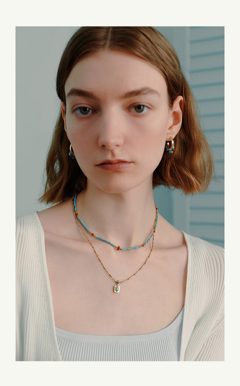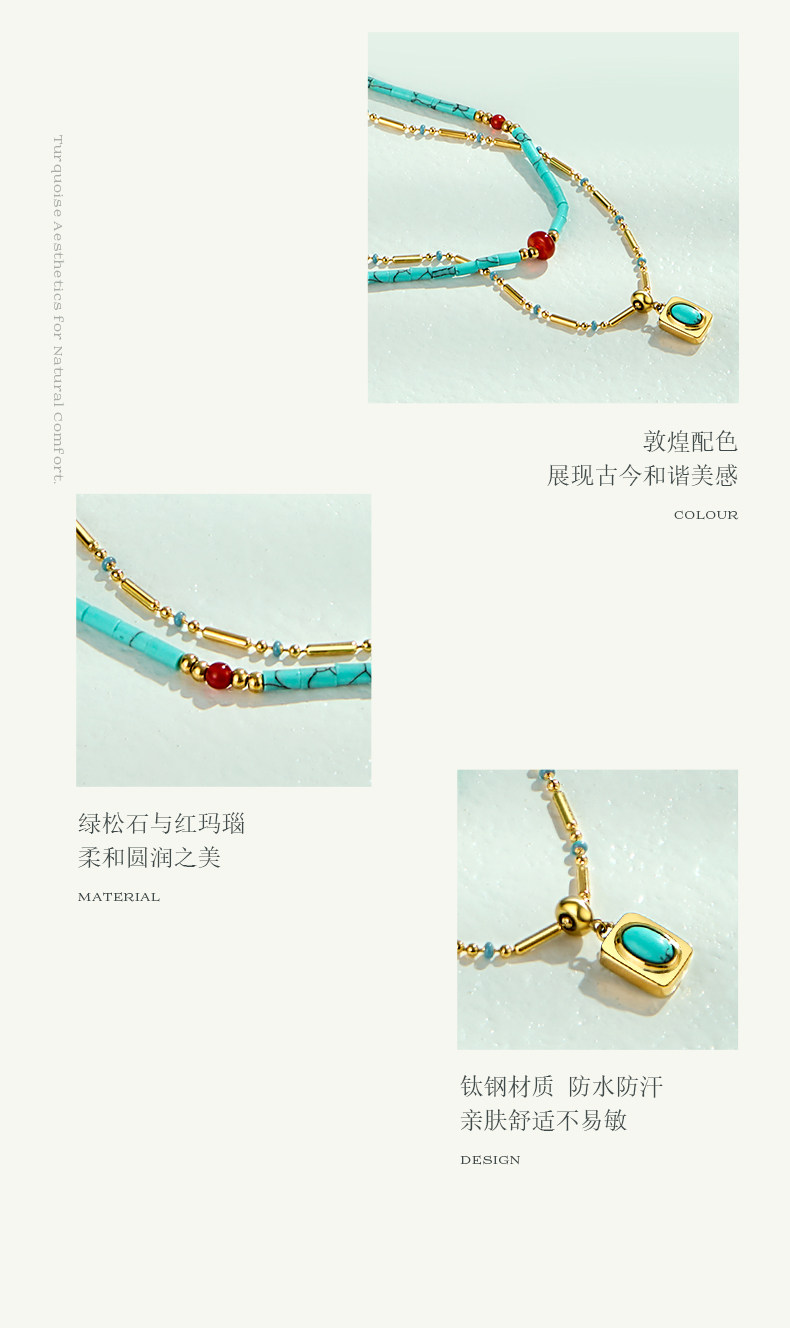ZEGL設計師蔚藍島嶼綠松石曡戴項鍊配飾女輕奢小衆彩串海邊鎖骨鍊
