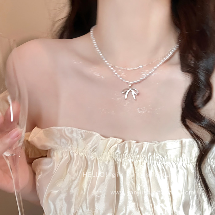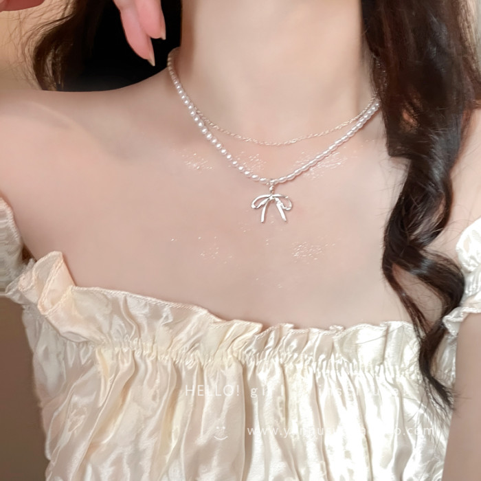 蝴蝶結小米珠珍珠項鍊女款2026新款輕奢小衆配飾鎖骨鍊高級感頸鏈