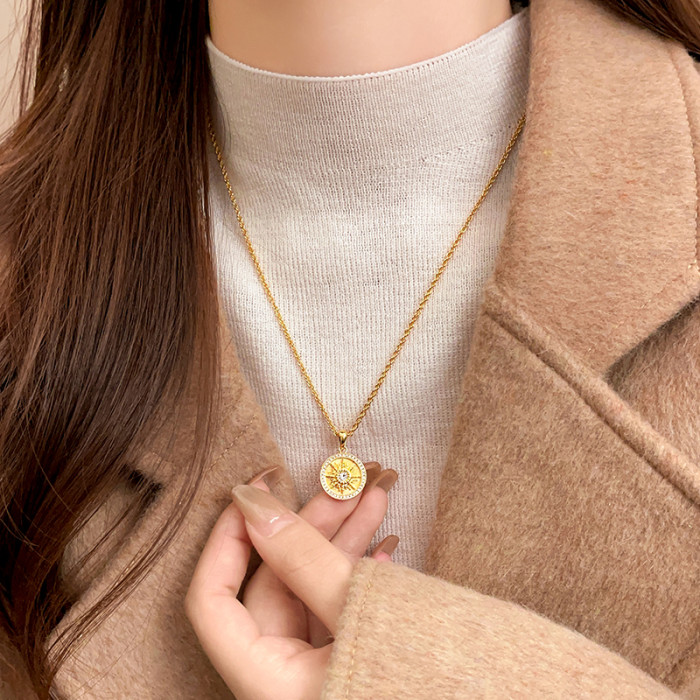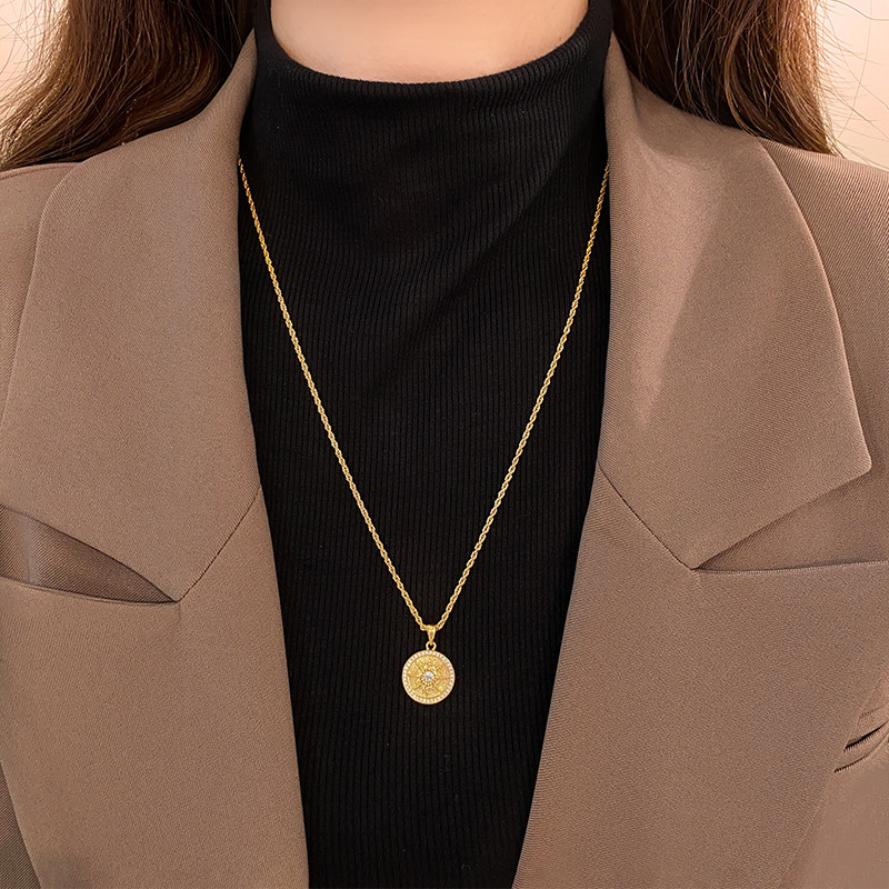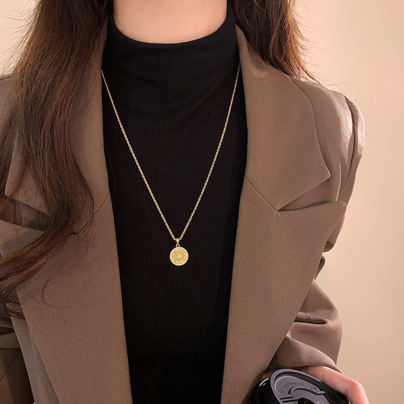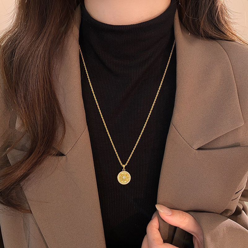 沙金太陽花項鍊女長款毛衣鏈大氣高檔高級感輕奢小衆金色頸鏈配飾