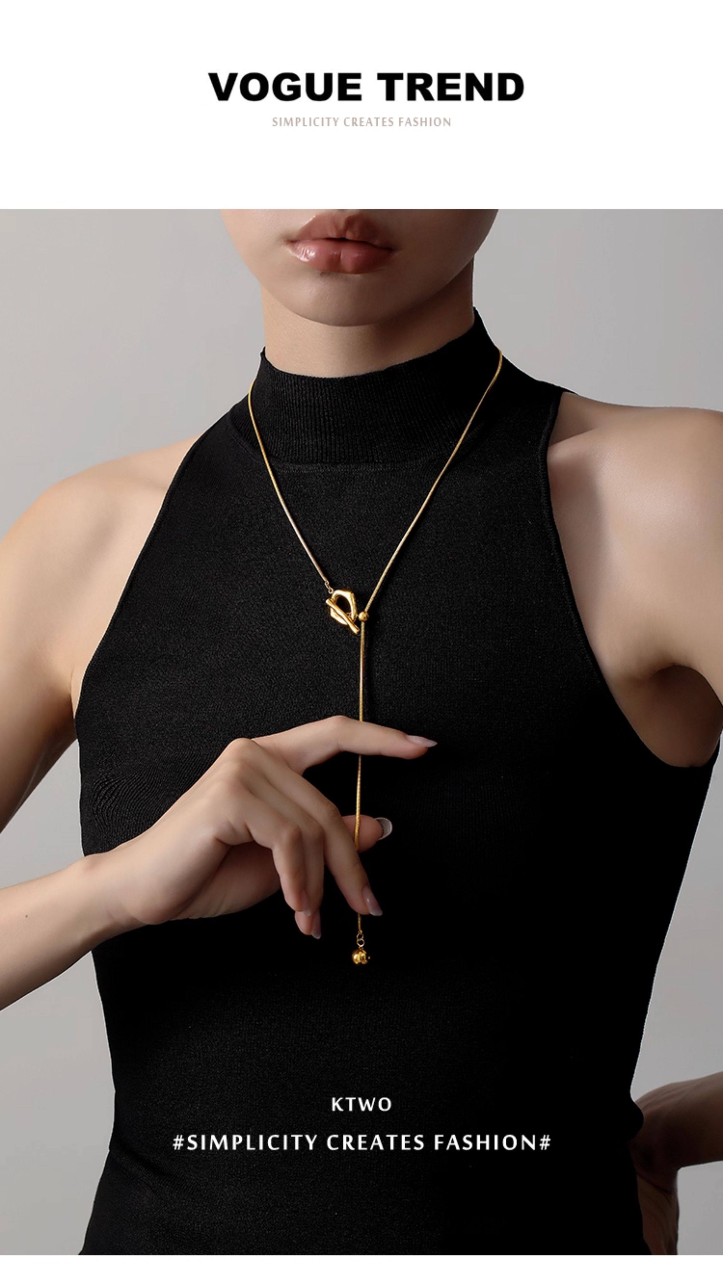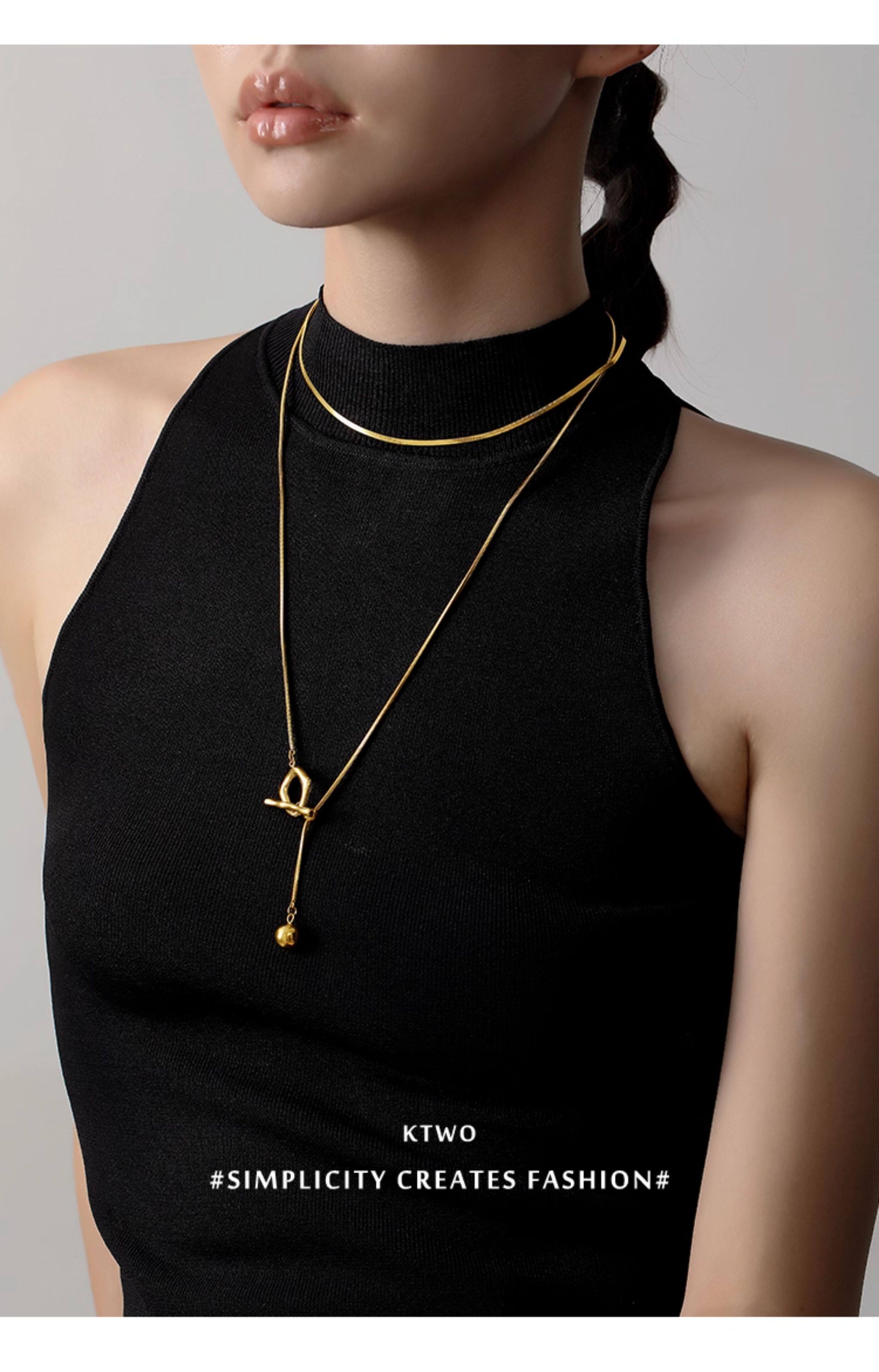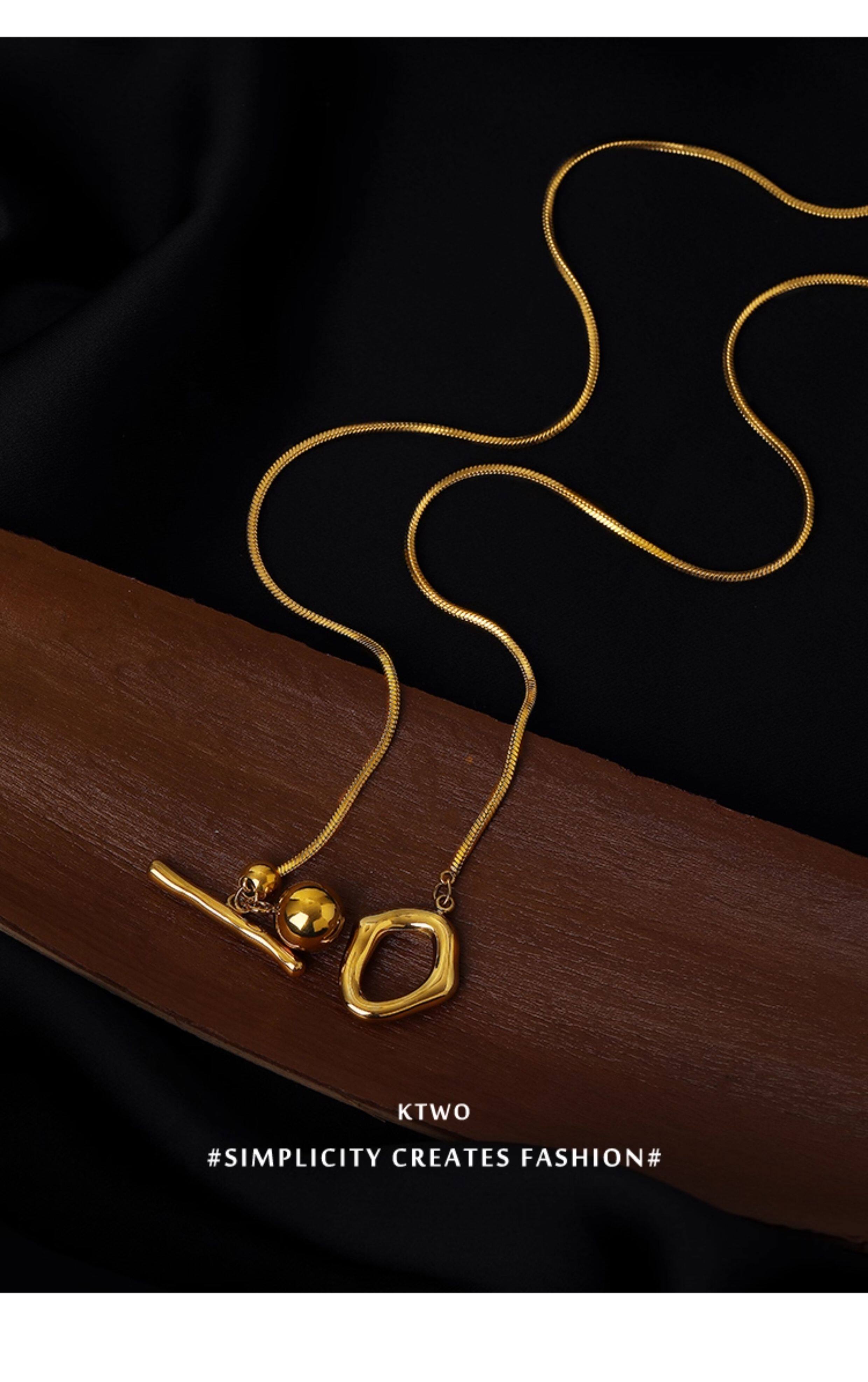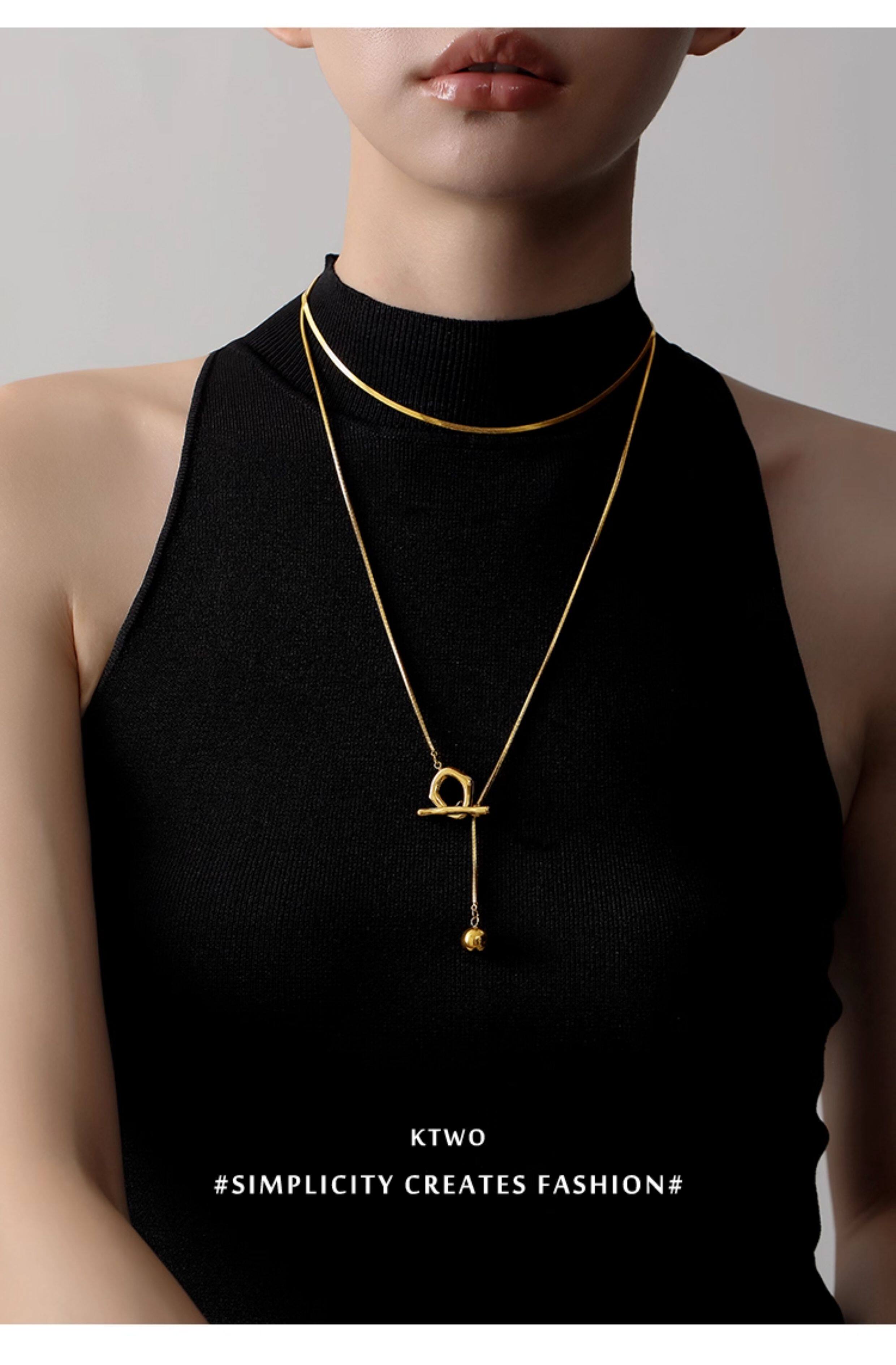 歐式時尚大氣T釦圓珠毛衣鏈女小衆輕奢鍍k金不掉色鈦鋼毛衫長項鍊