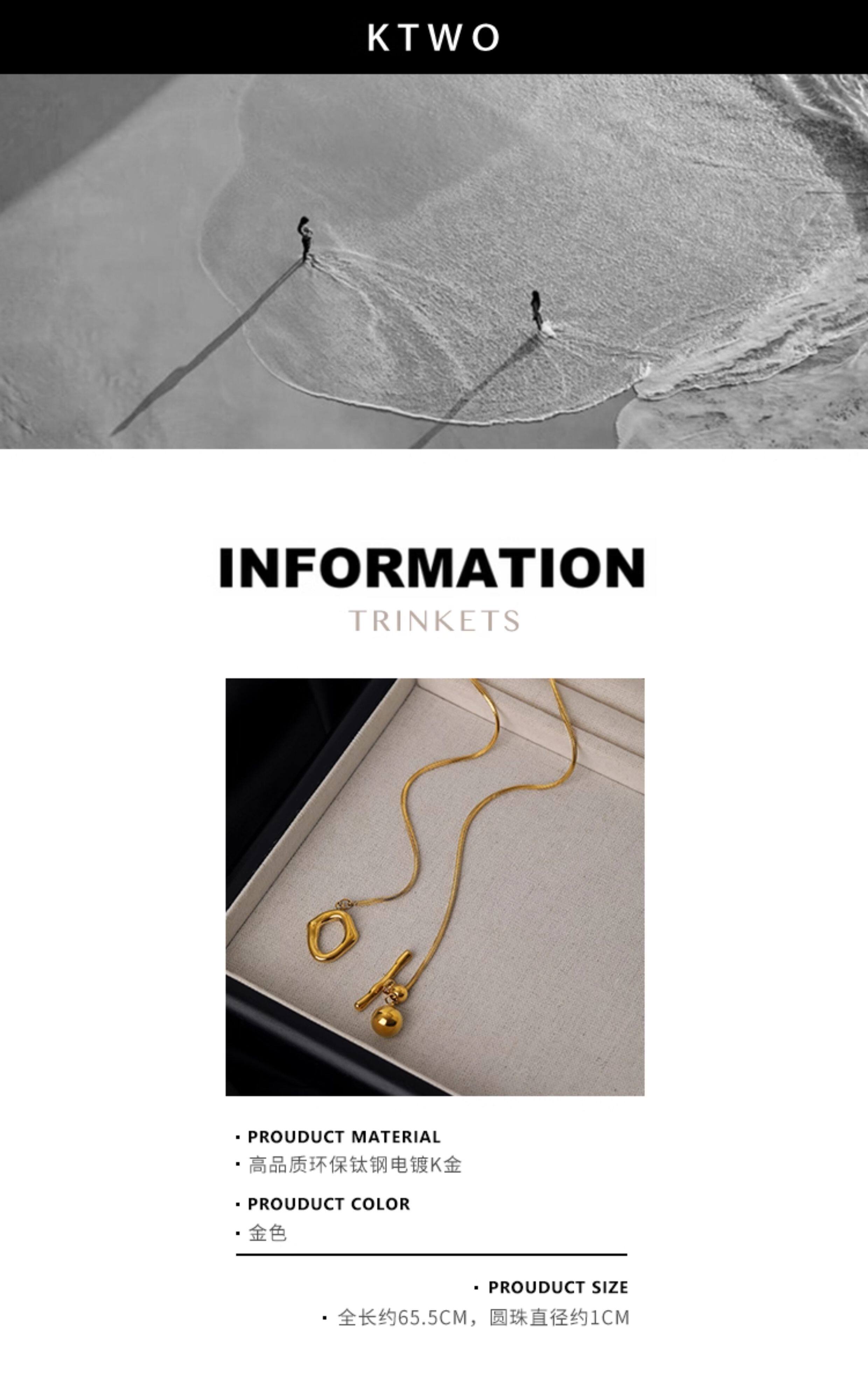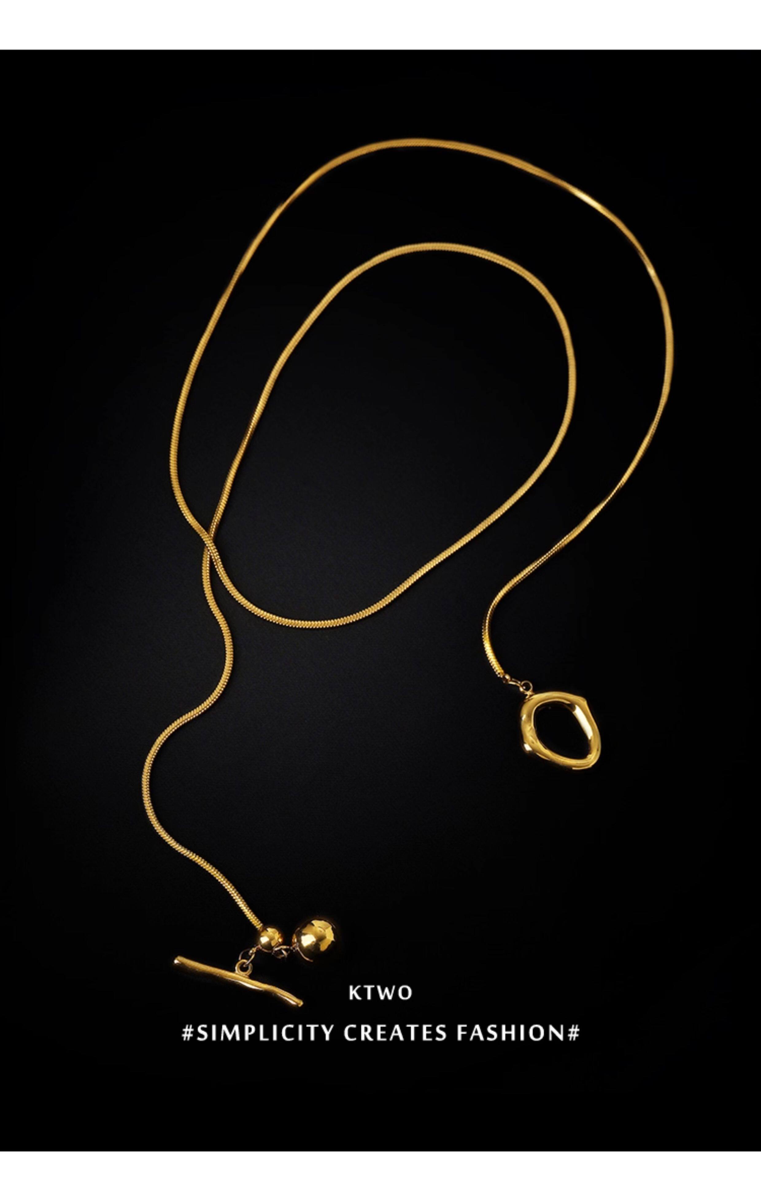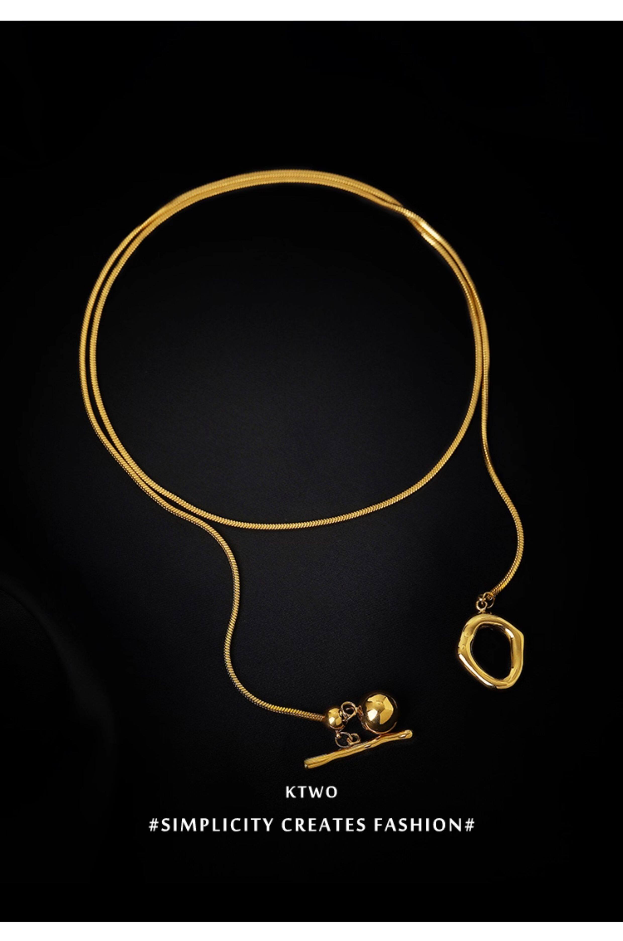 歐式時尚大氣T釦圓珠毛衣鏈女小衆輕奢鍍k金不掉色鈦鋼毛衫長項鍊