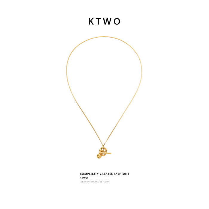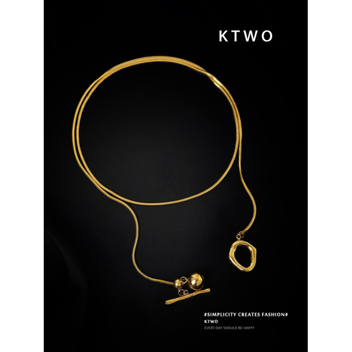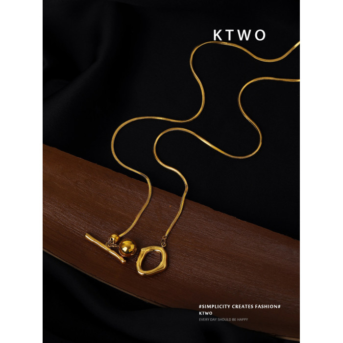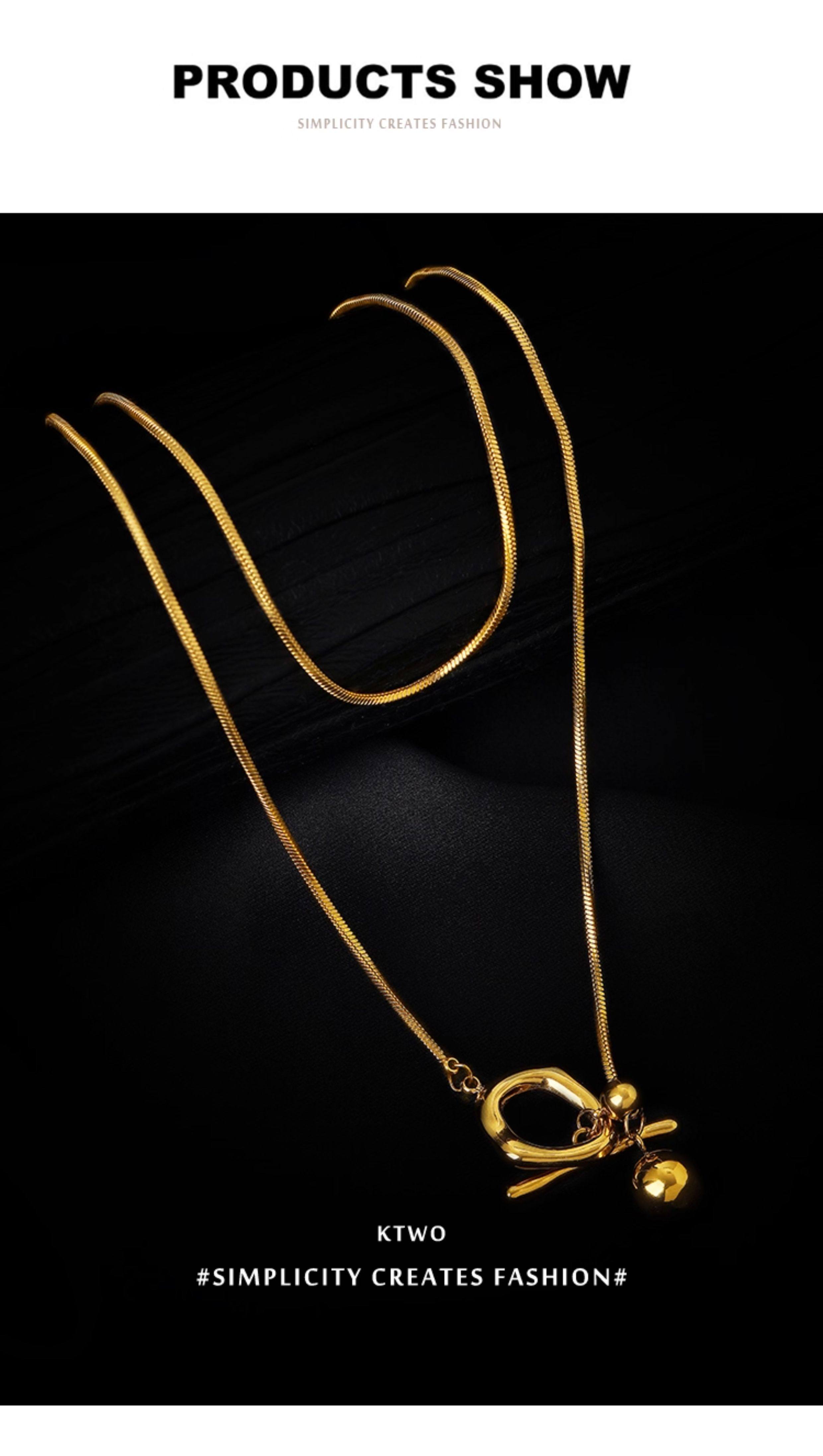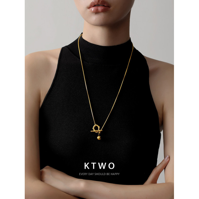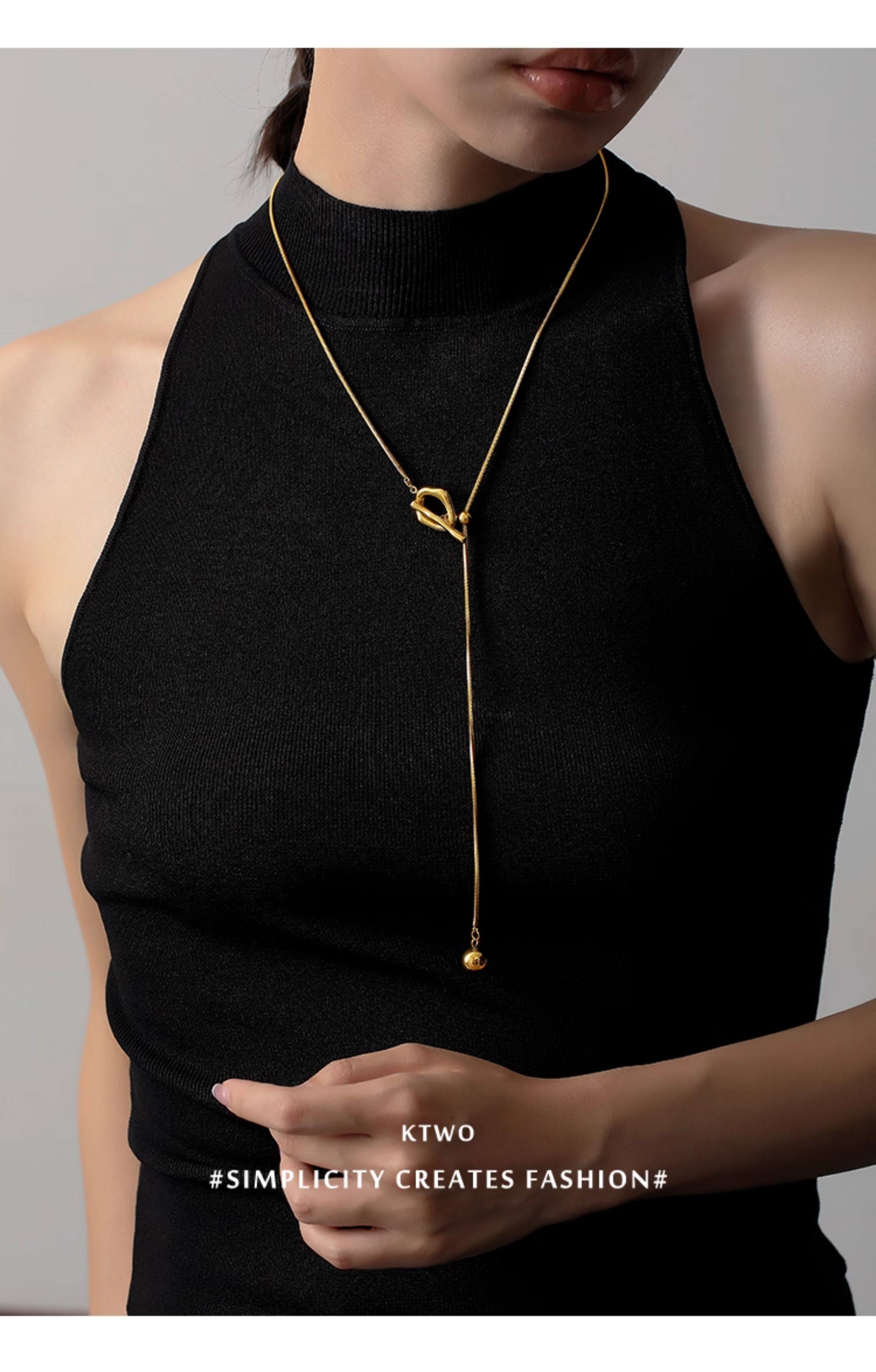 歐式時尚大氣T釦圓珠毛衣鏈女小衆輕奢鍍k金不掉色鈦鋼毛衫長項鍊