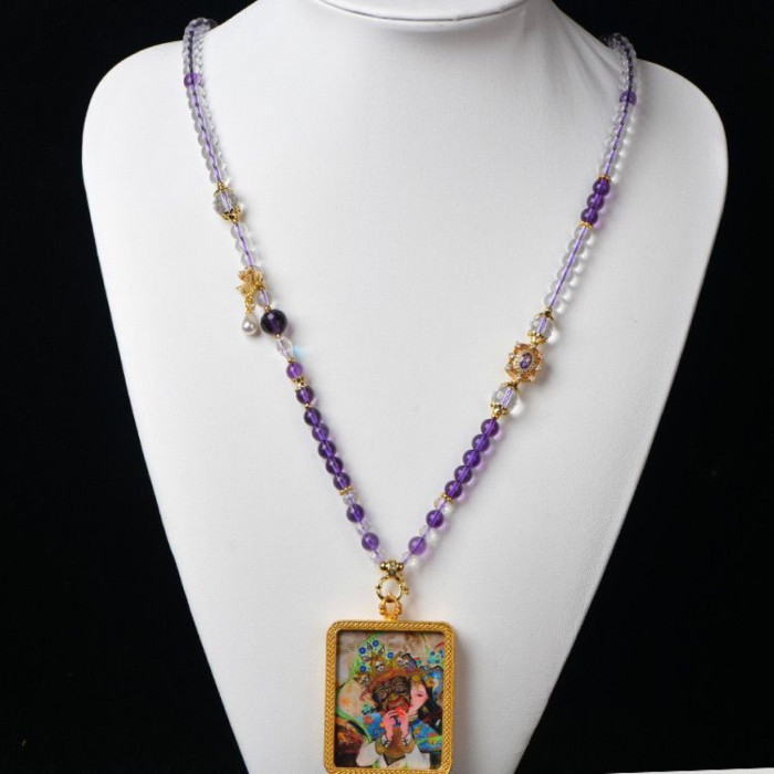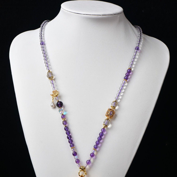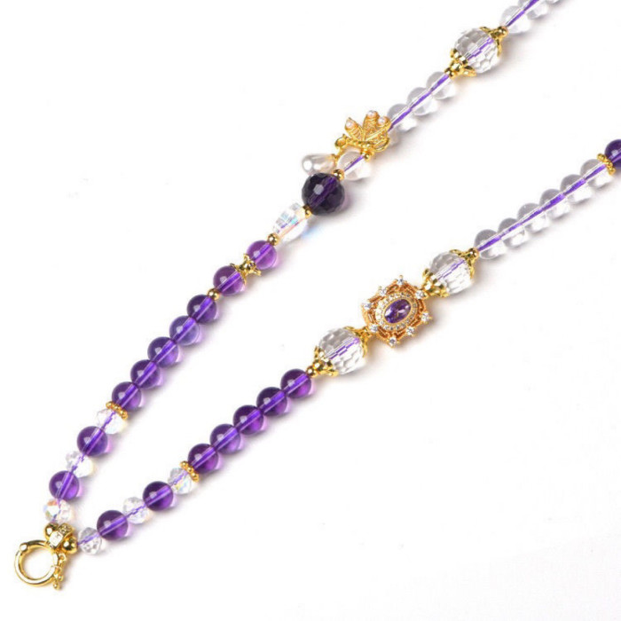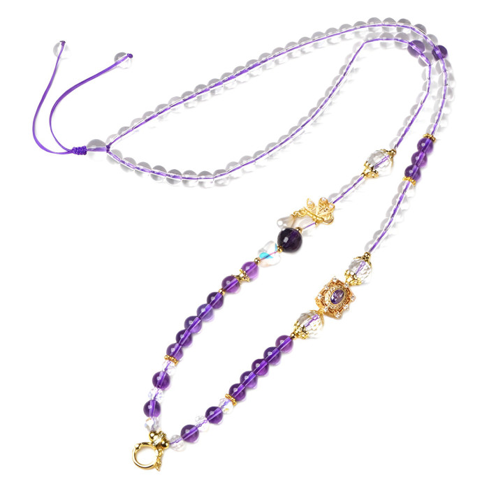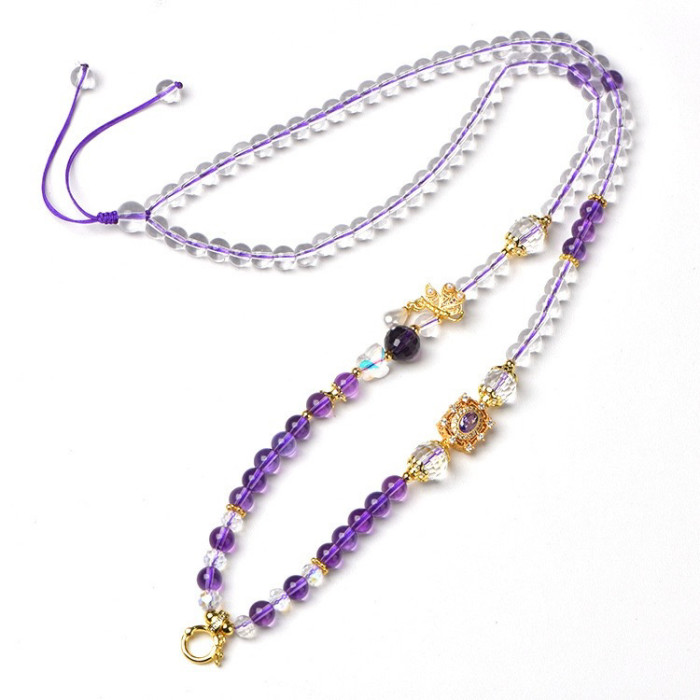 唐卡專用鏈仿白水晶紫水晶珠鍊子繩萬能釦鏈條百搭九尾狐吊墜