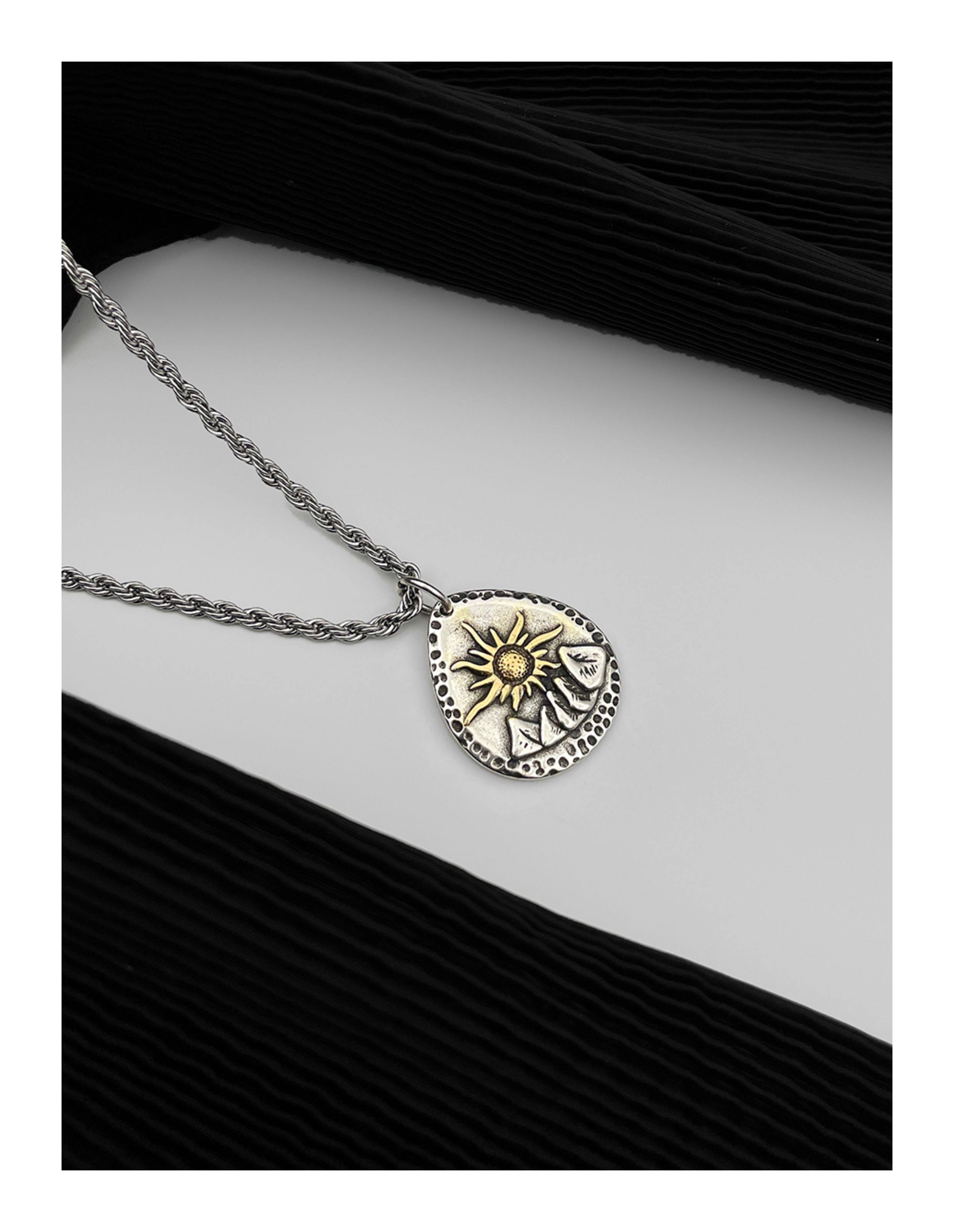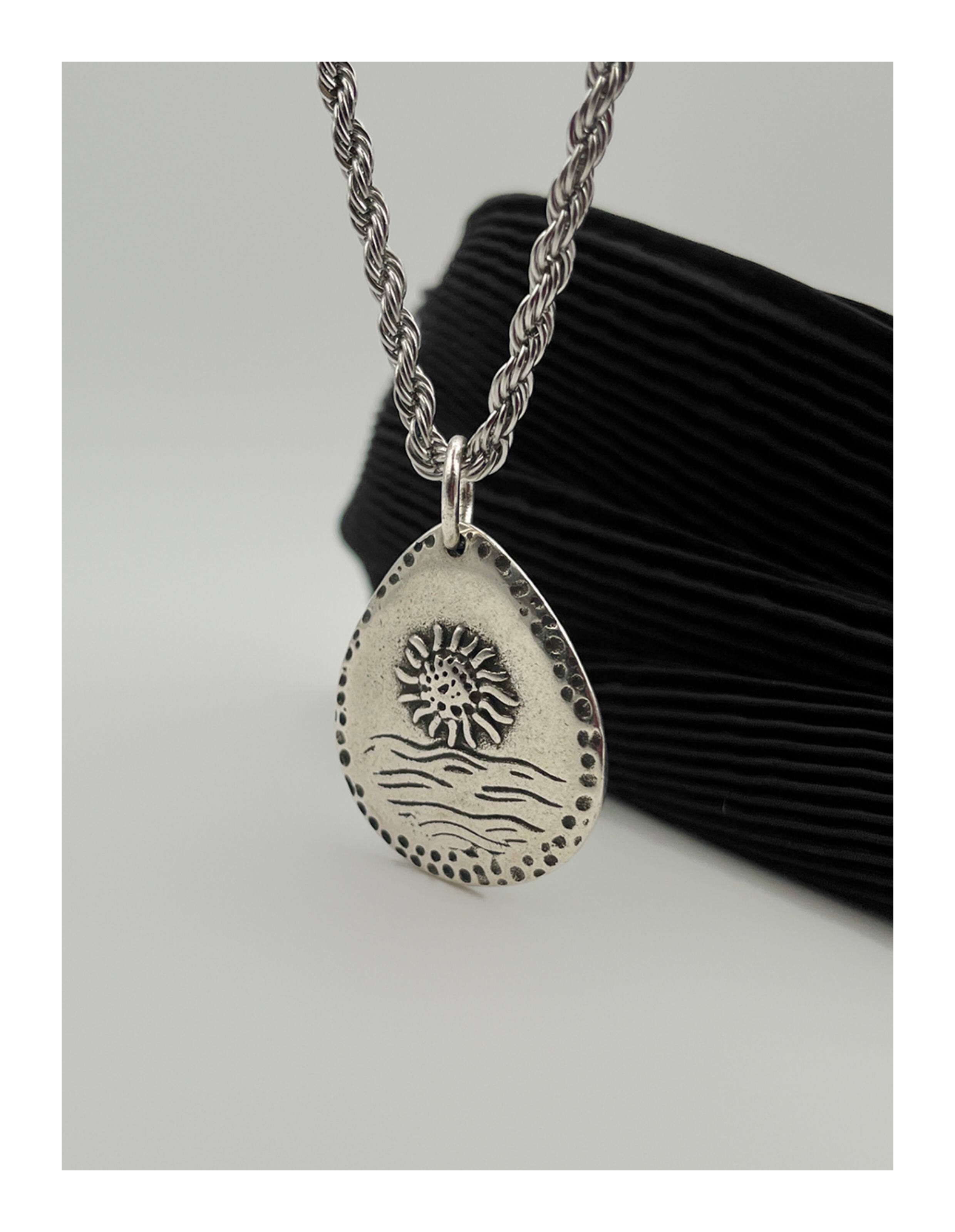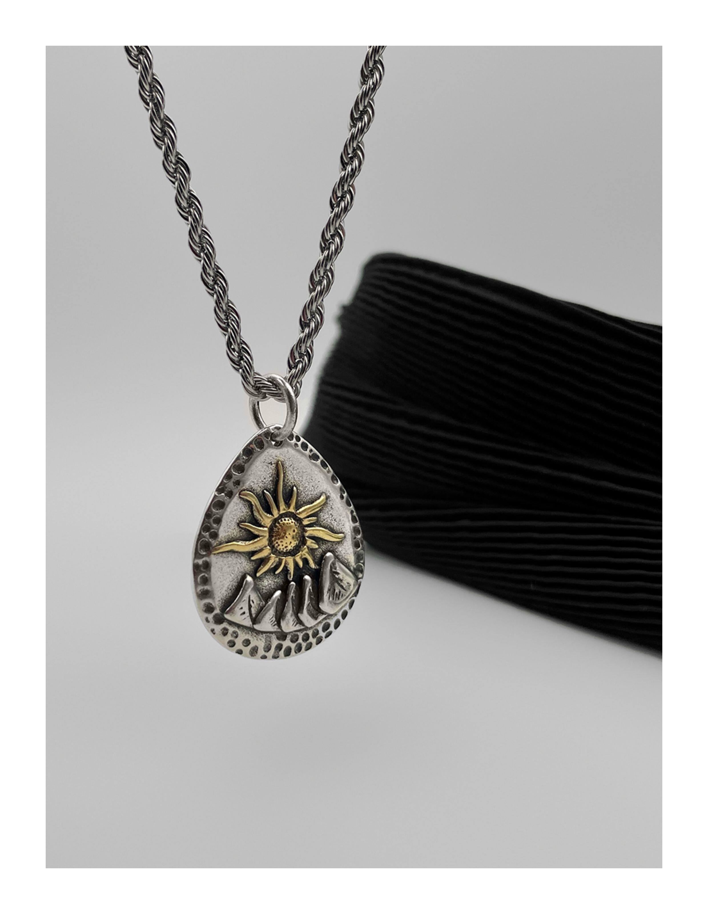 WHYBLUE 復古許願石項鍊男小衆設計手工款吊墜簡約百搭衛衣鏈長款