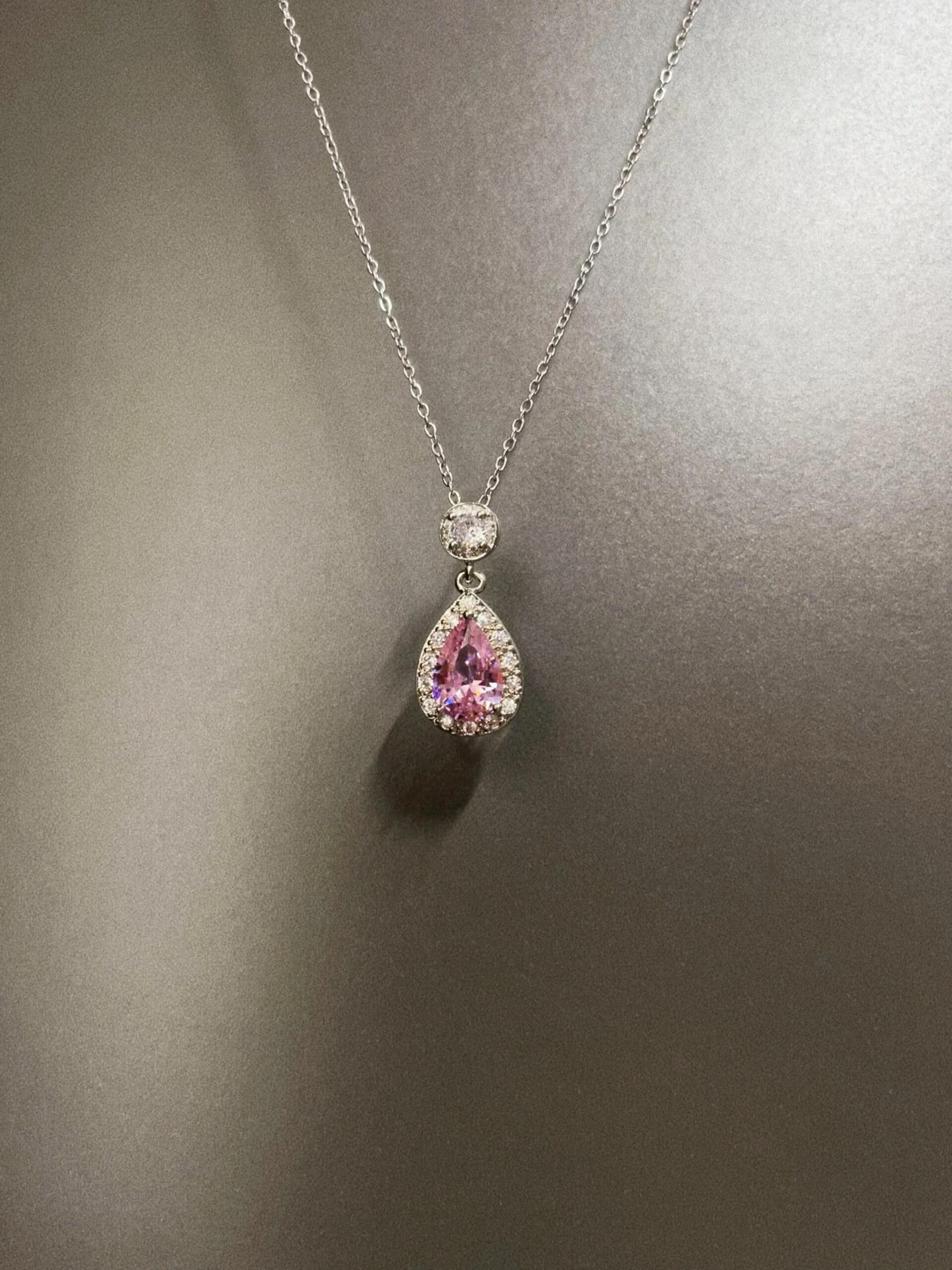 Vintage古著 Pink diamond flowers項鍊