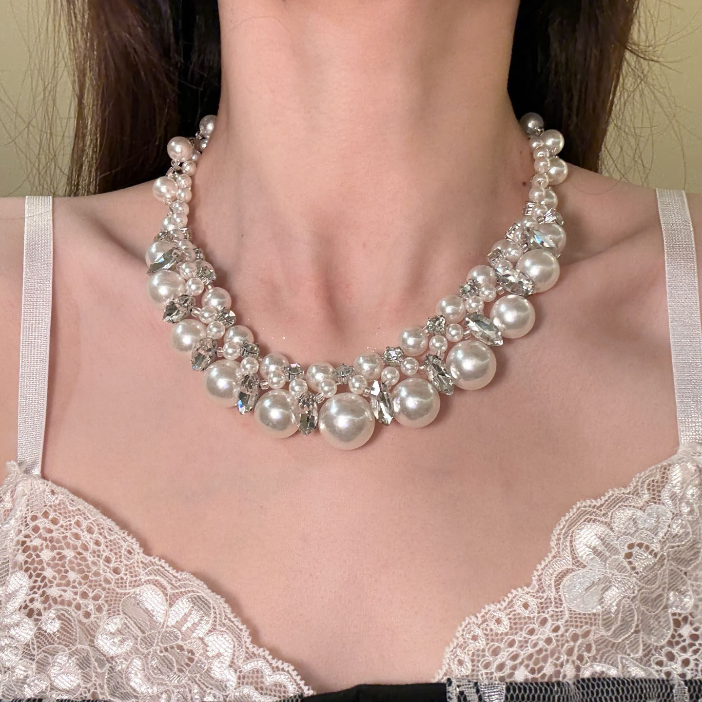 HEY TAO重工復古閃鑽珍珠choker項鍊女鎖骨鍊輕奢高級感氣質頸鏈