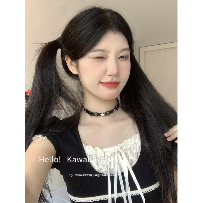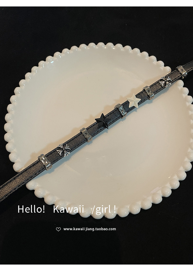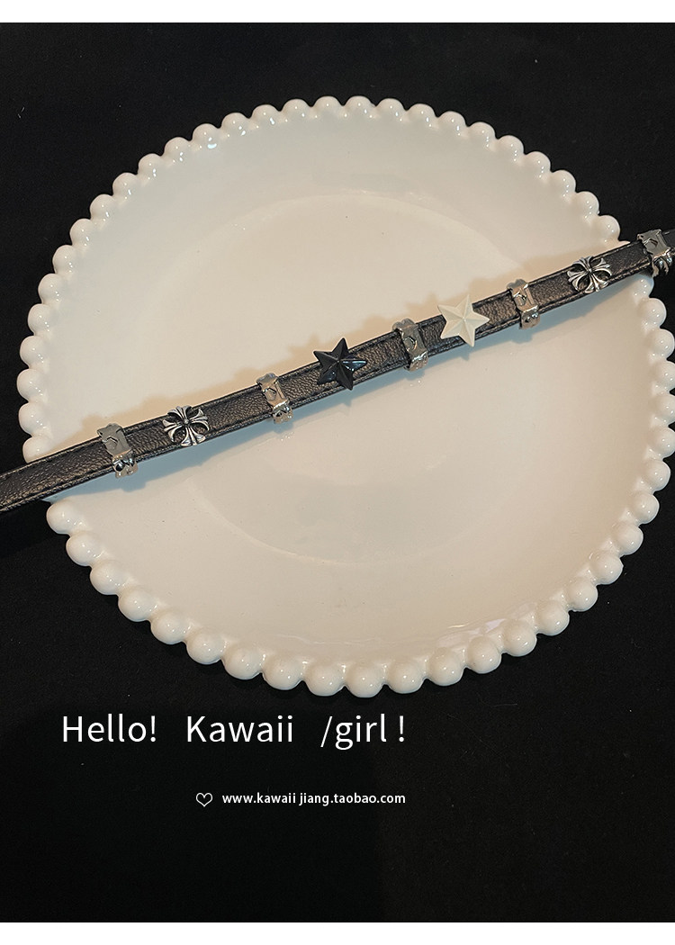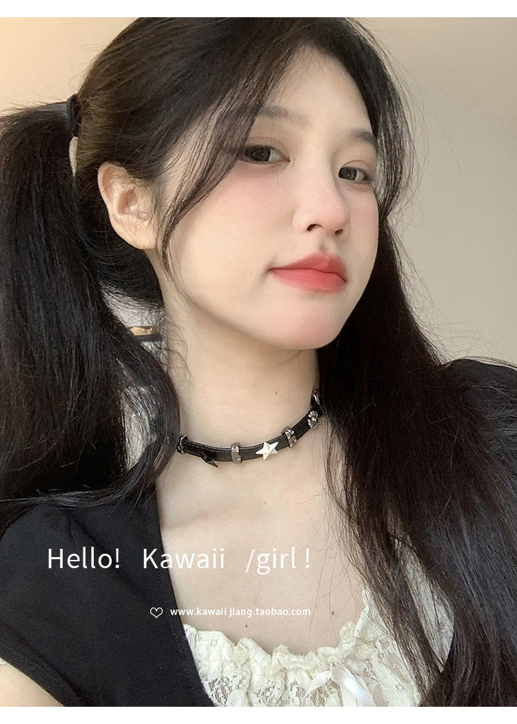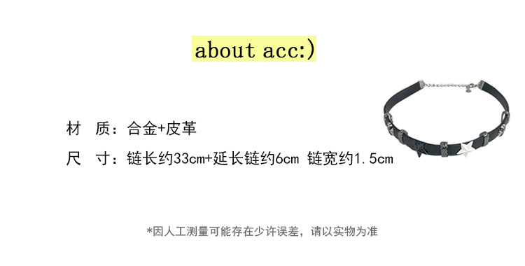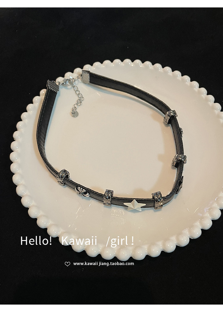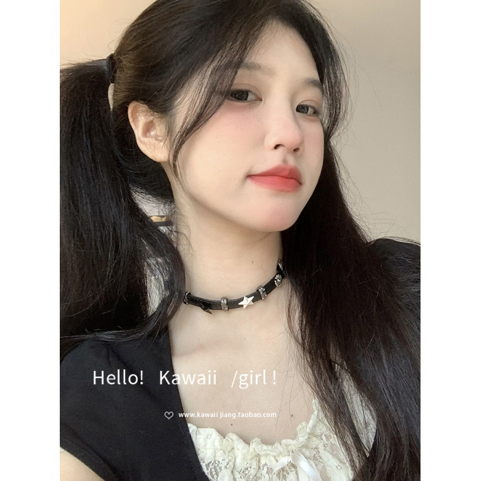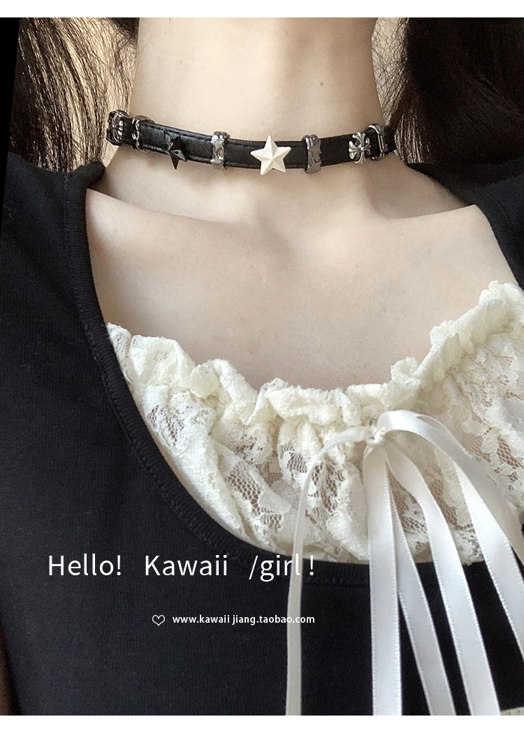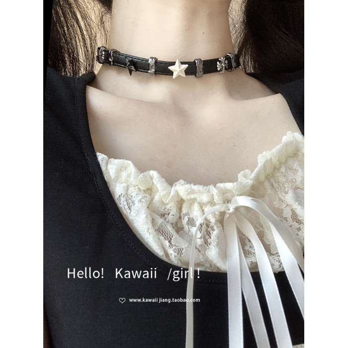 黑白五角星拼接皮革項圈y2k亞文化甜酷辣妹choker高級感頸鏈項鍊