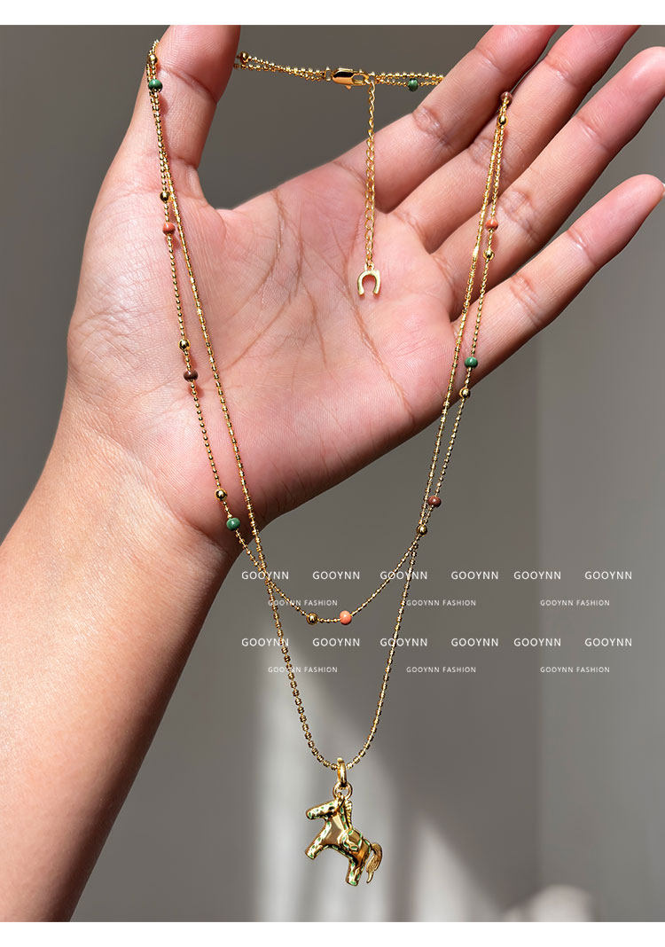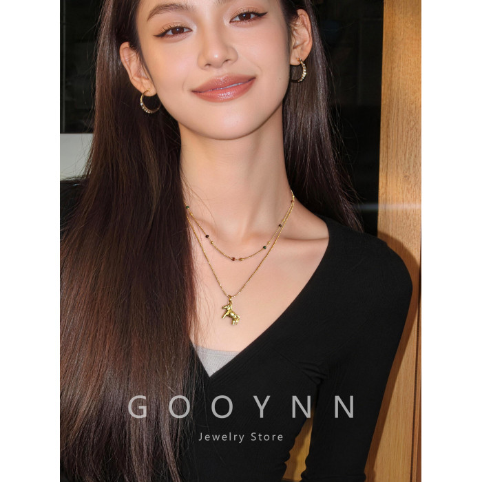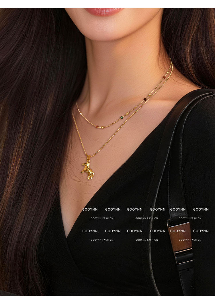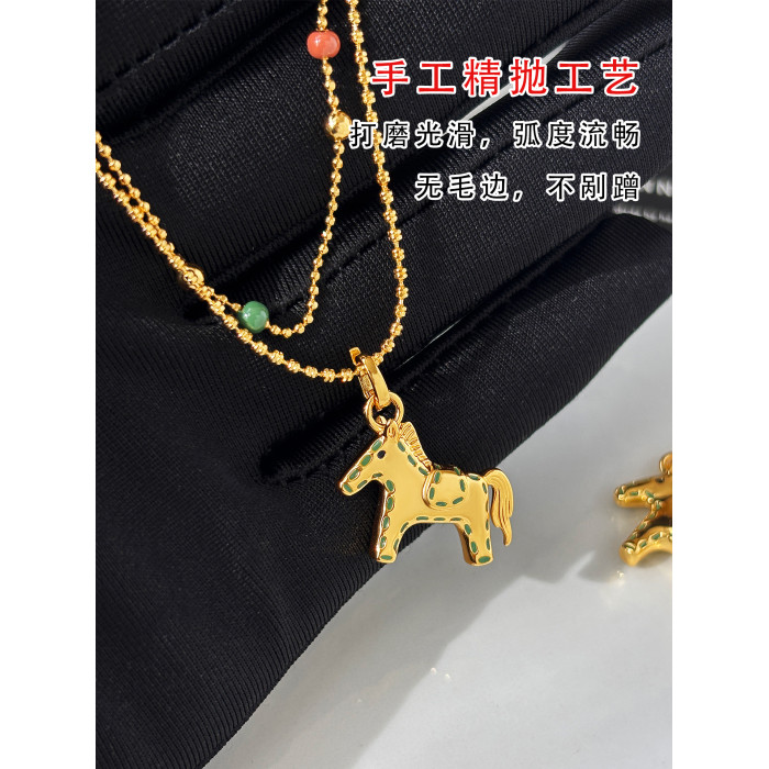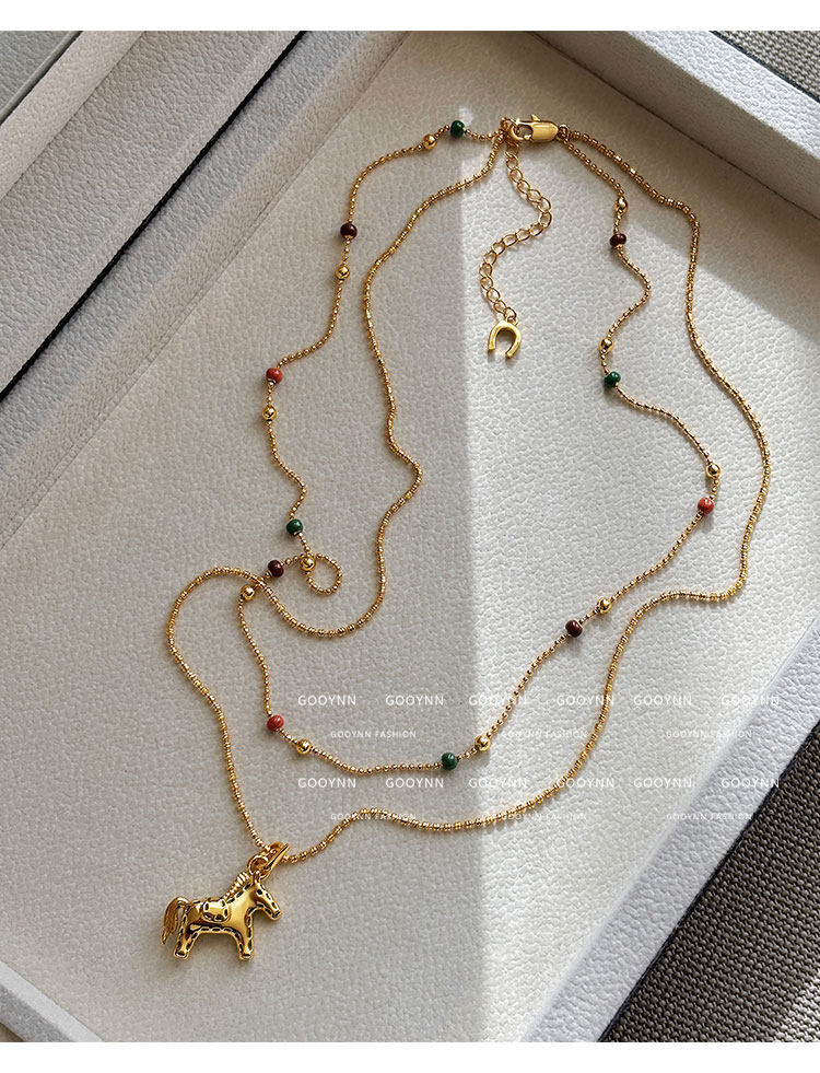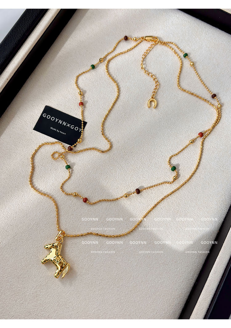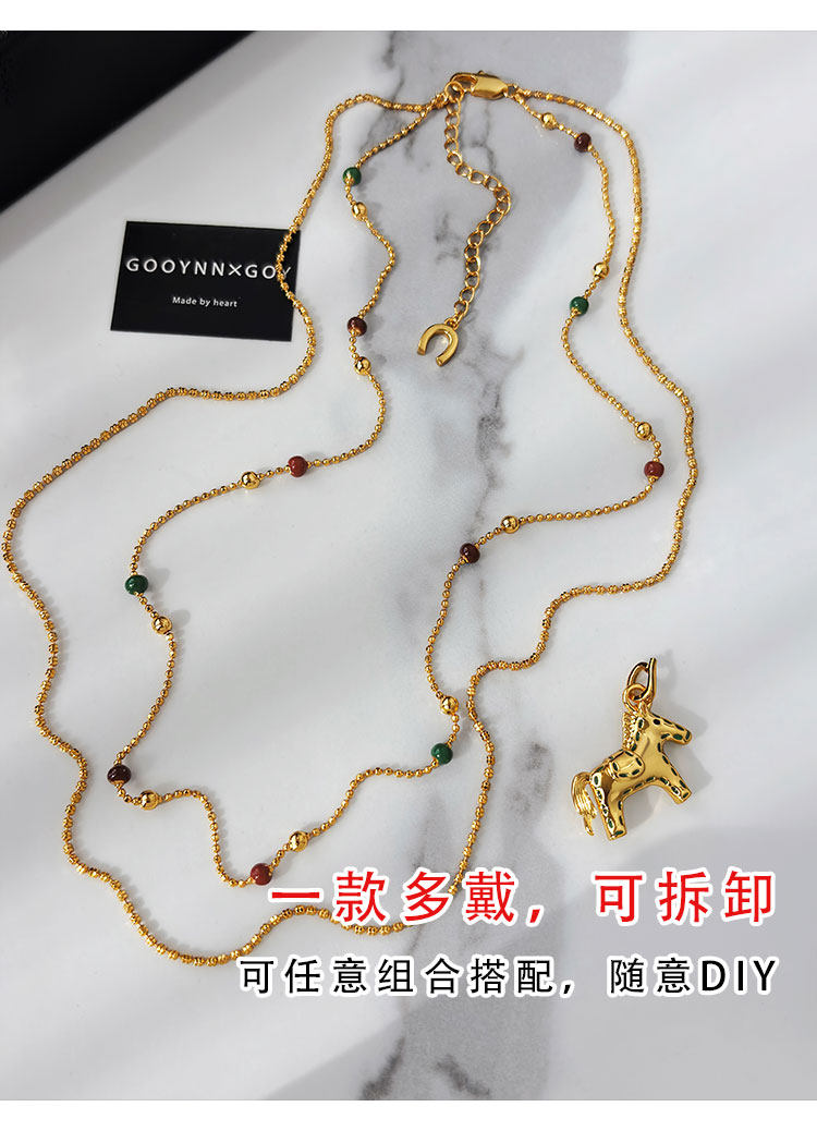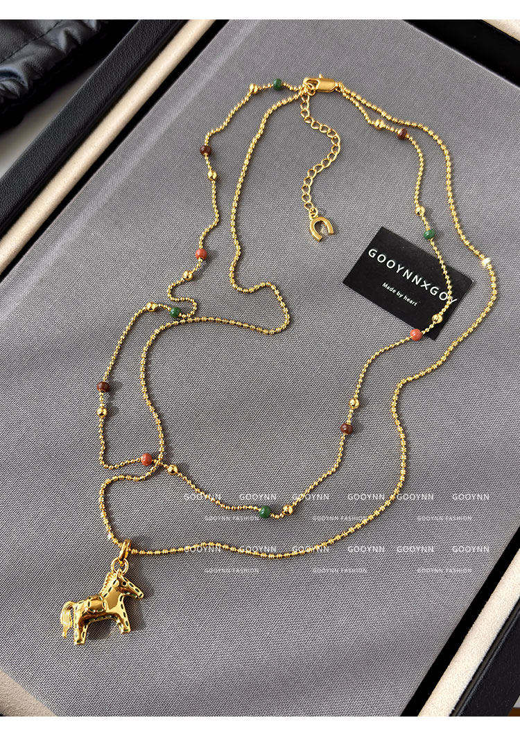 雙層曡戴長款本命年金色小馬項鍊女輕奢高級感鎖骨毛衣鏈吊墜配飾