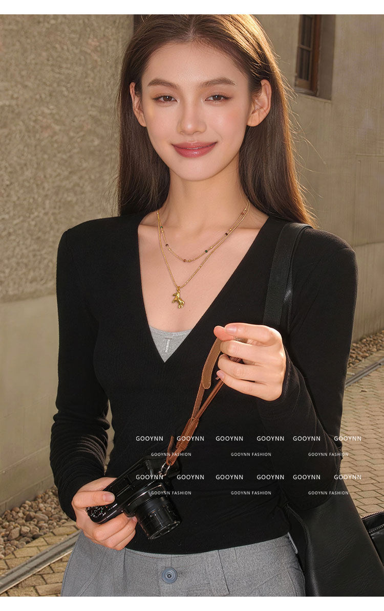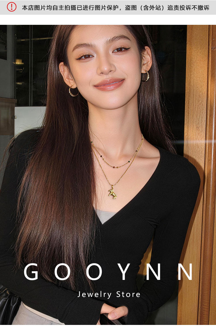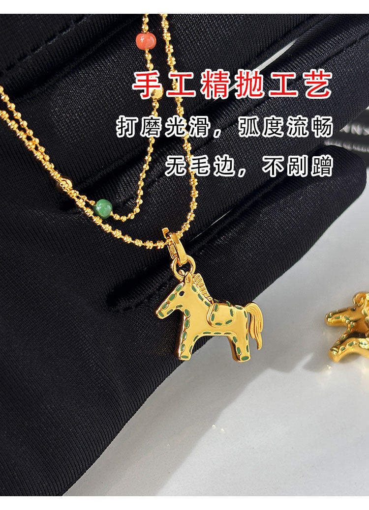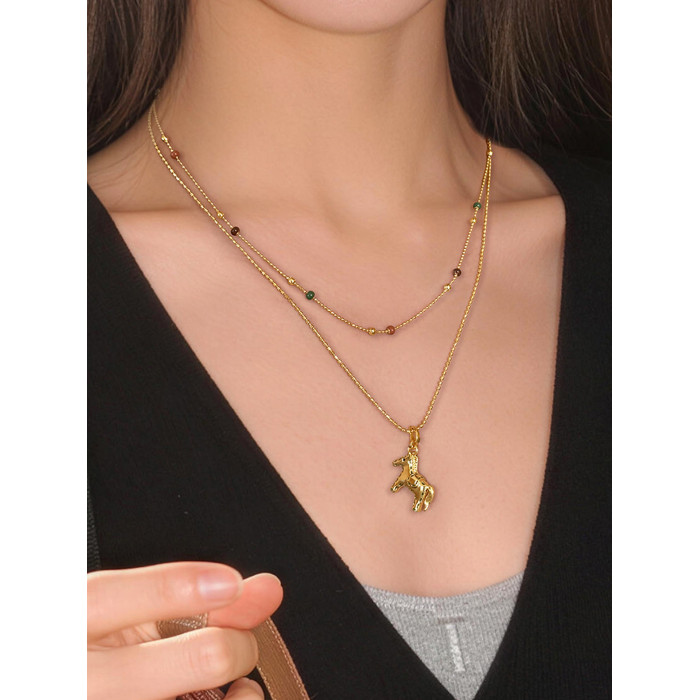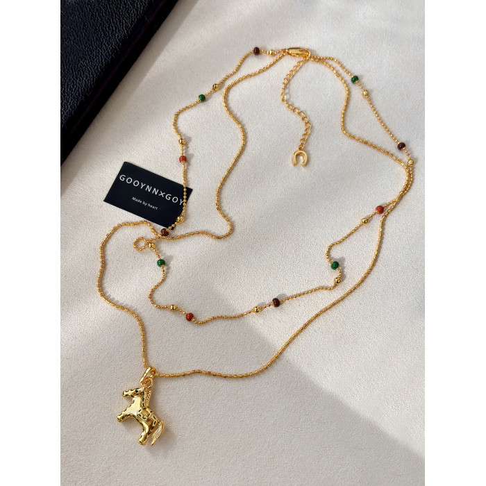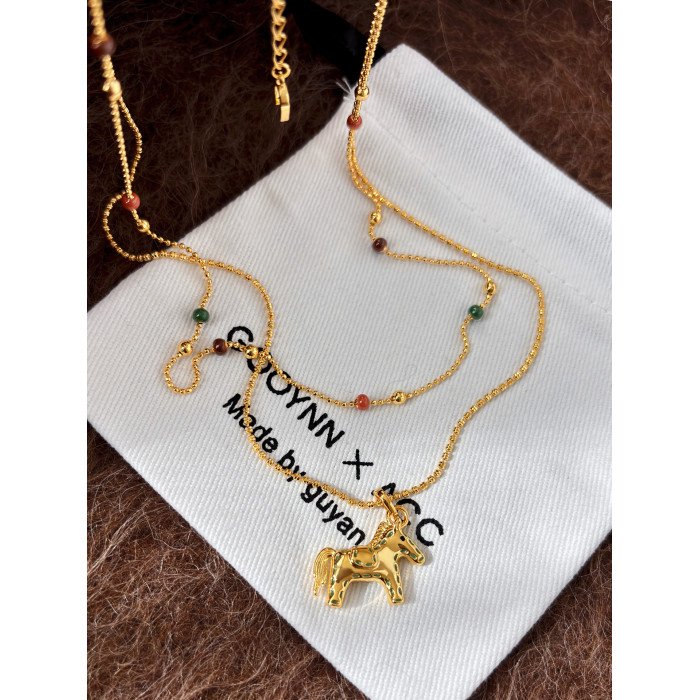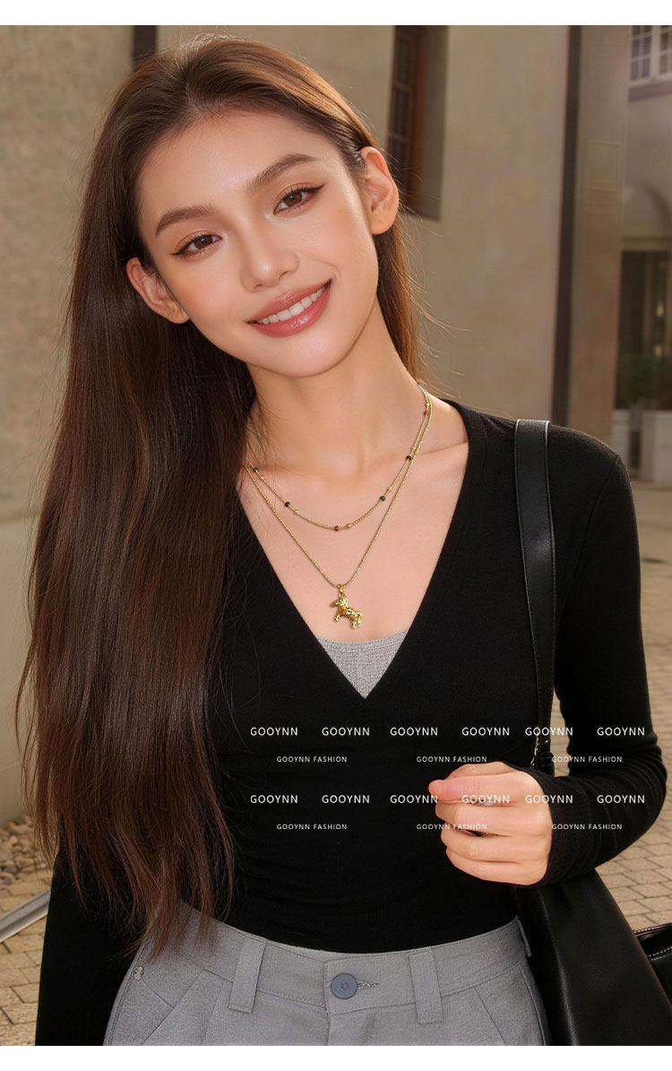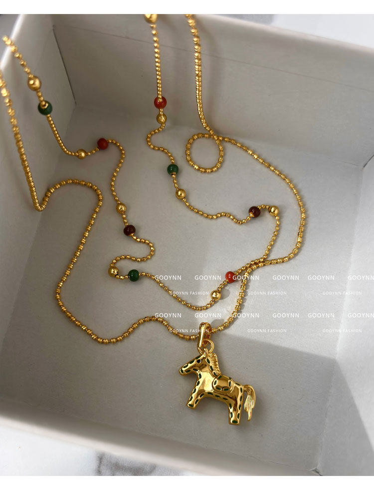 雙層曡戴長款本命年金色小馬項鍊女輕奢高級感鎖骨毛衣鏈吊墜配飾