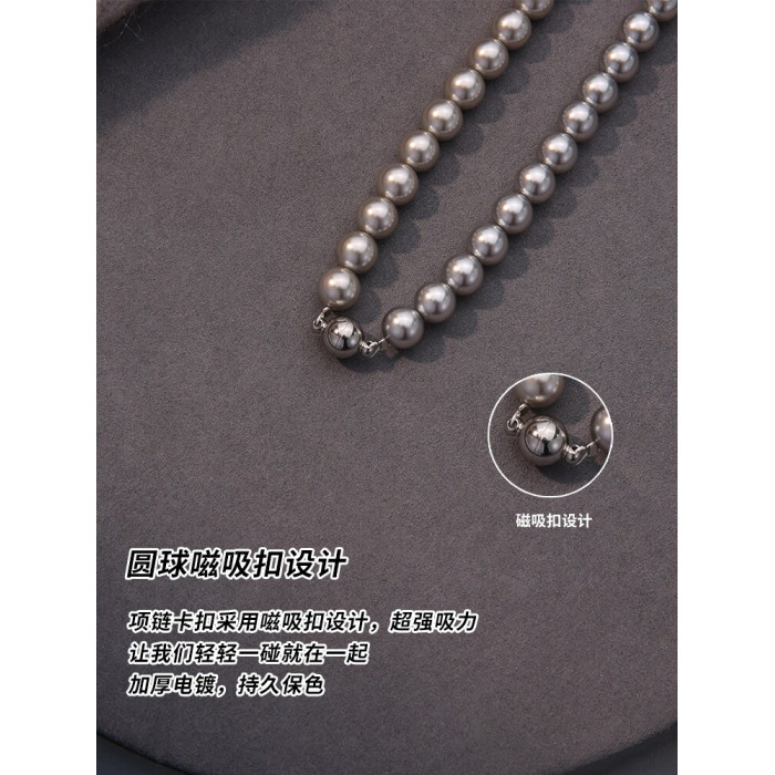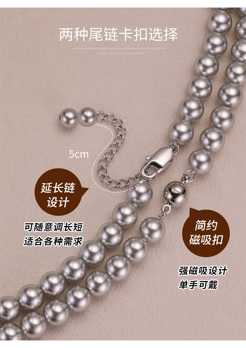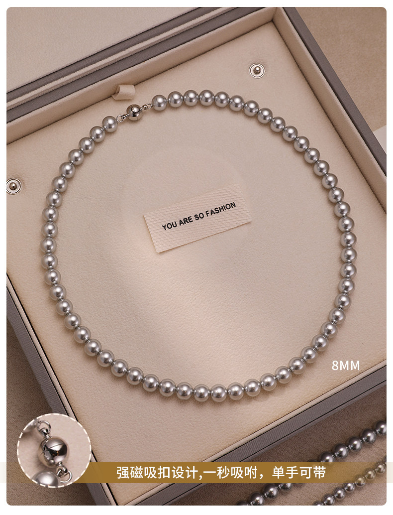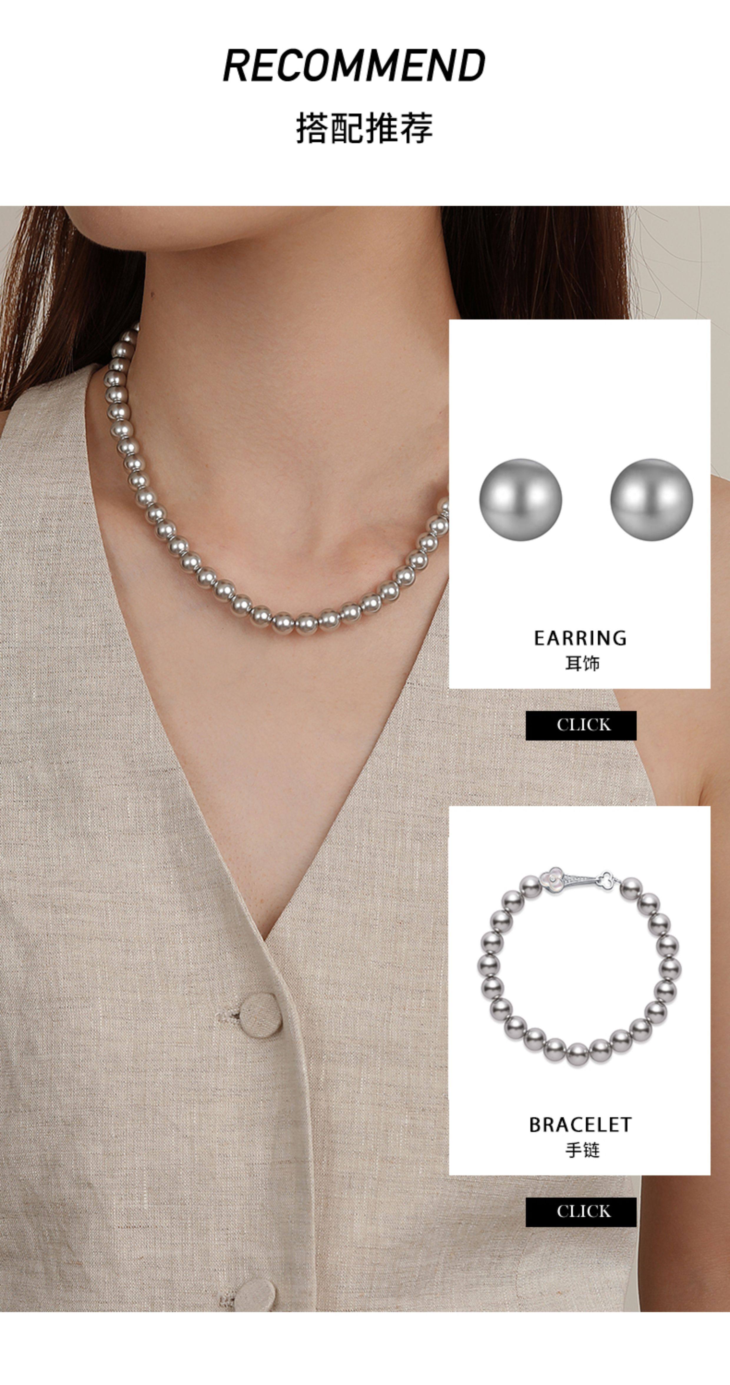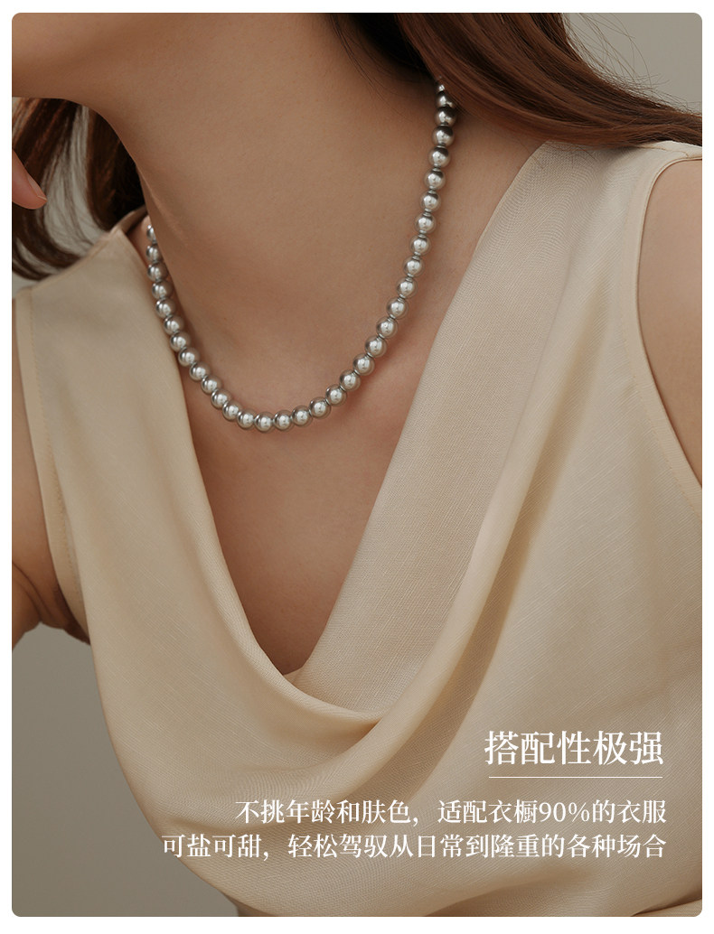 施家真多麻灰色珍珠項鍊頸鏈輕奢小衆毛衣鏈配飾女款2026新款爆款