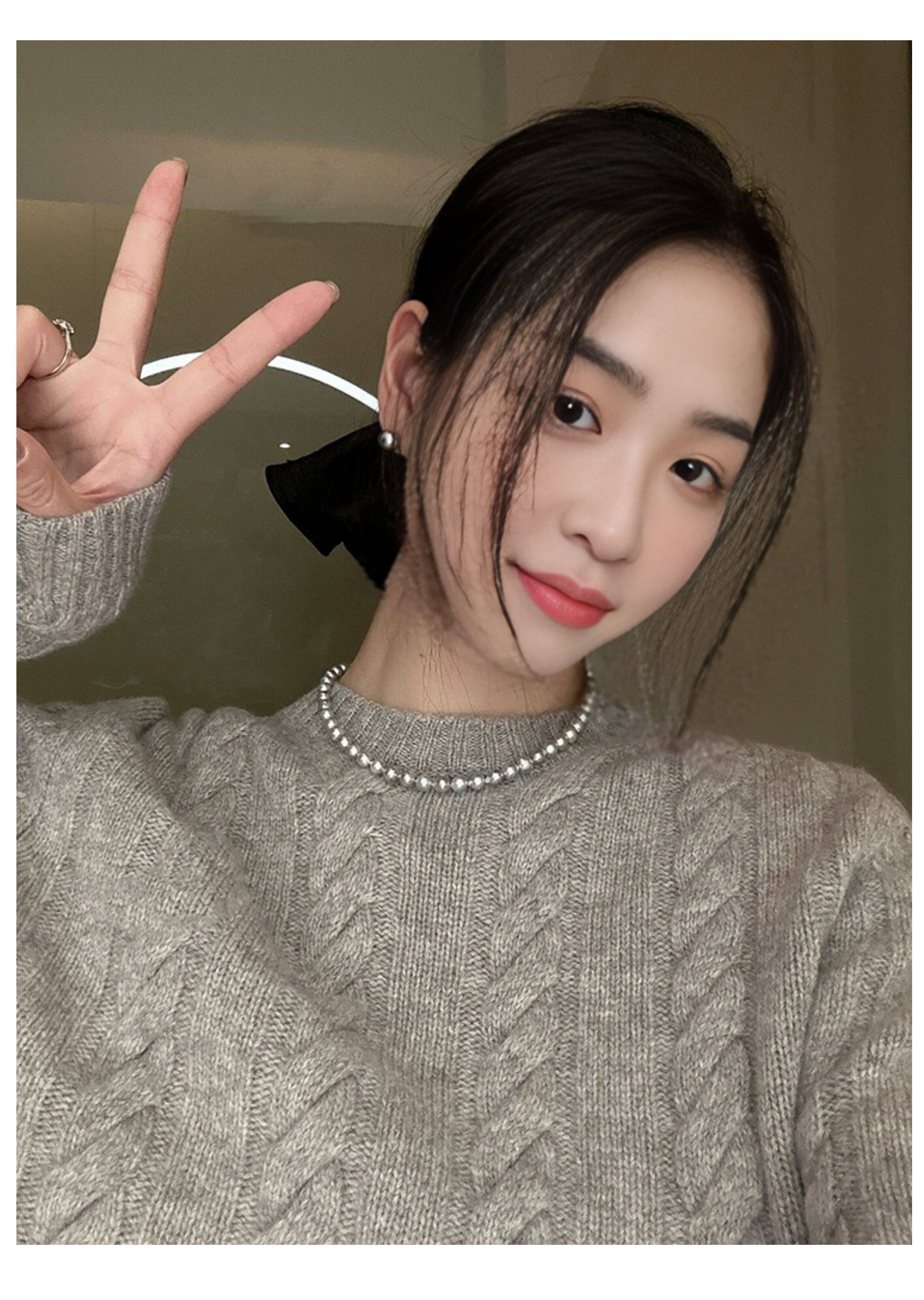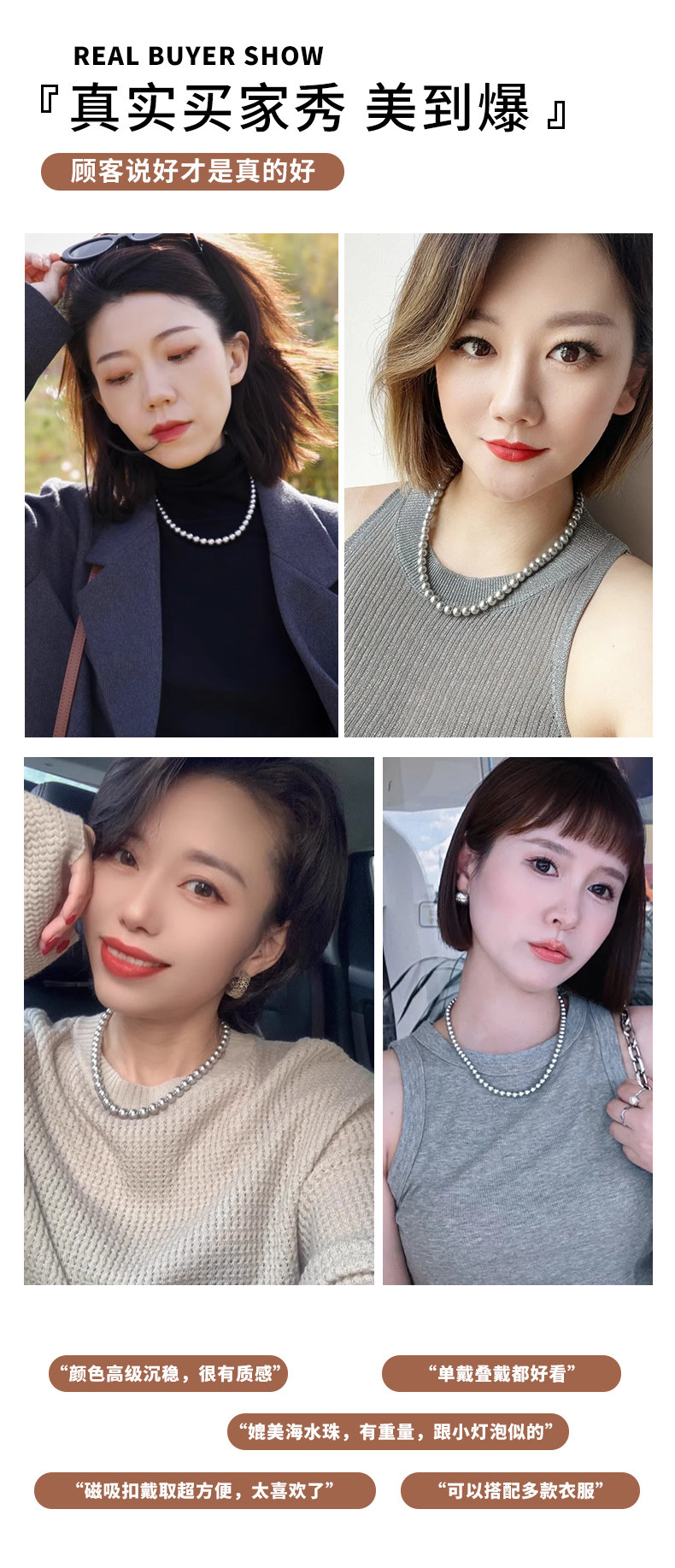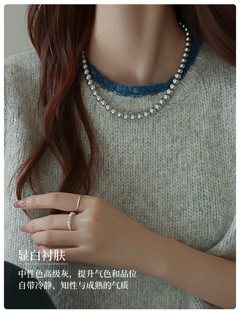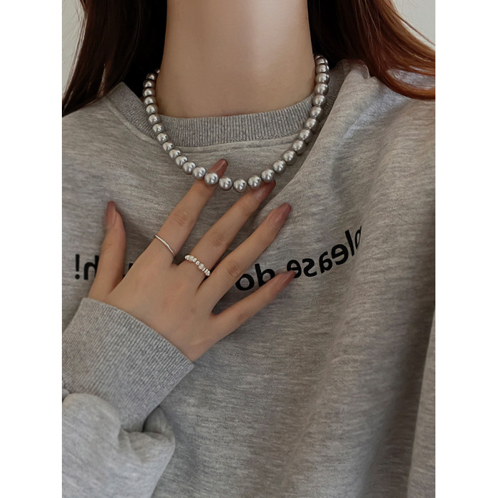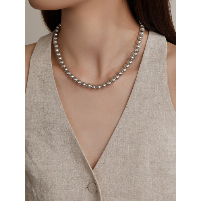 施家真多麻灰色珍珠項鍊頸鏈輕奢小衆毛衣鏈配飾女款2026新款爆款