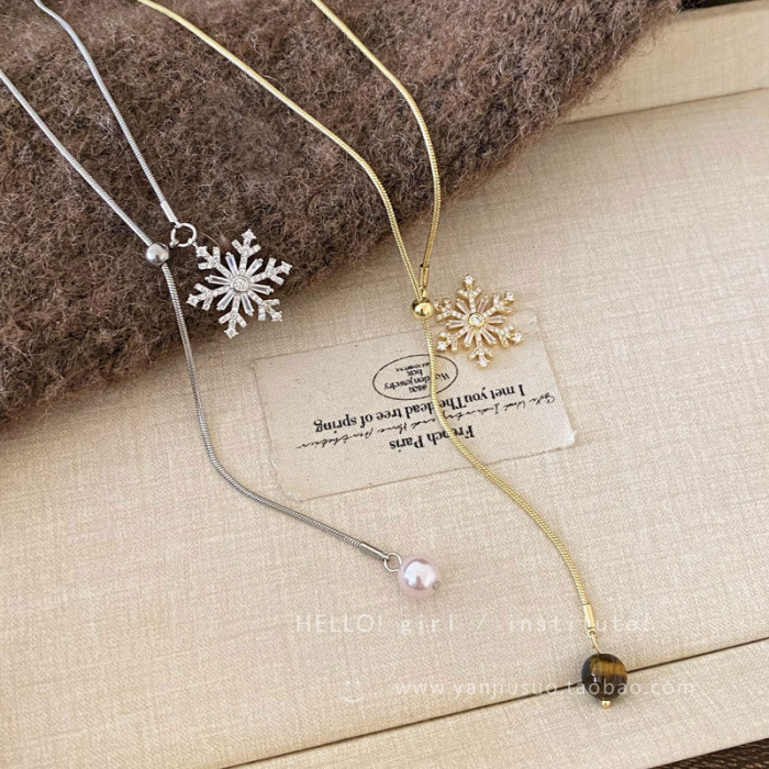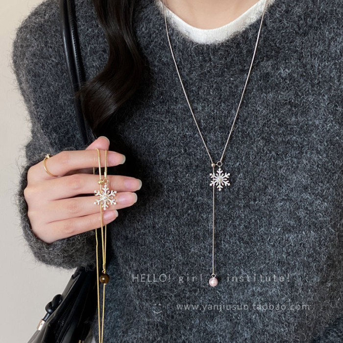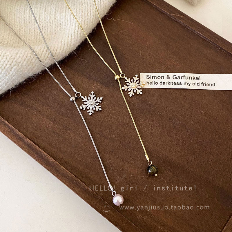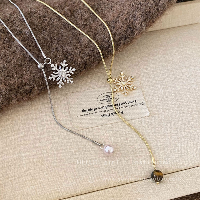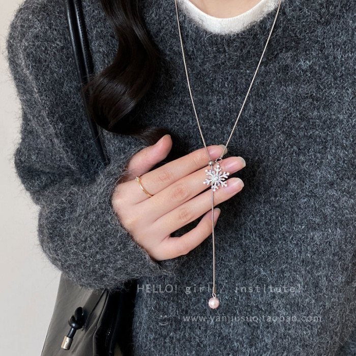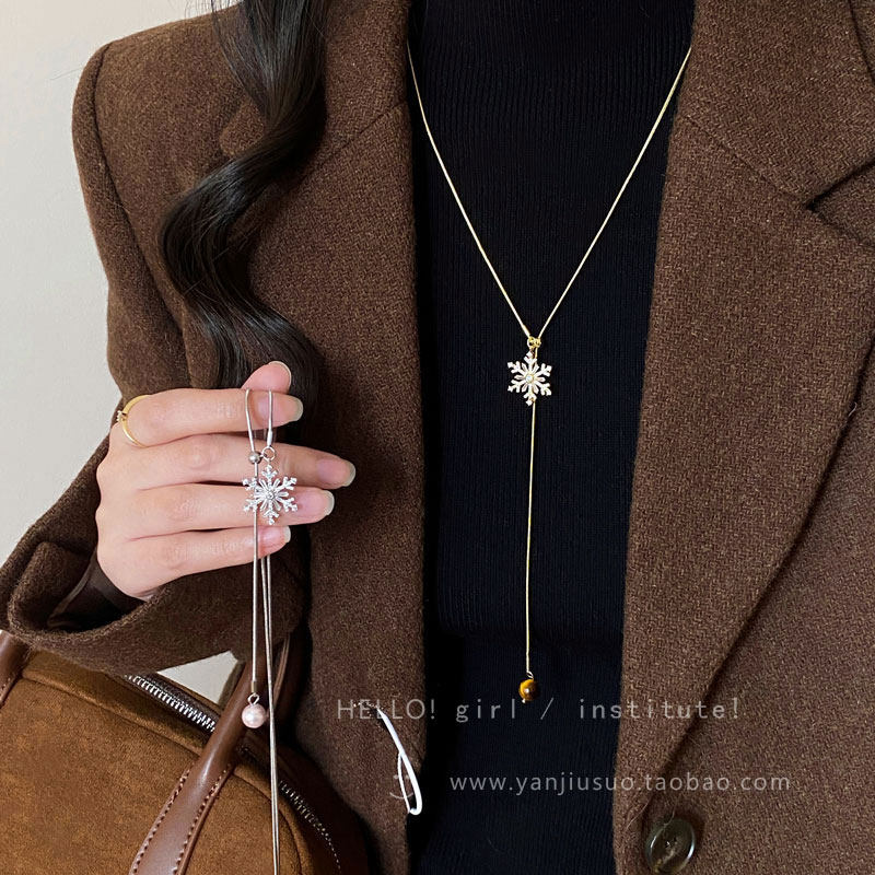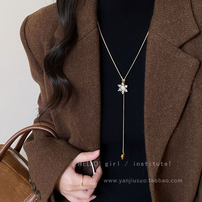 2026年新款雪花虎眼石流蘇項鍊女款輕奢高級感長款秋冬毛衣鏈配飾