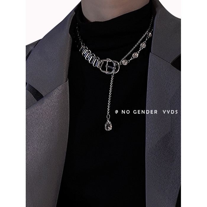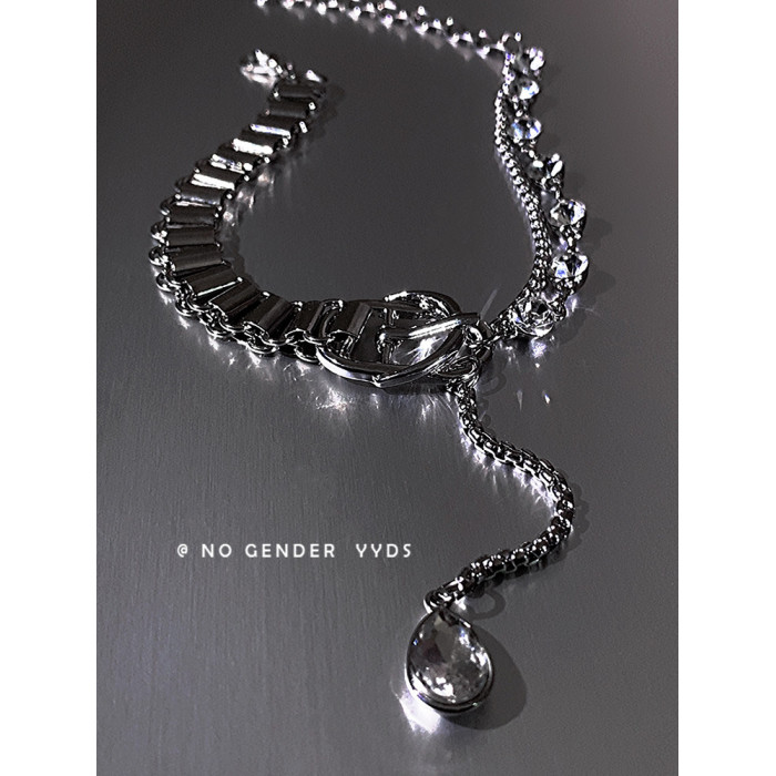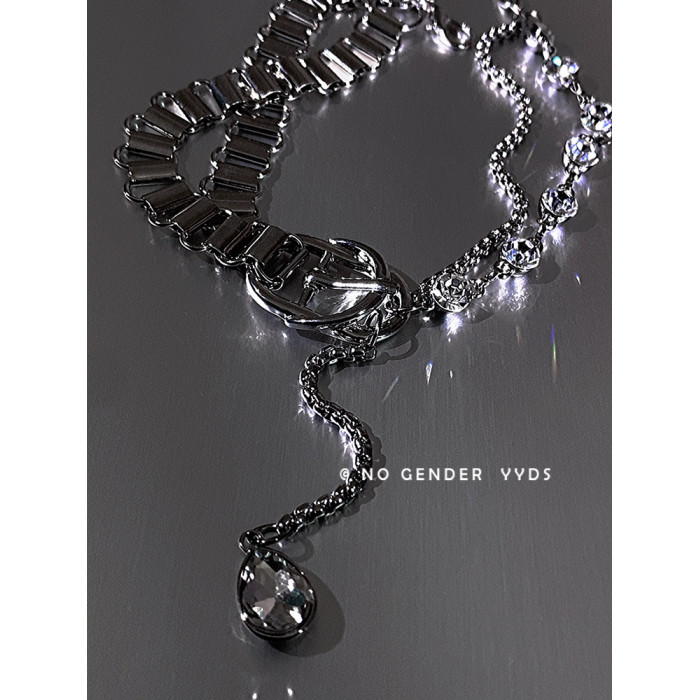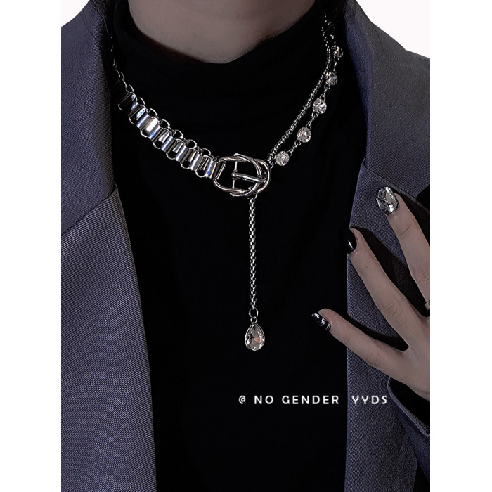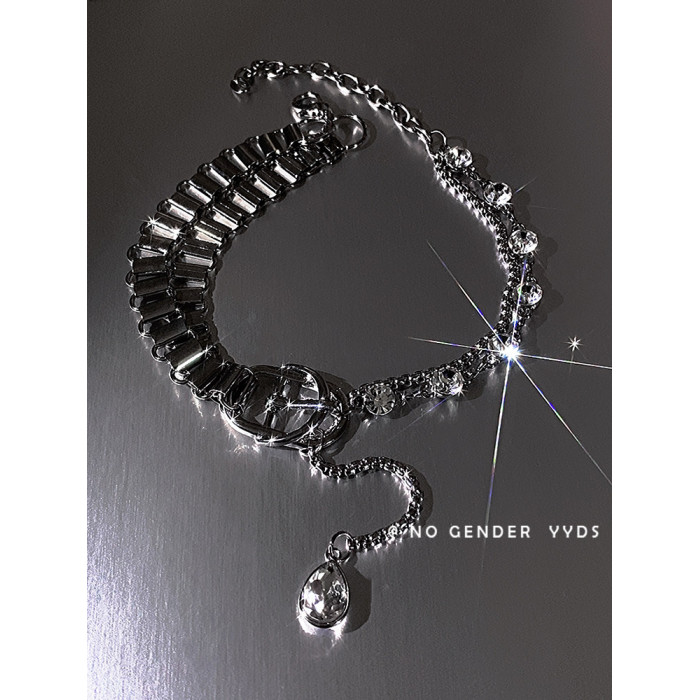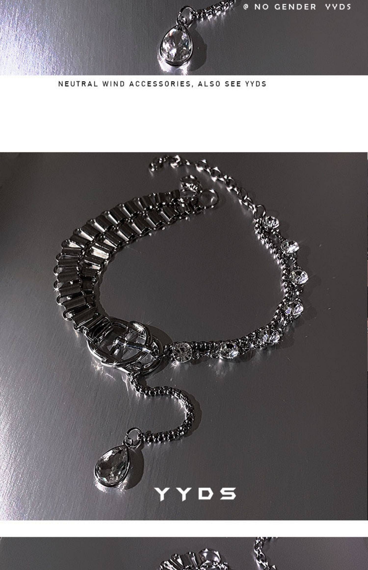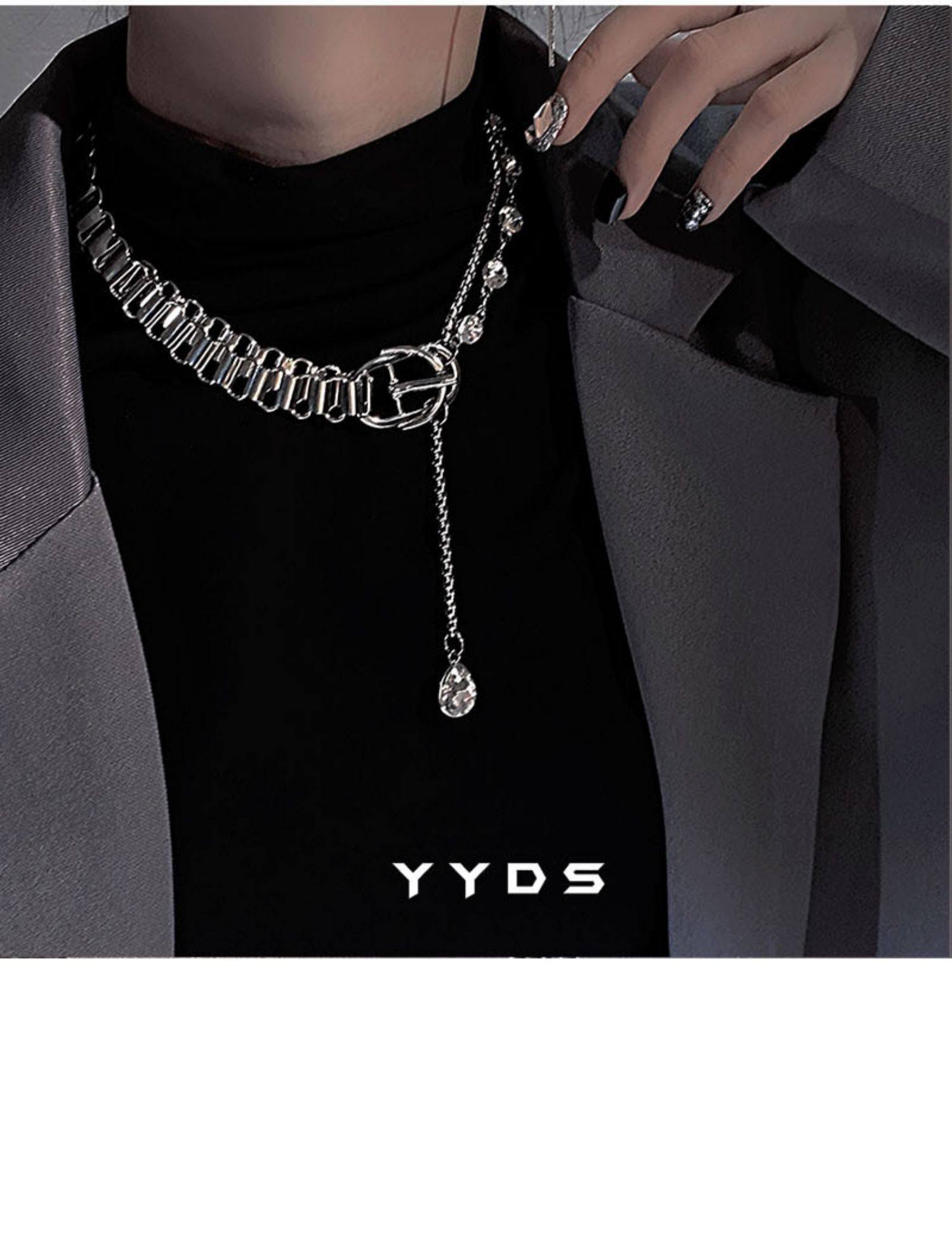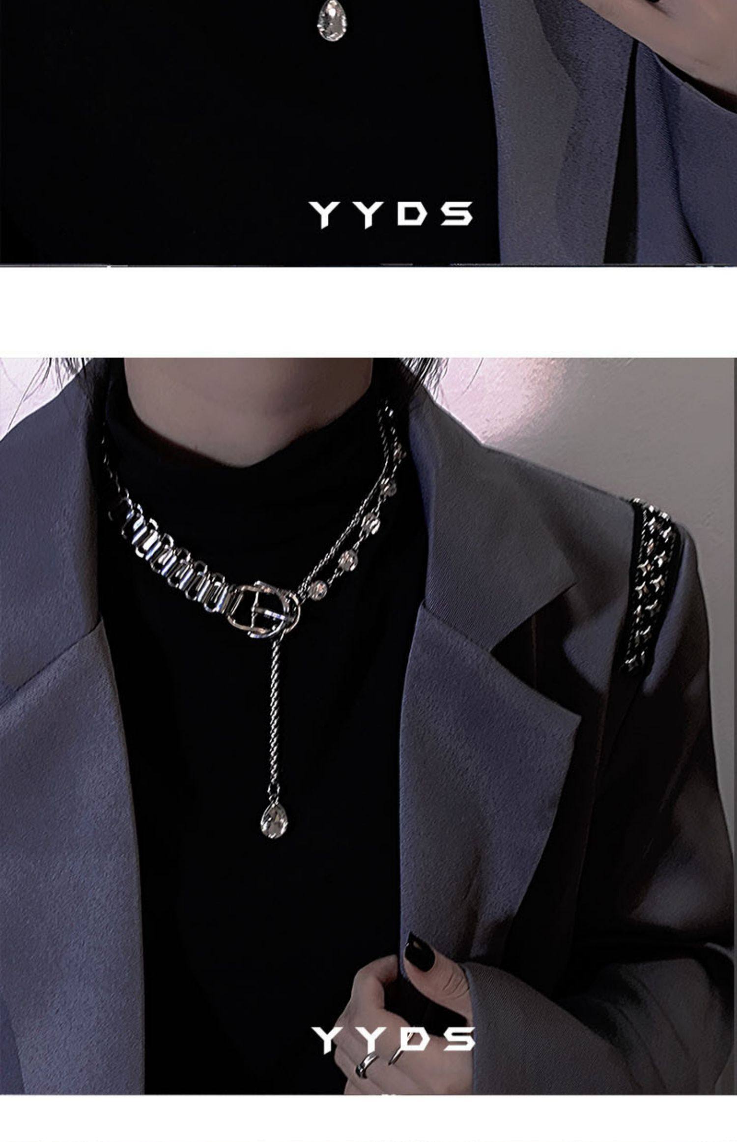 yyds酷系女孩閃鑽項鍊女毛衣鏈choker拼接鏈條龐克風設計感潮