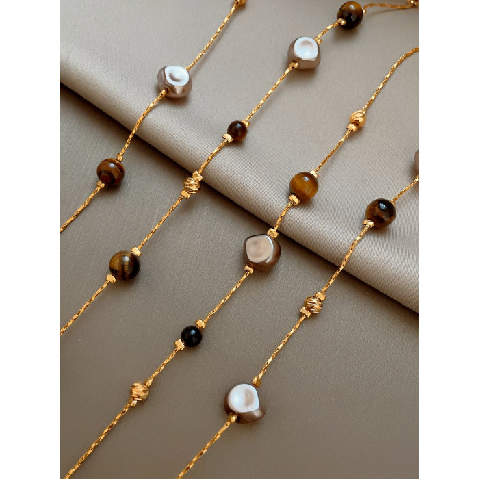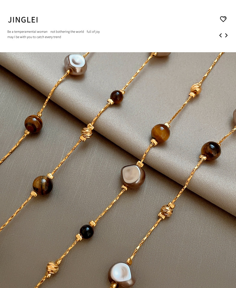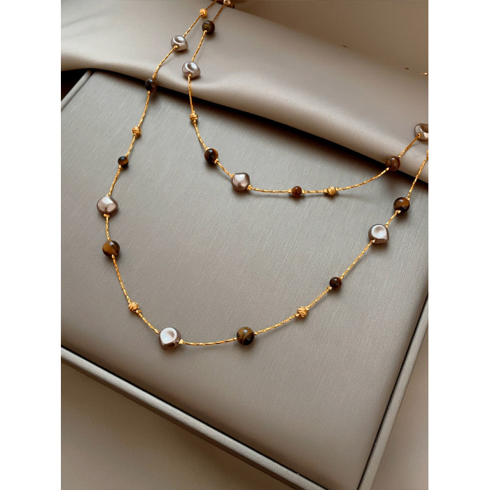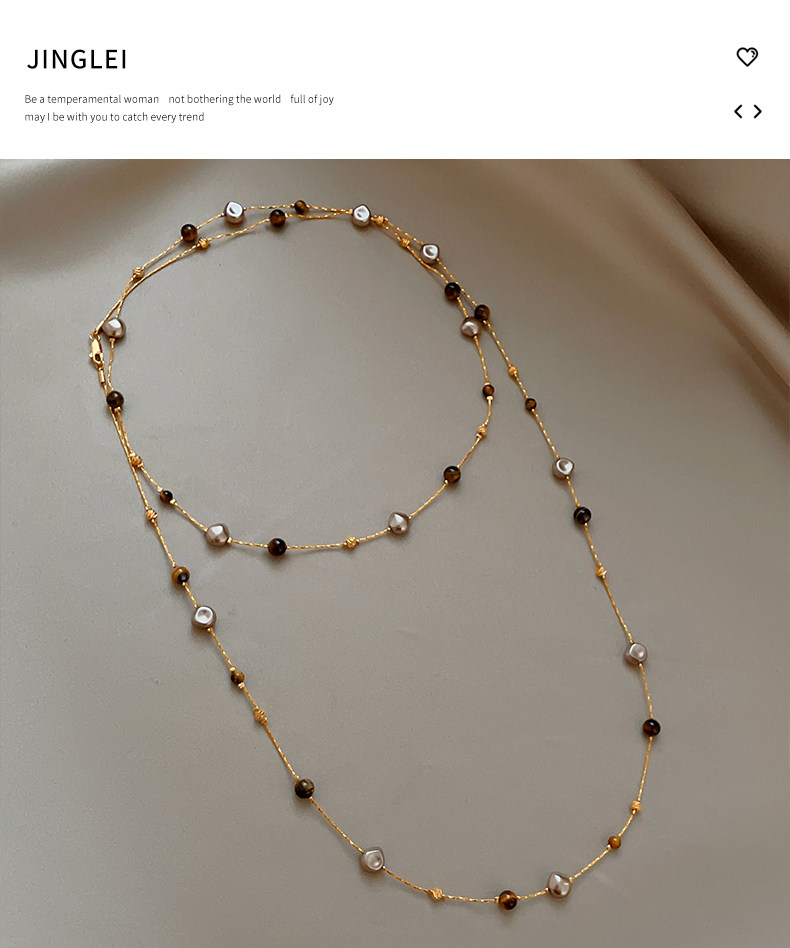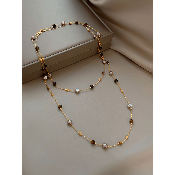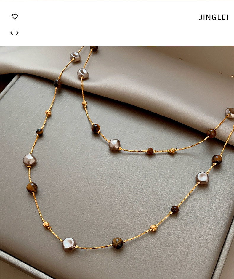 美拉德串珠虎眼石曡戴項鍊女秋冬爆款高級感多層長款毛衣鏈鎖骨鍊