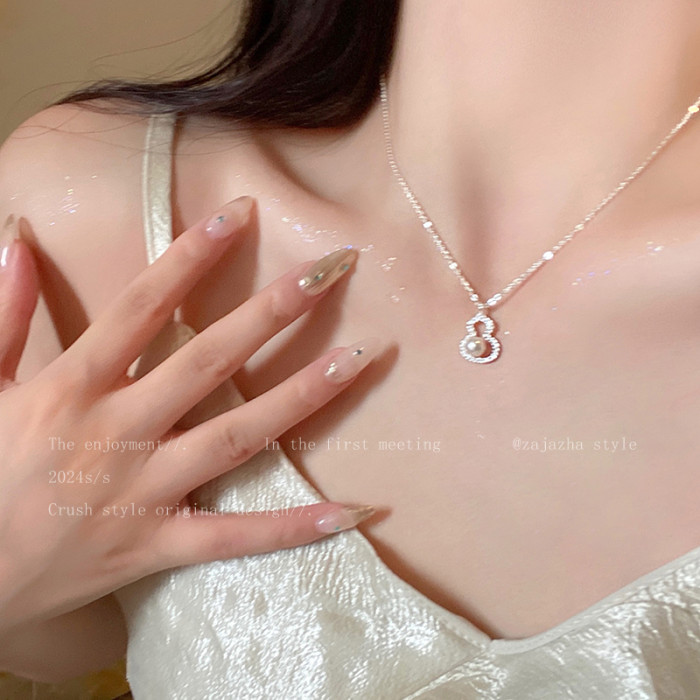 葫蘆珍珠吊墜鎖骨鍊女生2026新款爆款高級感配飾精緻氣質小衆項鍊