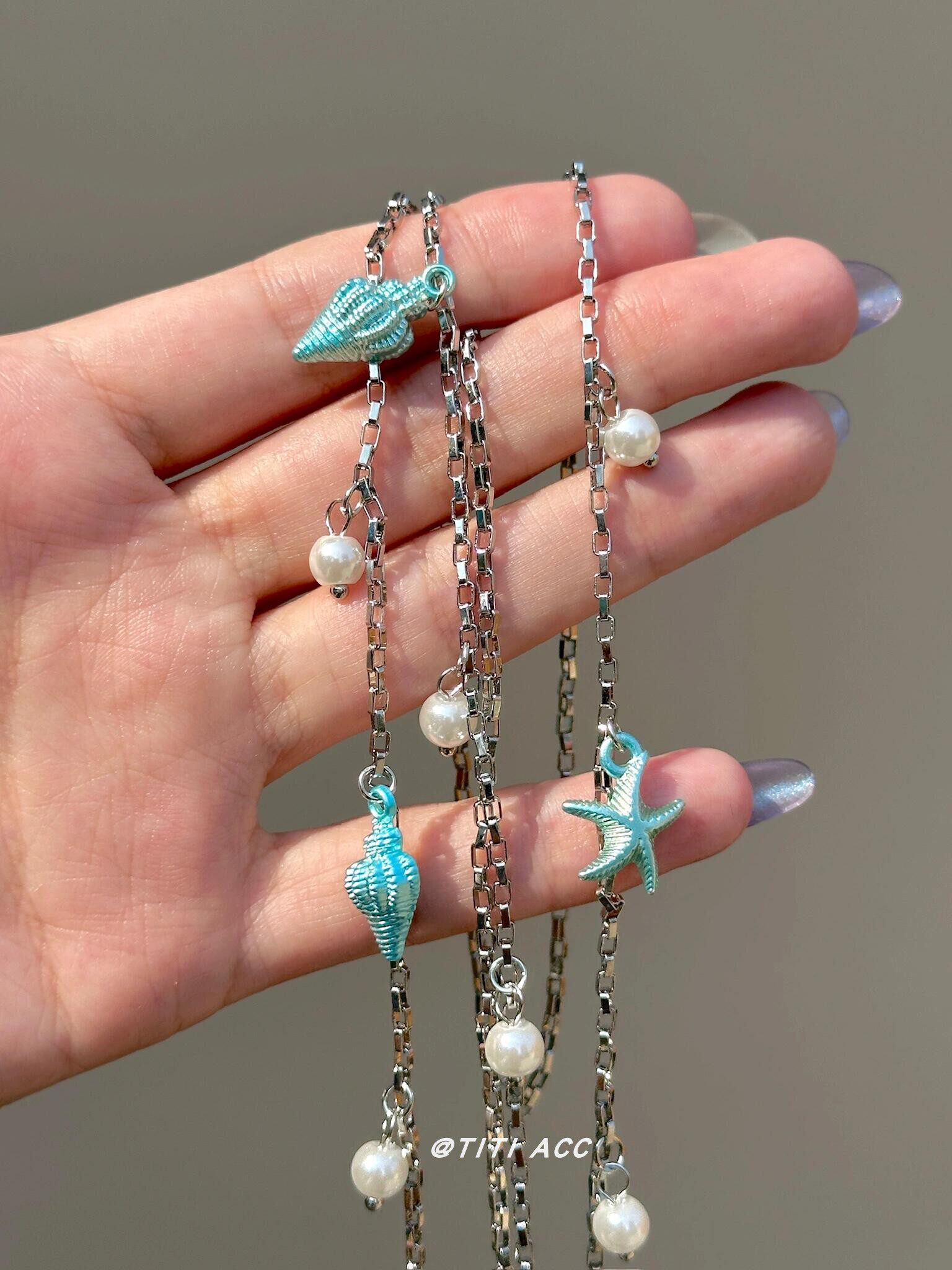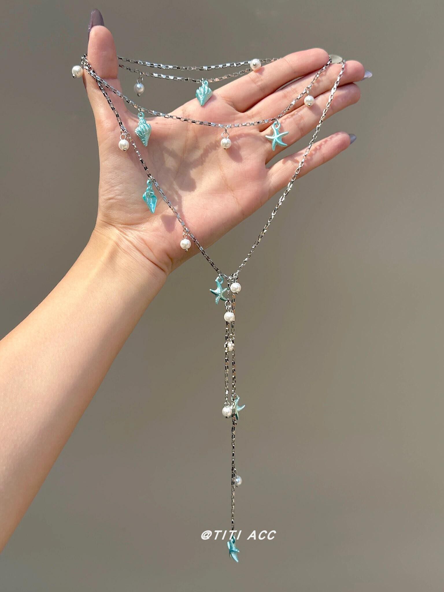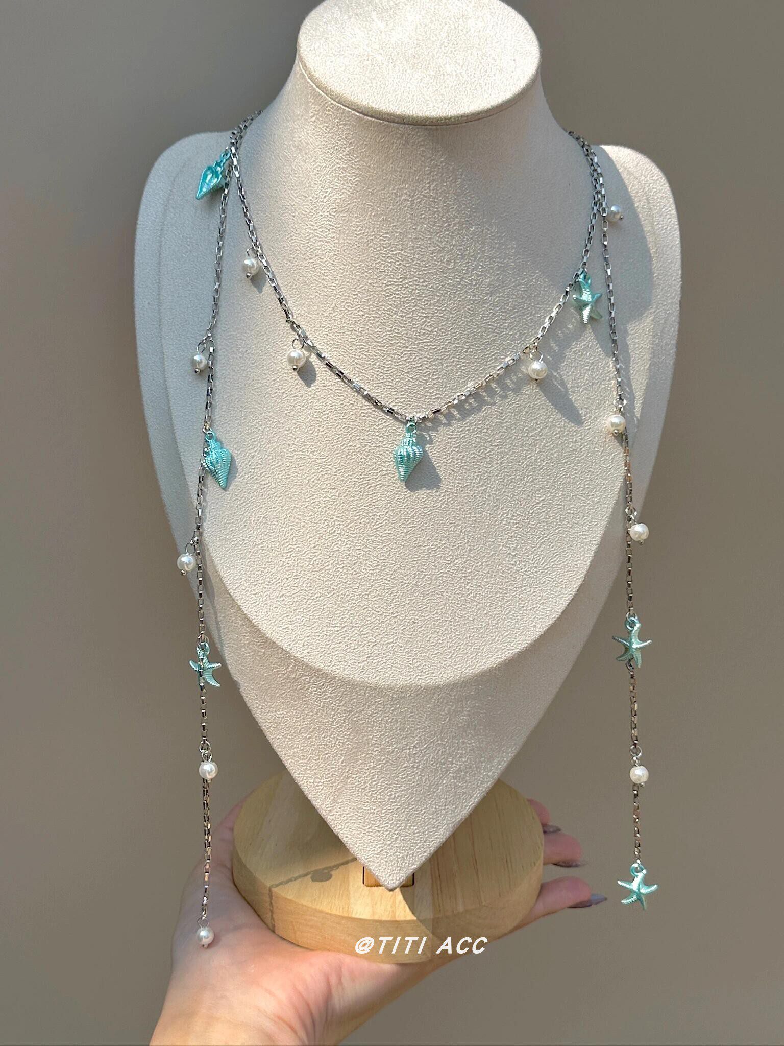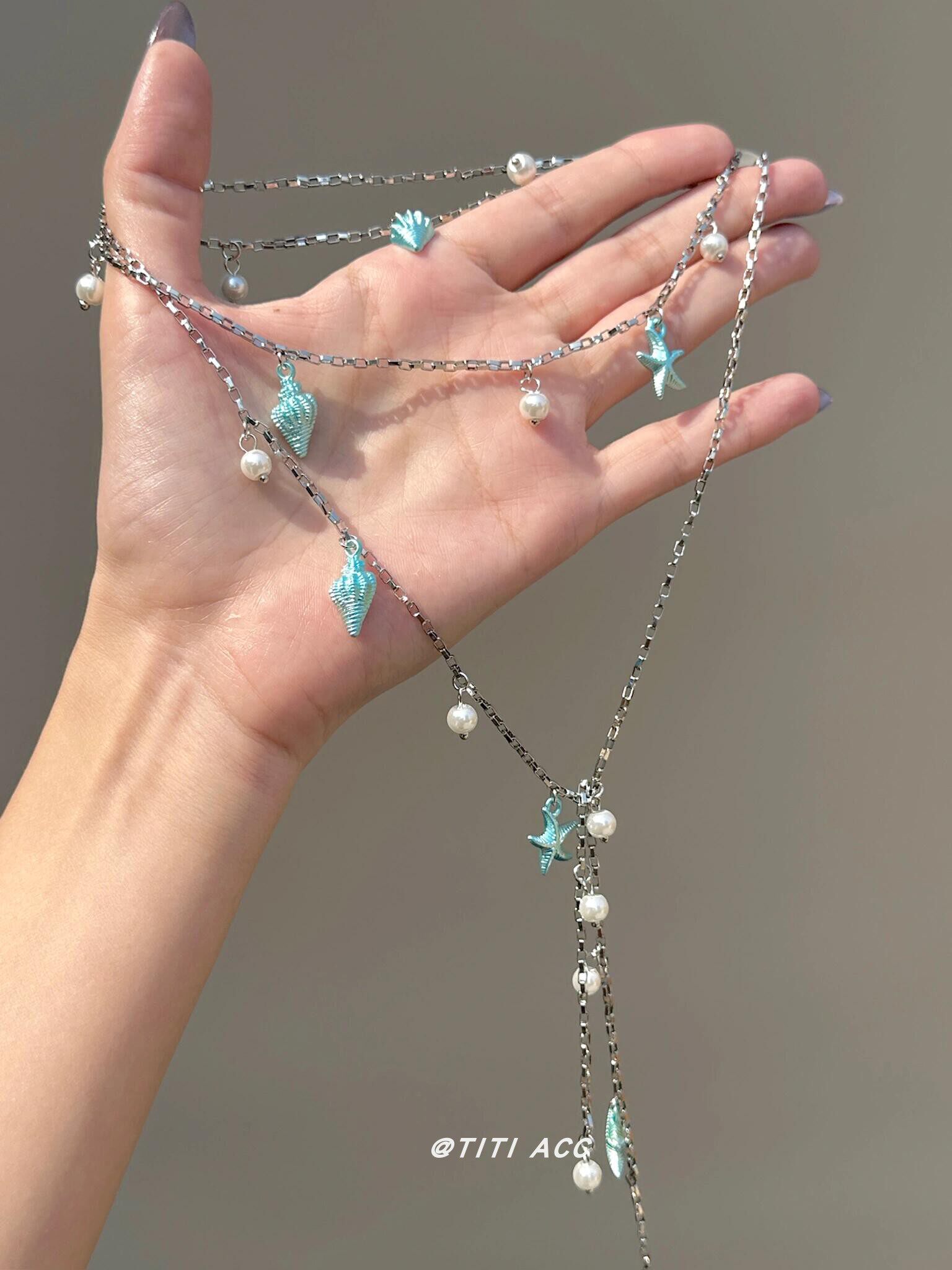 藍色海星海螺珍珠流蘇項鍊長款夏天搭配裙子鎖骨鍊女海邊度假配飾