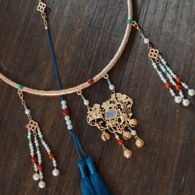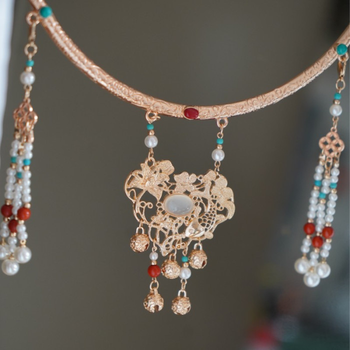 雲深霧淺 富貴有魚 原創漢服瓔珞富貴明製項圈古風項鍊晚明風背雲