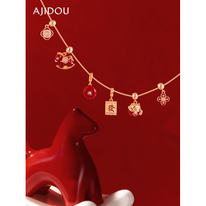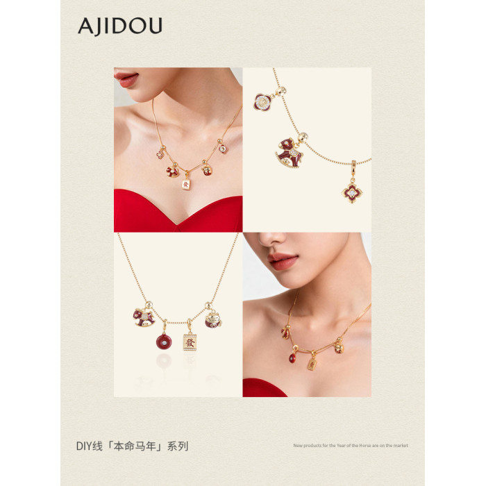 AJIDOU阿吉豆項鍊女本命年生肖馬DIY新年款項鍊輕奢平安釦鎖骨鍊