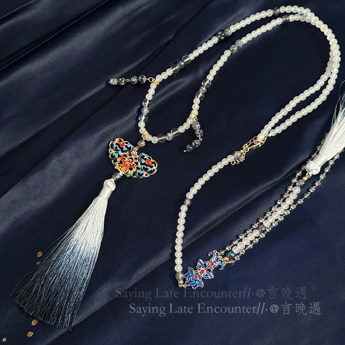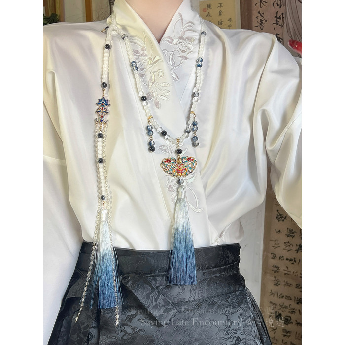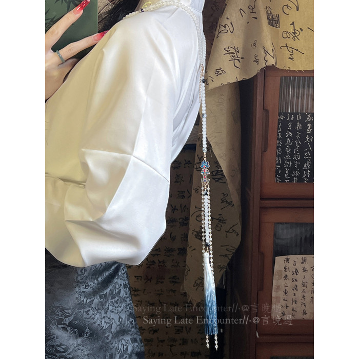 新中式背雲流蘇瓔珞串珠吊墜項鍊女漢服古風國風旗袍馬面裙配飾品