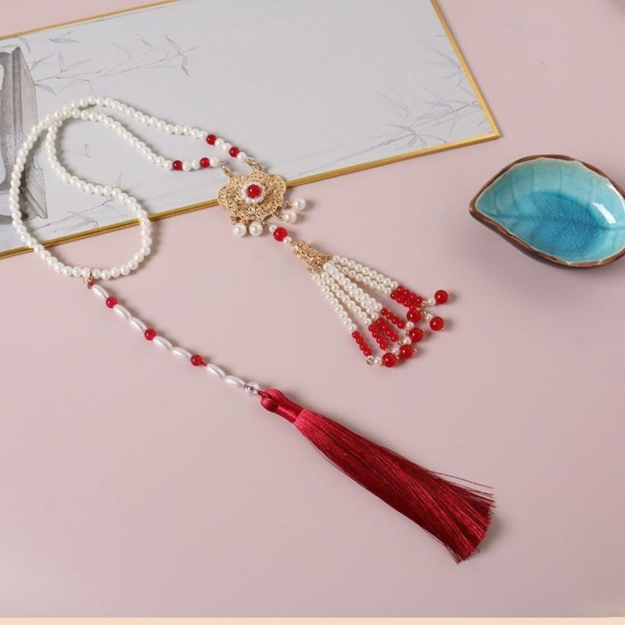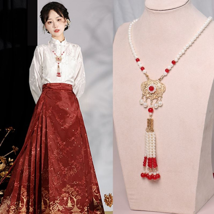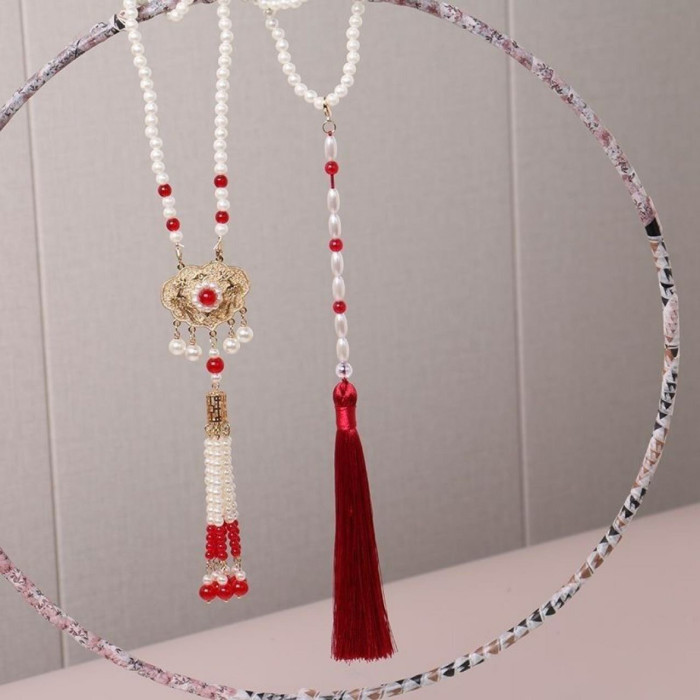 搭配馬面裙的項鍊古風漢服背雲流蘇國風旗袍配飾結婚敬酒服瓔珞女