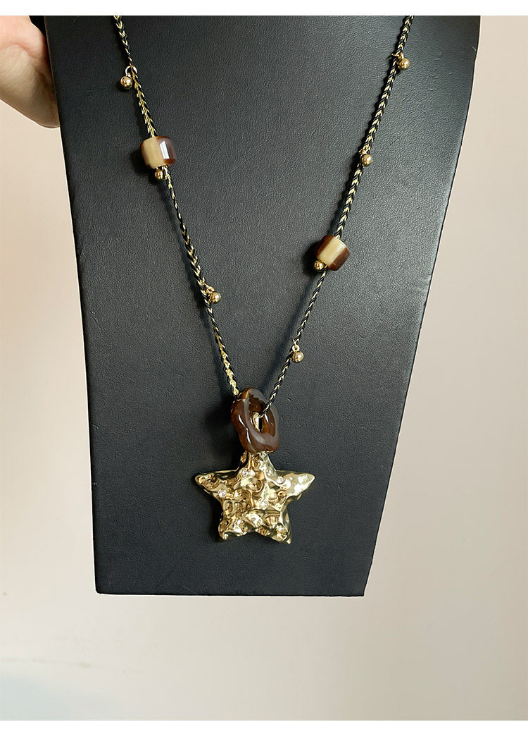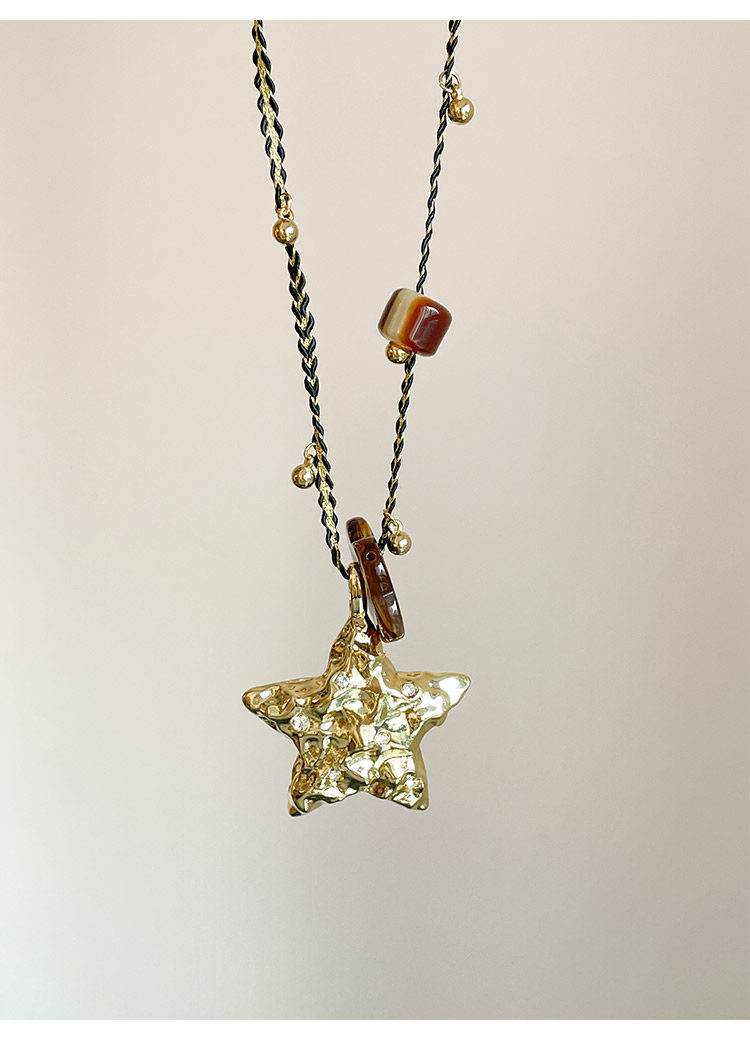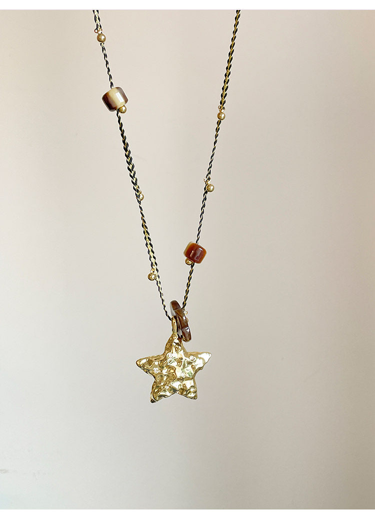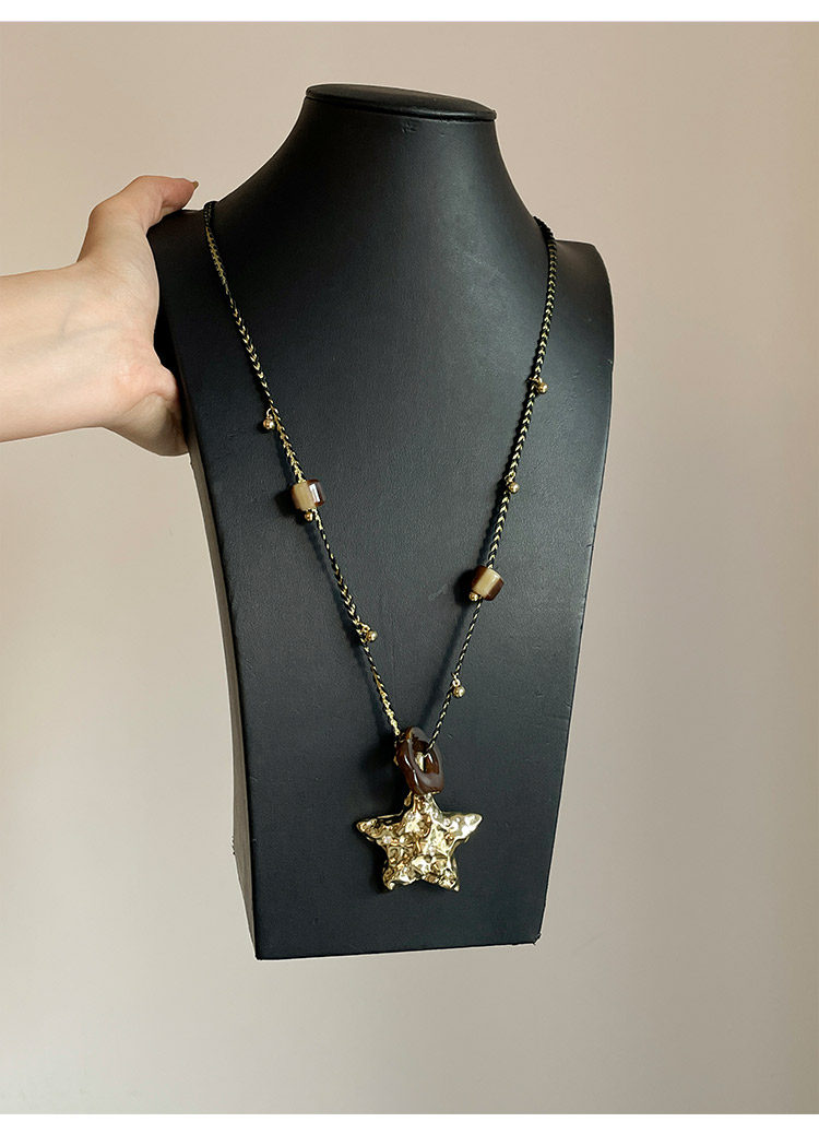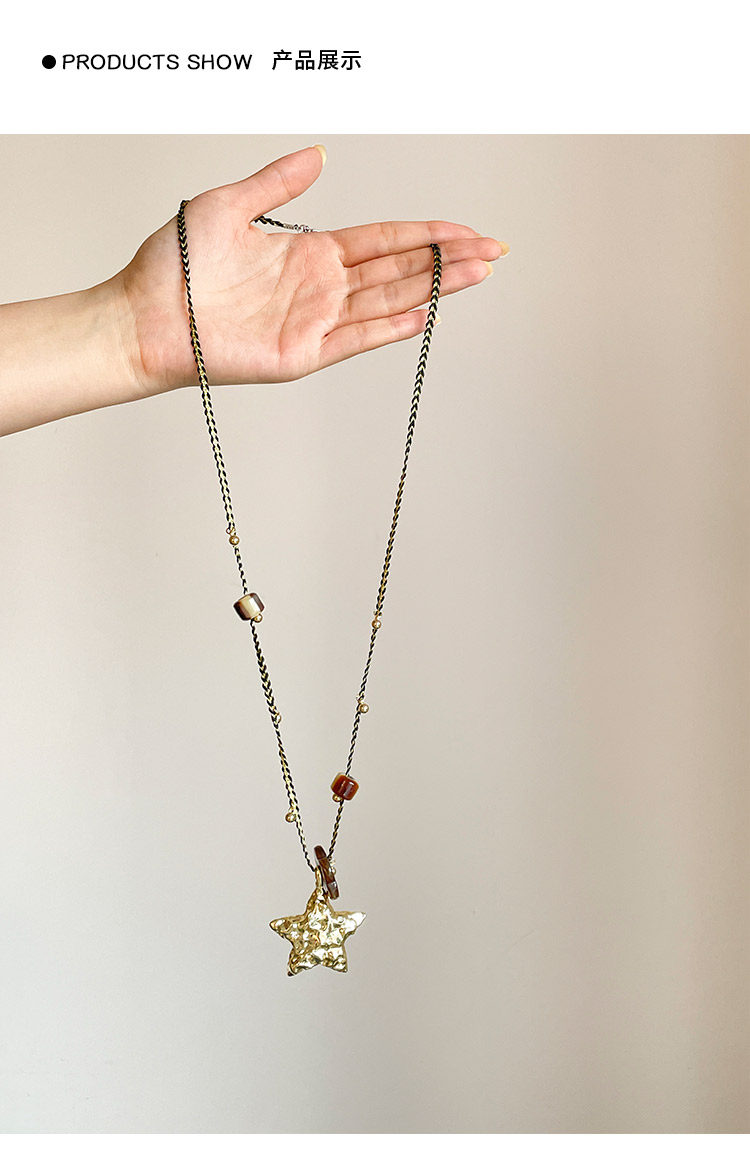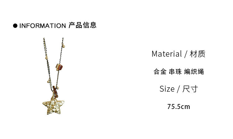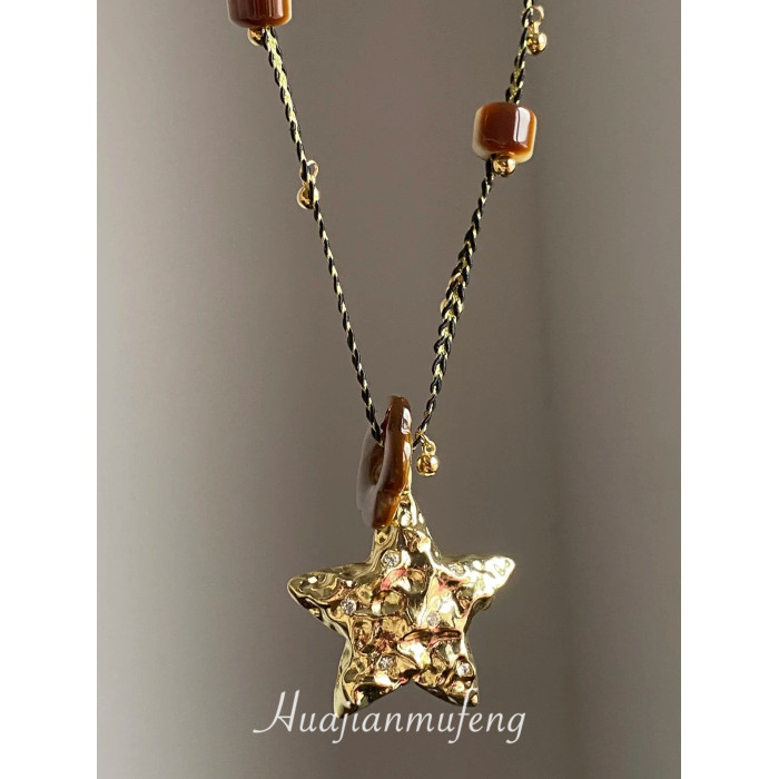 【幸運之星】復古金屬星星吊墜項鍊女美拉德風琥珀花朵串珠毛衣鏈