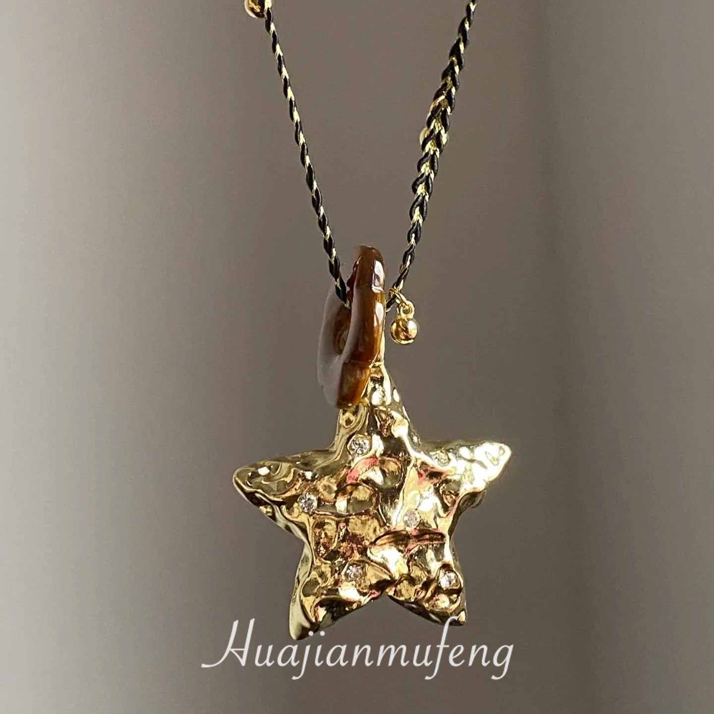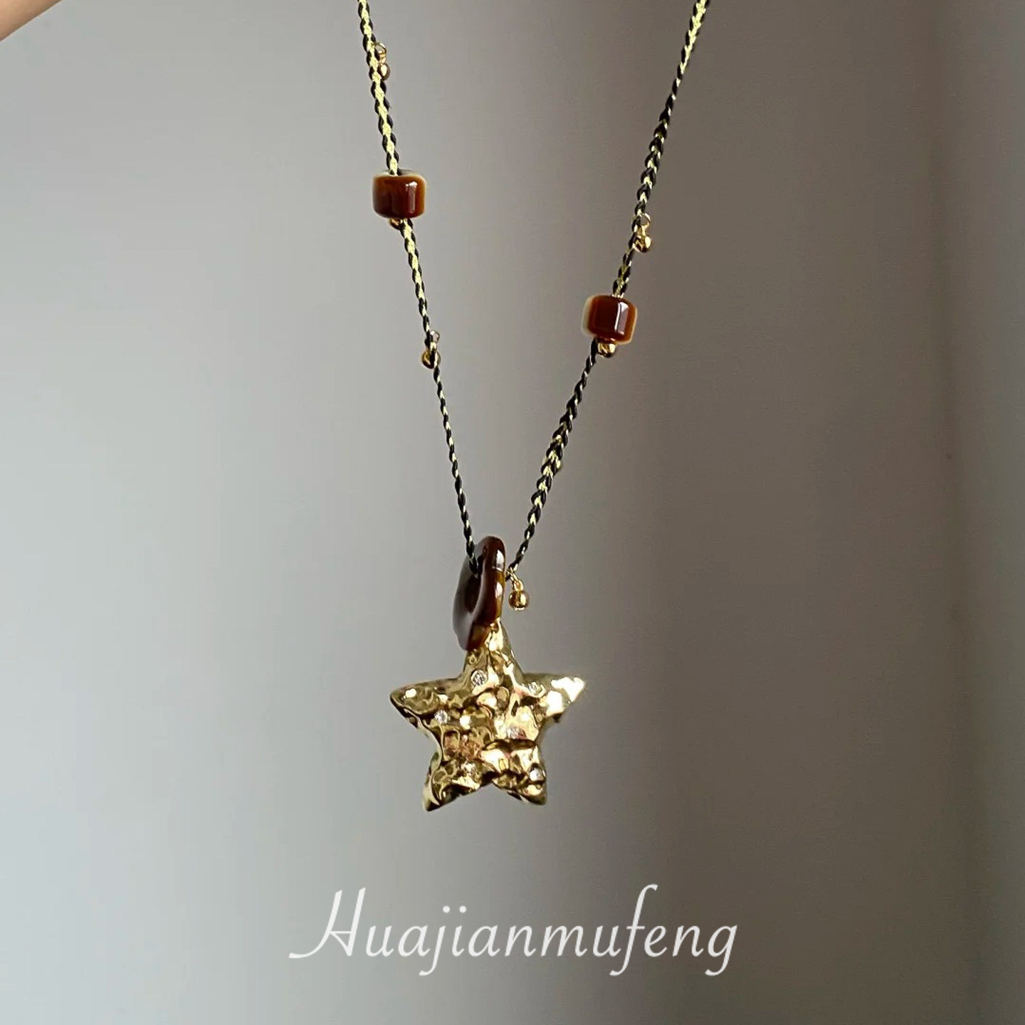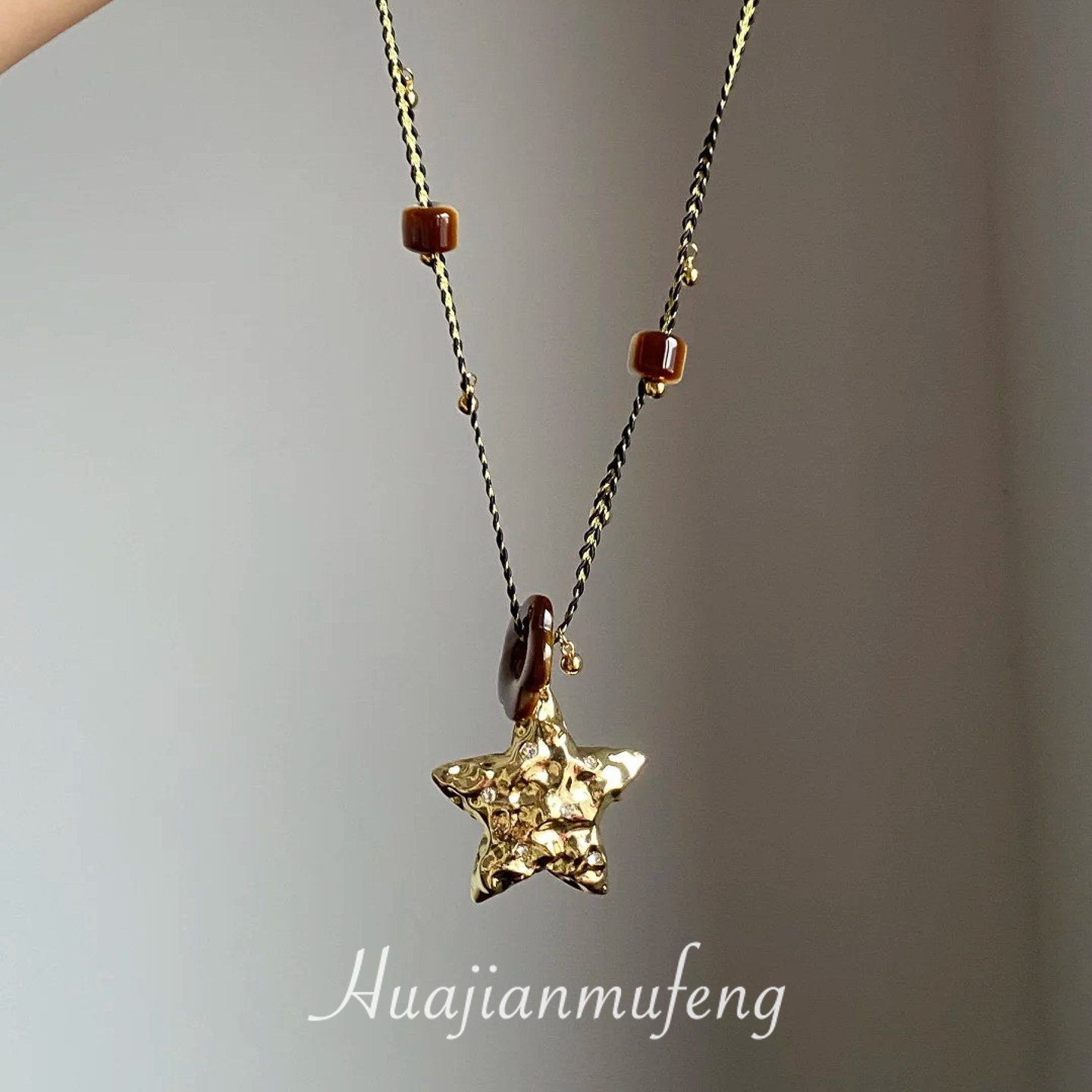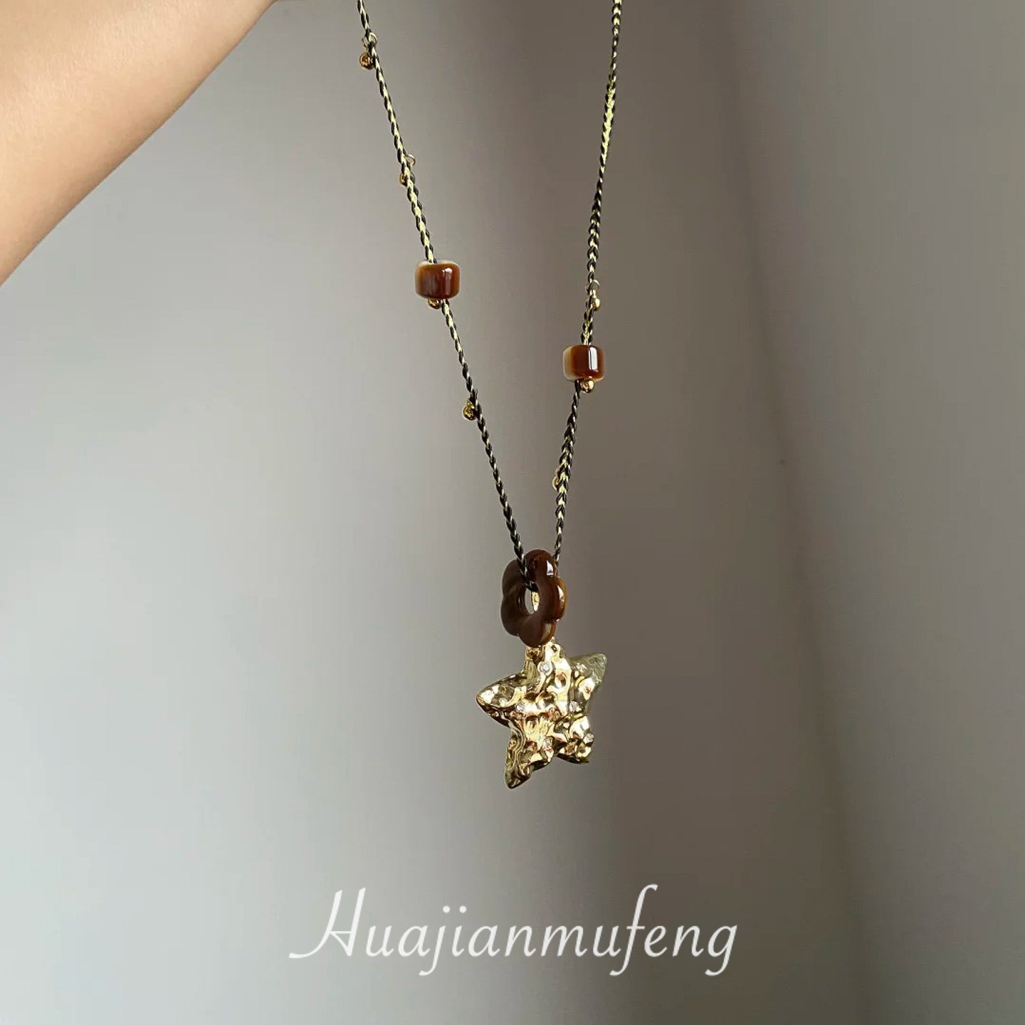【幸運之星】復古金屬星星吊墜項鍊女美拉德風琥珀花朵串珠毛衣鏈