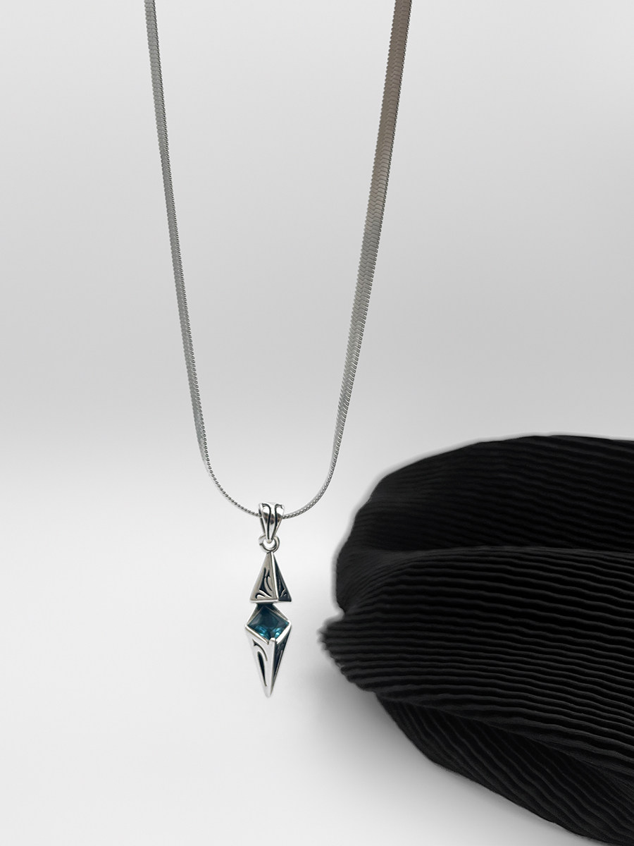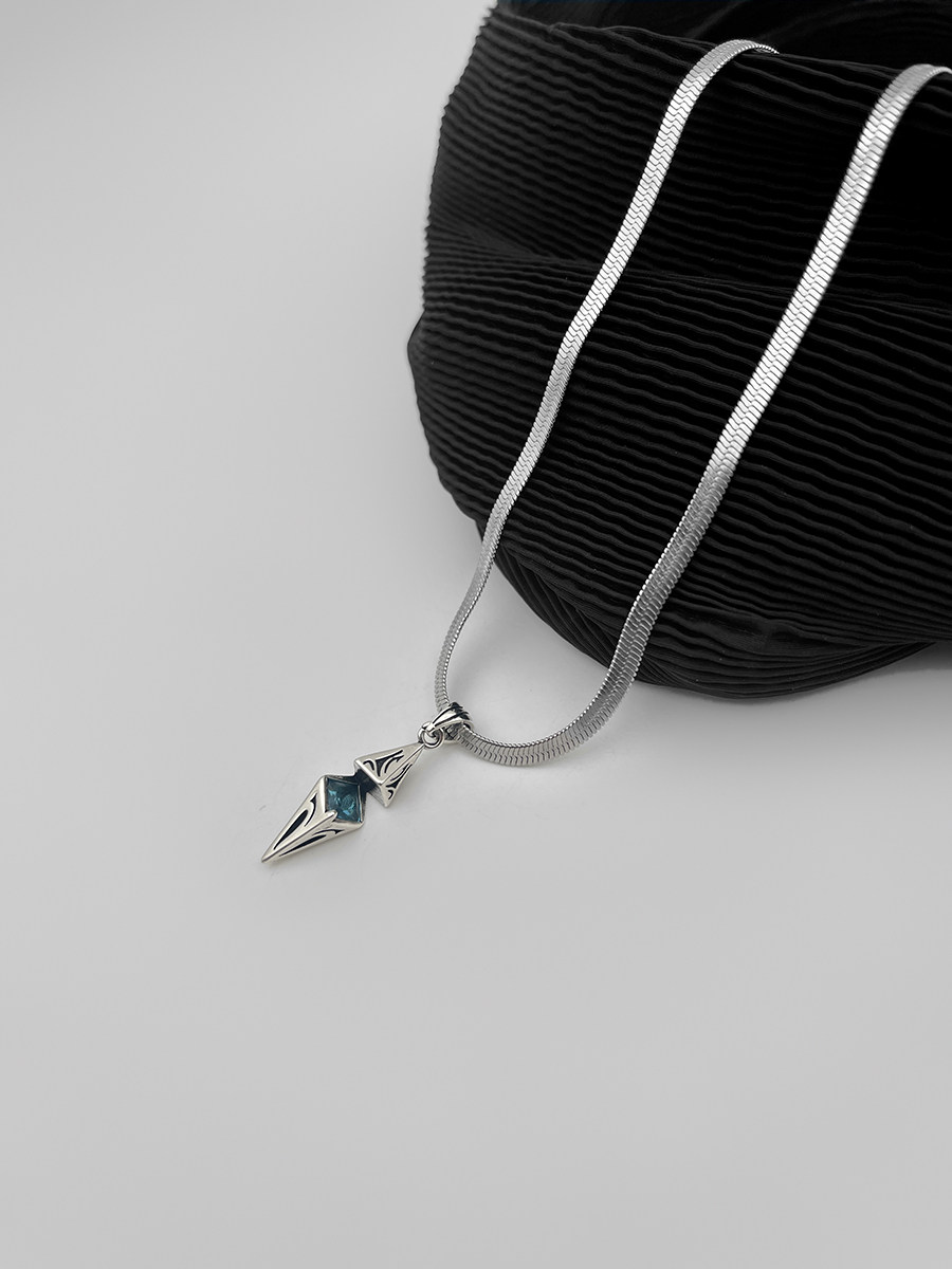 WHYBLUE 星芒海藍鋯石鎖骨鍊男小衆設計感輕奢帥氣清冷高級吊墜潮