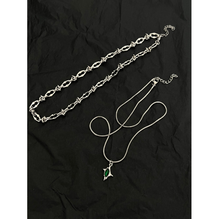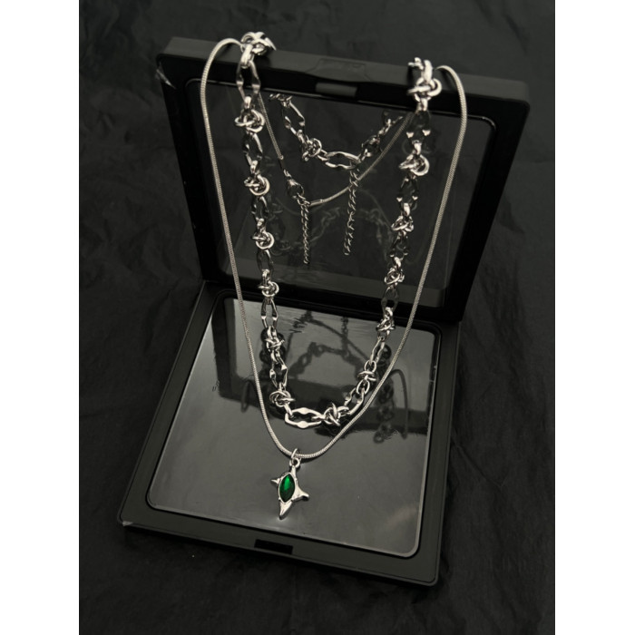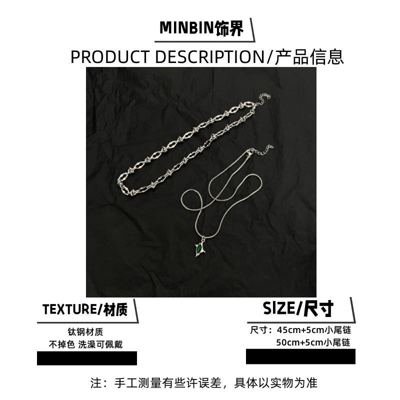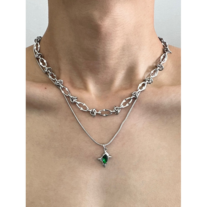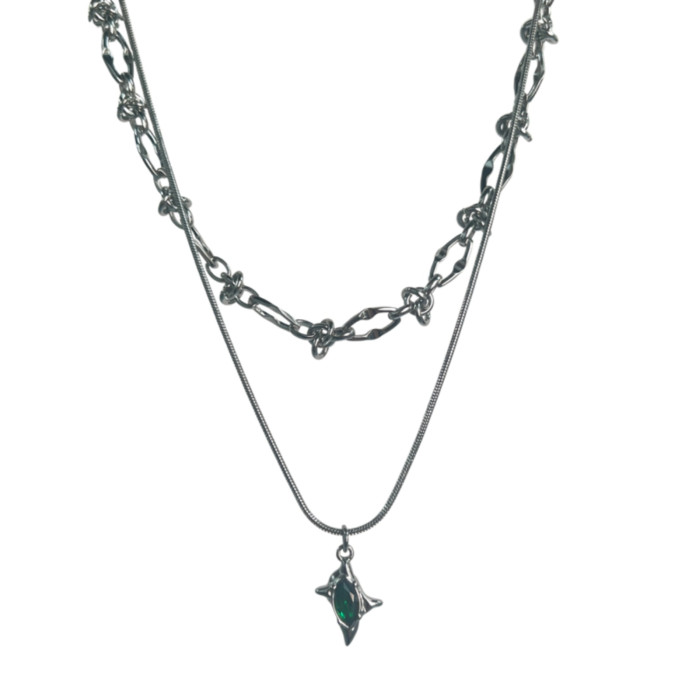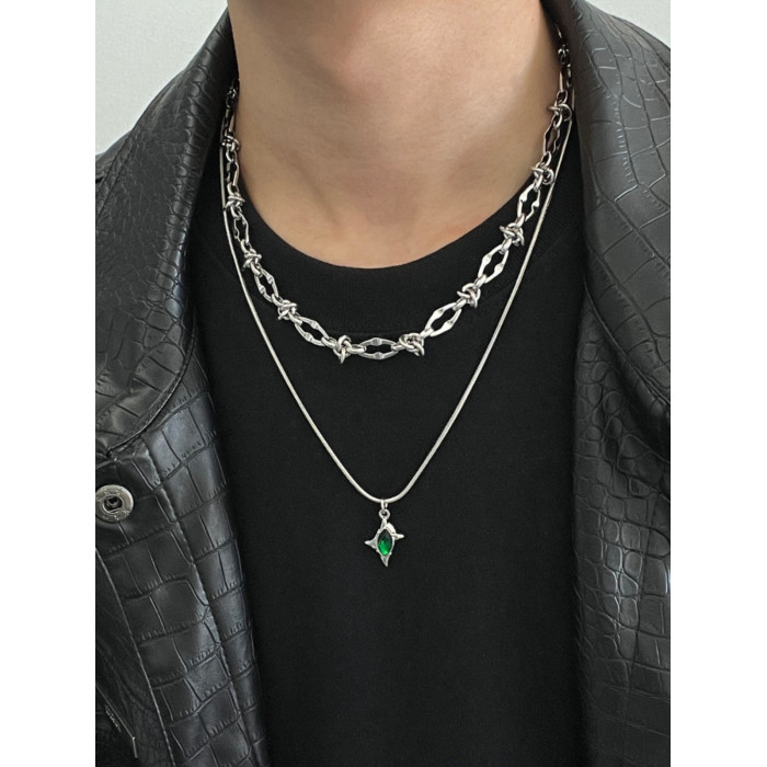 雙層綠色隕星荊棘鈦鋼項鍊男潮設計感小衆嘻哈高級感鎖骨鍊不掉色