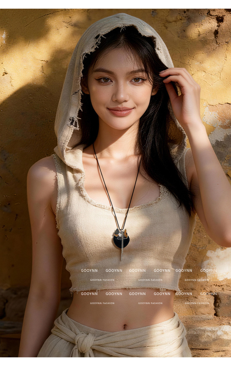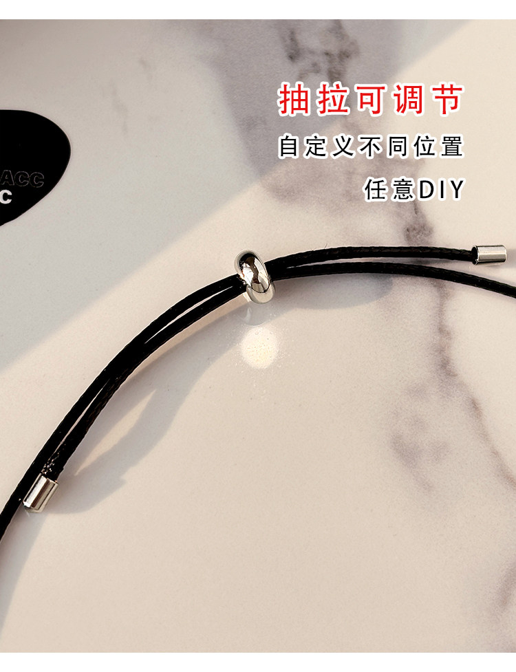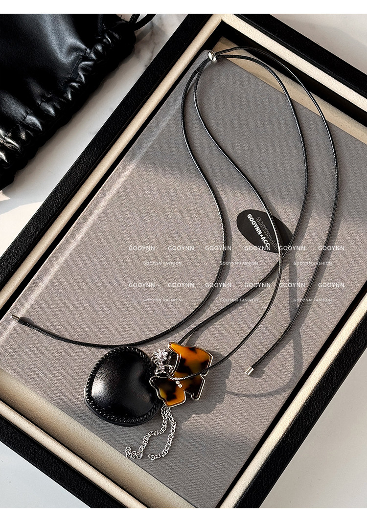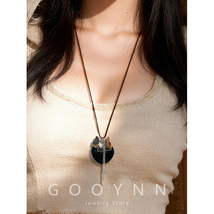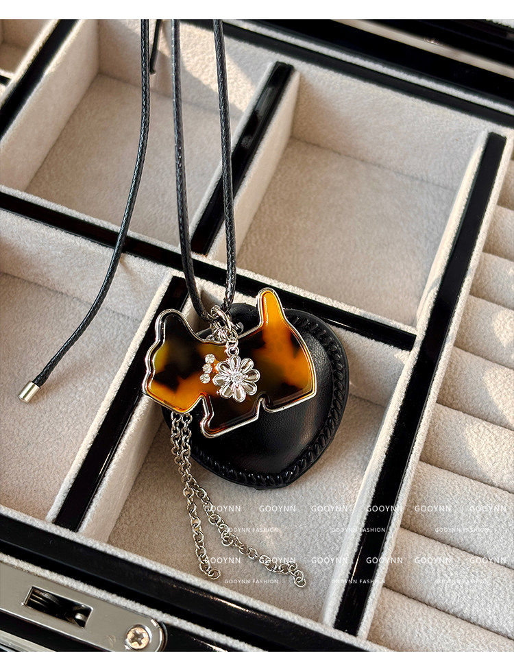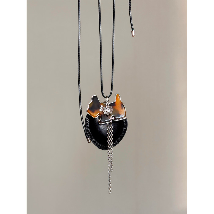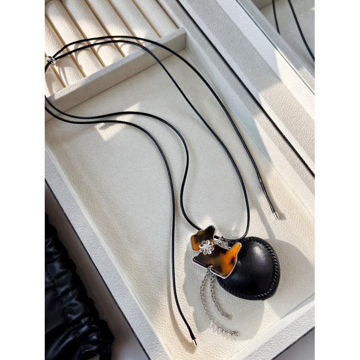 韓系ins黑色皮繩愛心項鍊女設計感小衆長款小貓吊墜毛衣鏈配飾品