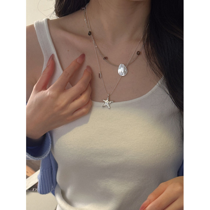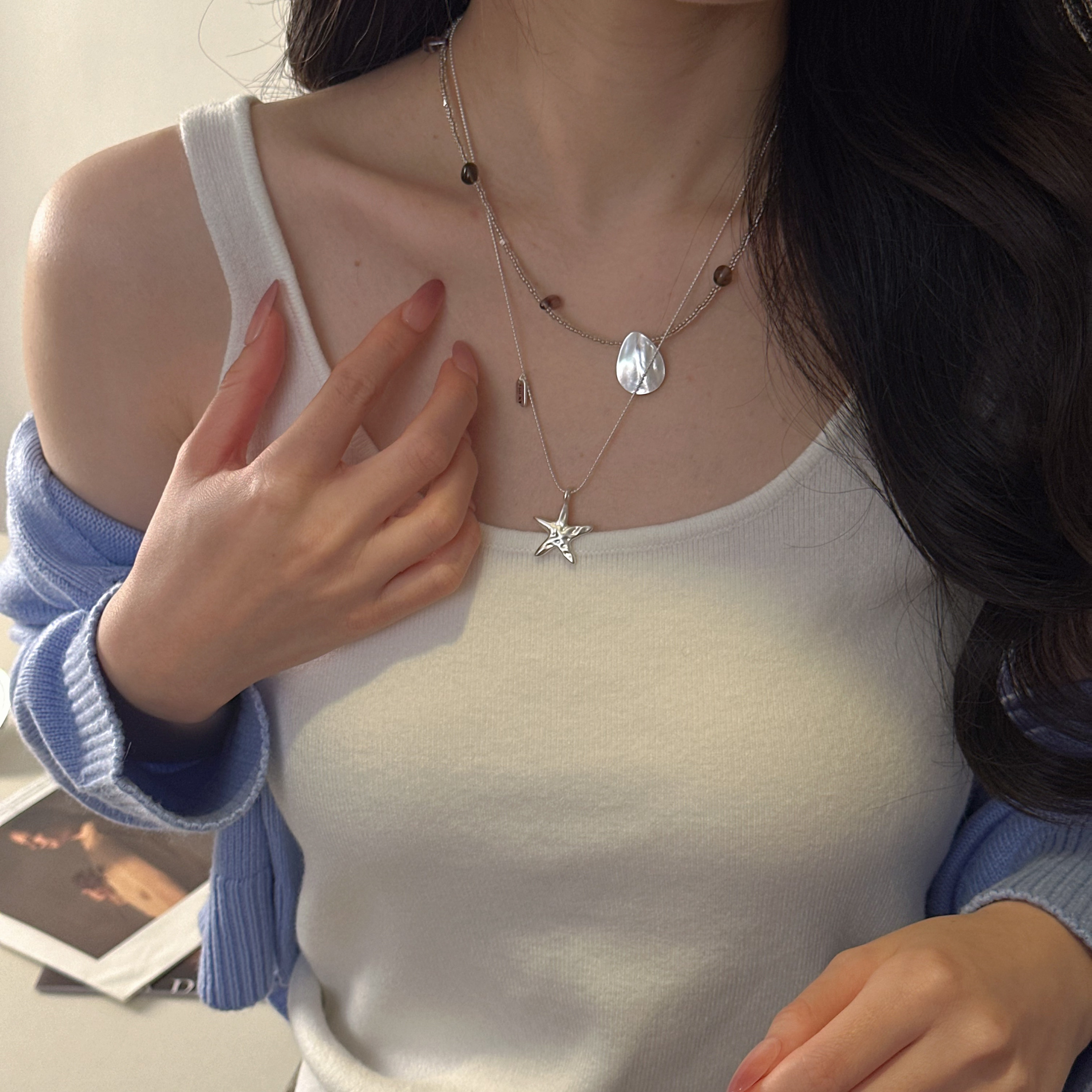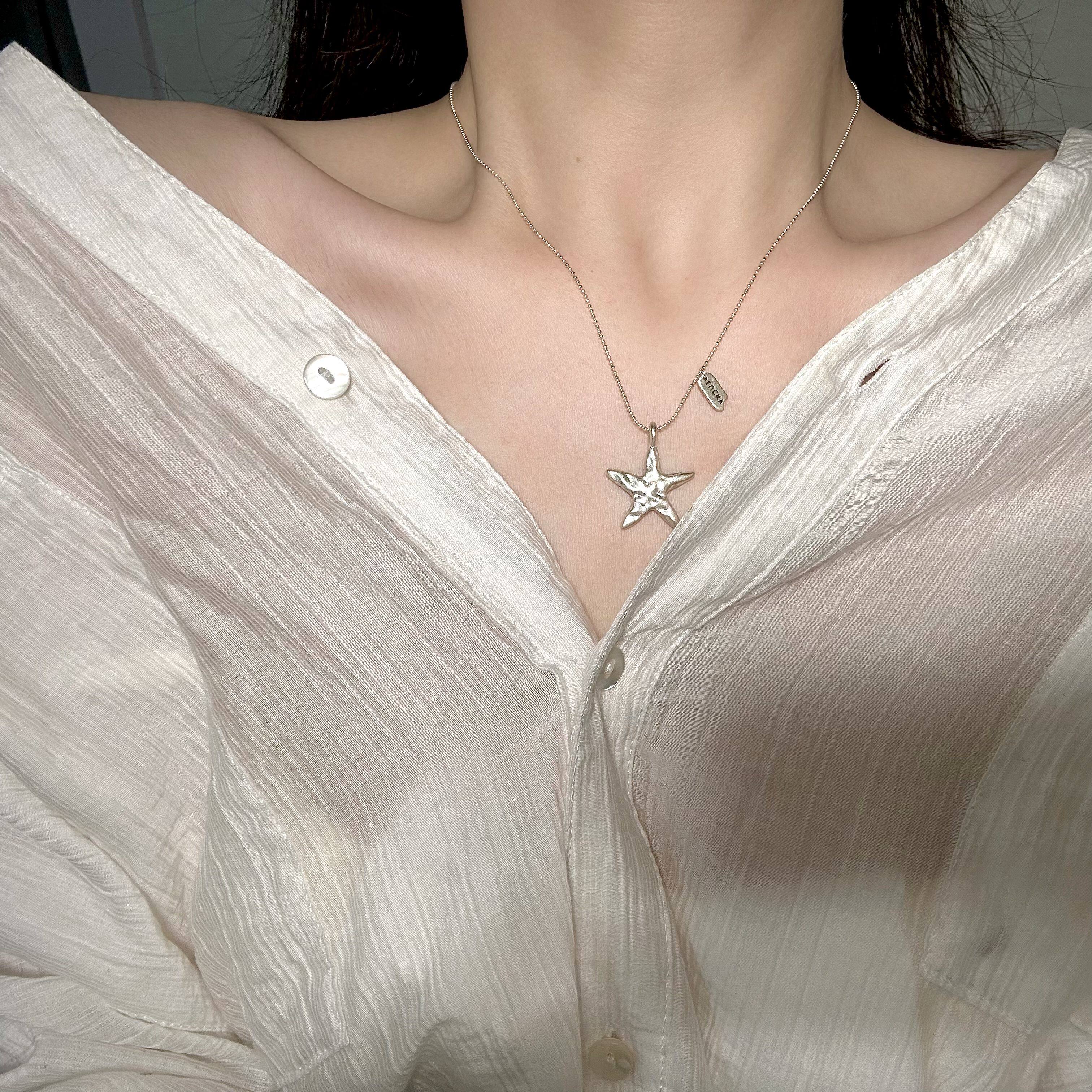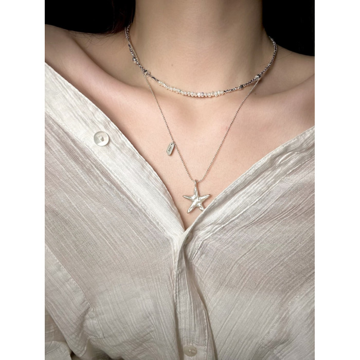 十裡間【星軌】百搭少女小清新淡水珍珠五角星海星項鍊曡戴毛衣鏈
