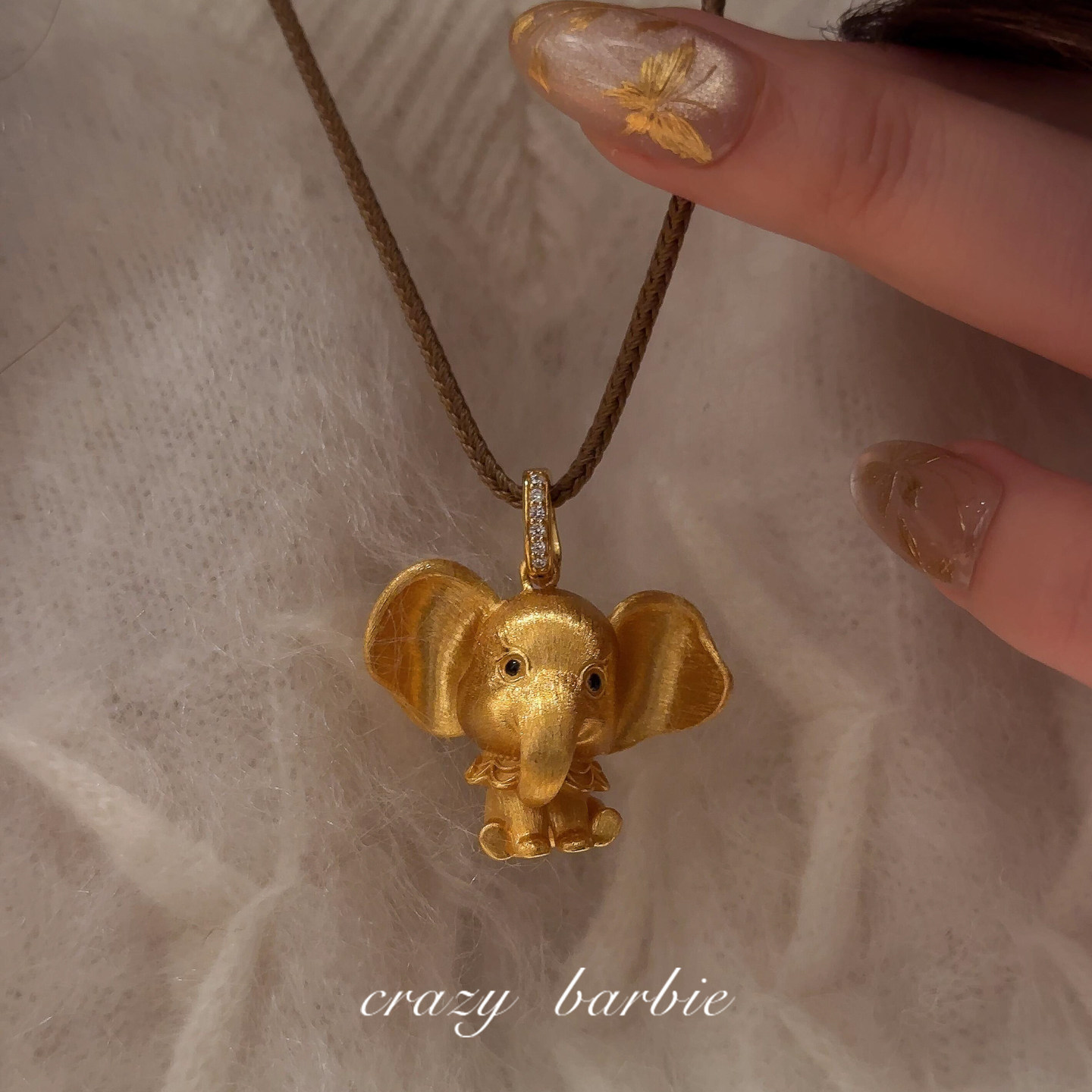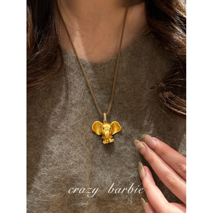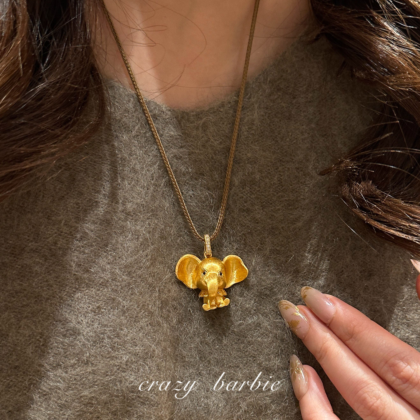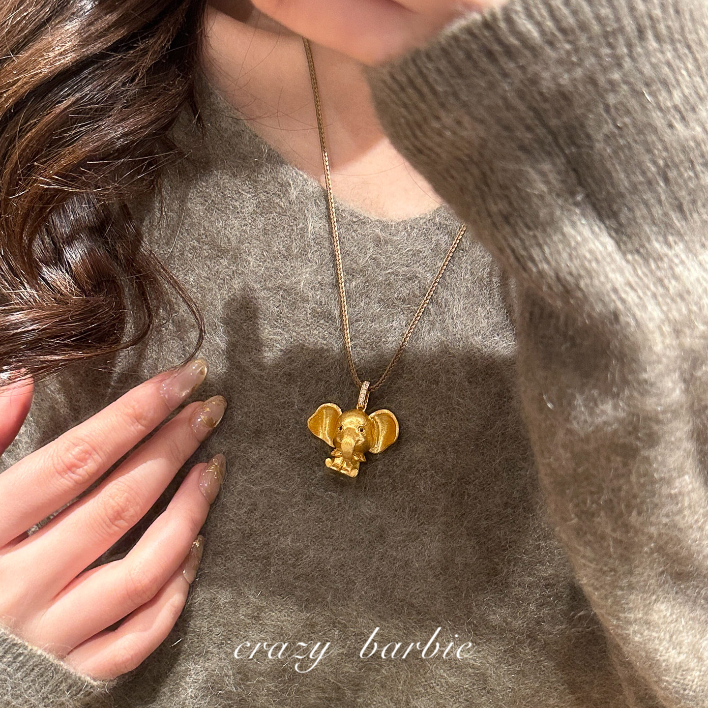 【圍兜小飛象】古法實心沙金大象吊墜項鍊女新中式輕奢毛衣鏈輕奢
