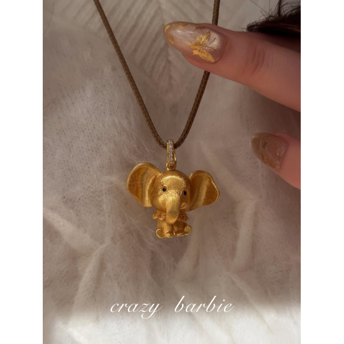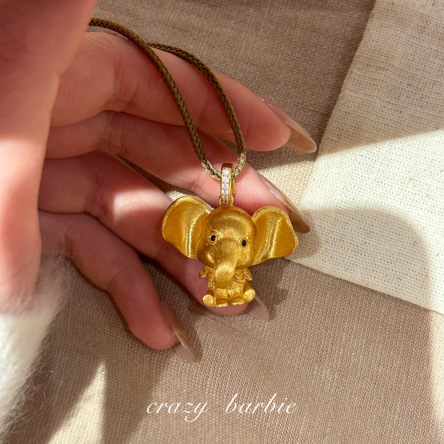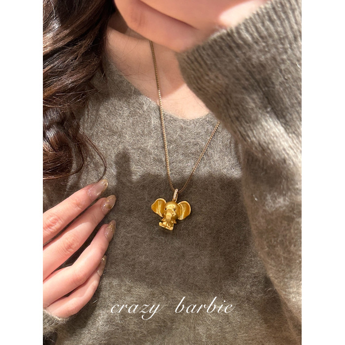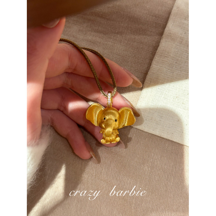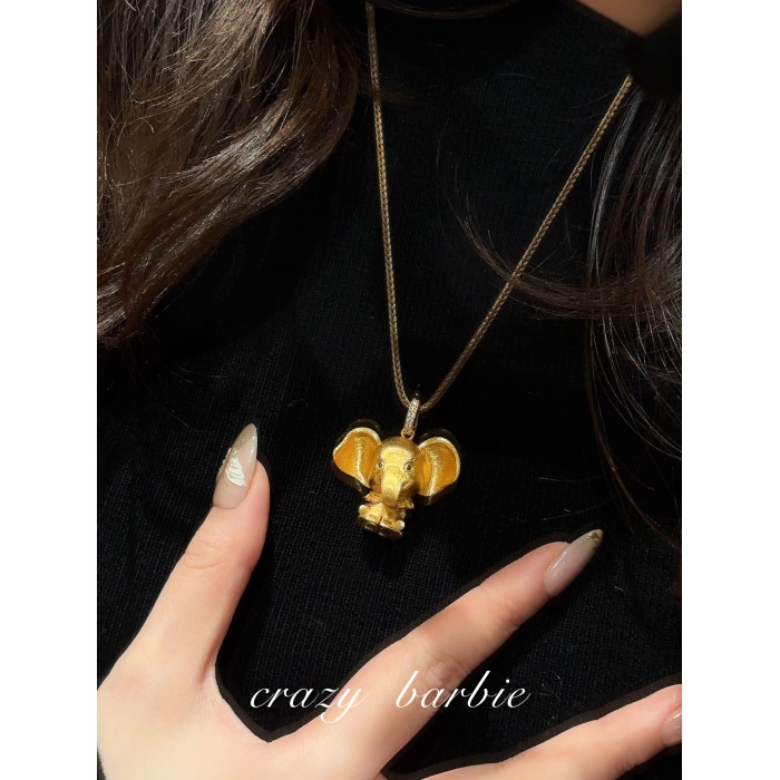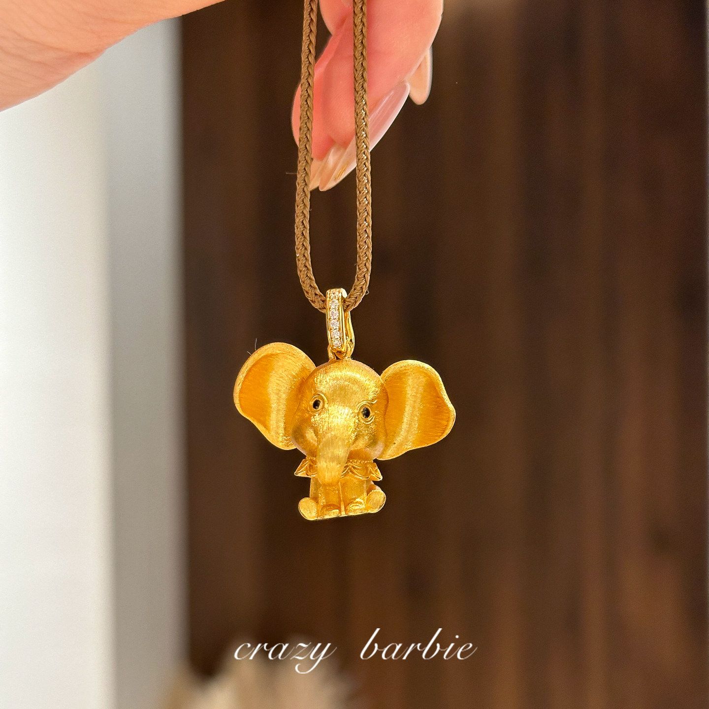 【圍兜小飛象】古法實心沙金大象吊墜項鍊女新中式輕奢毛衣鏈輕奢