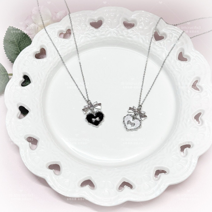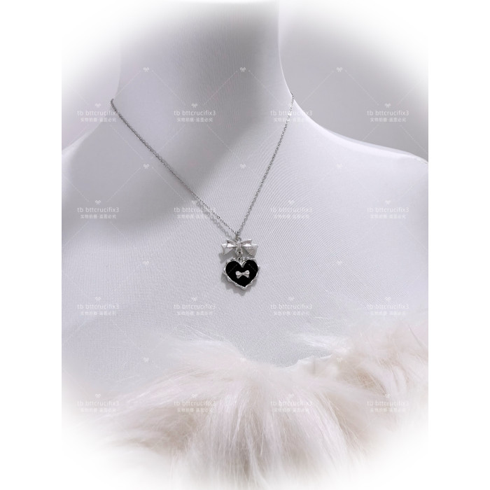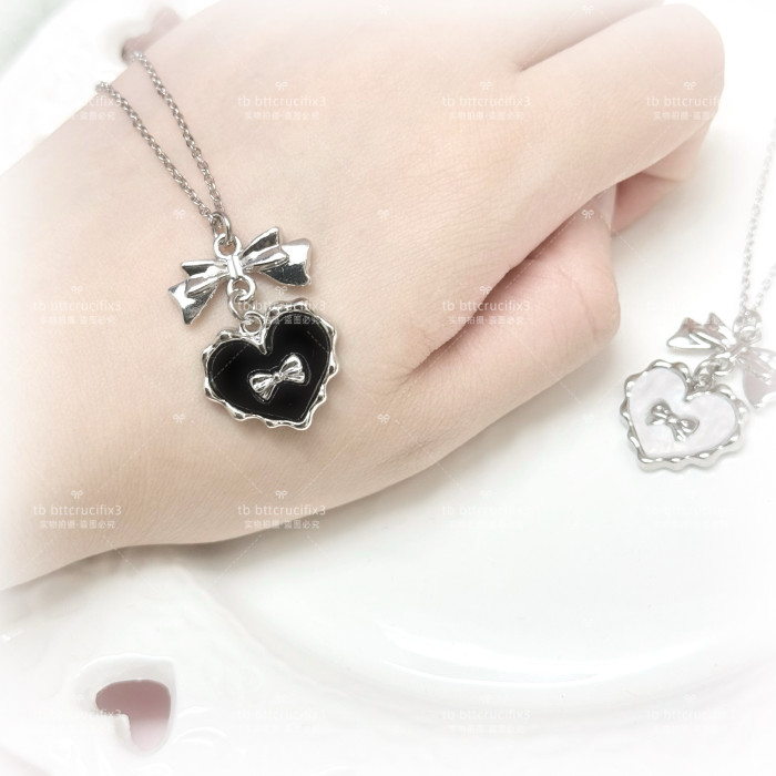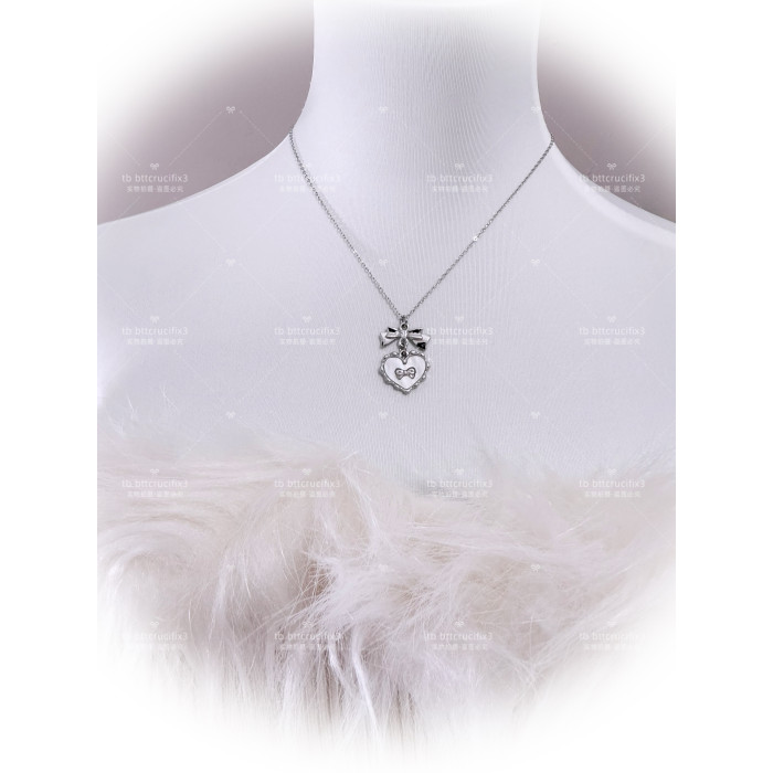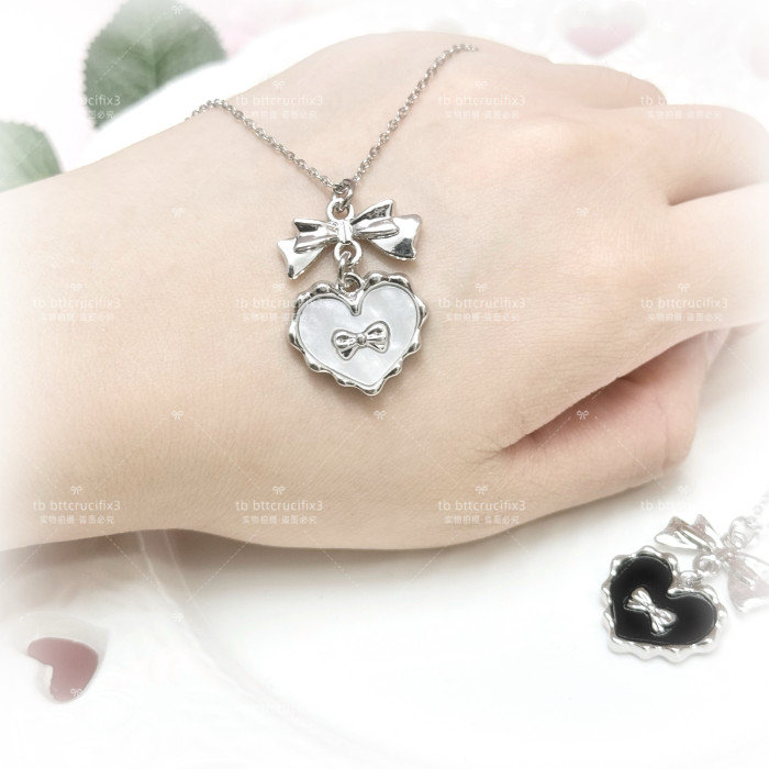 日系ins量産型復古vintage蝴蝶結愛心鎖骨鍊項鍊