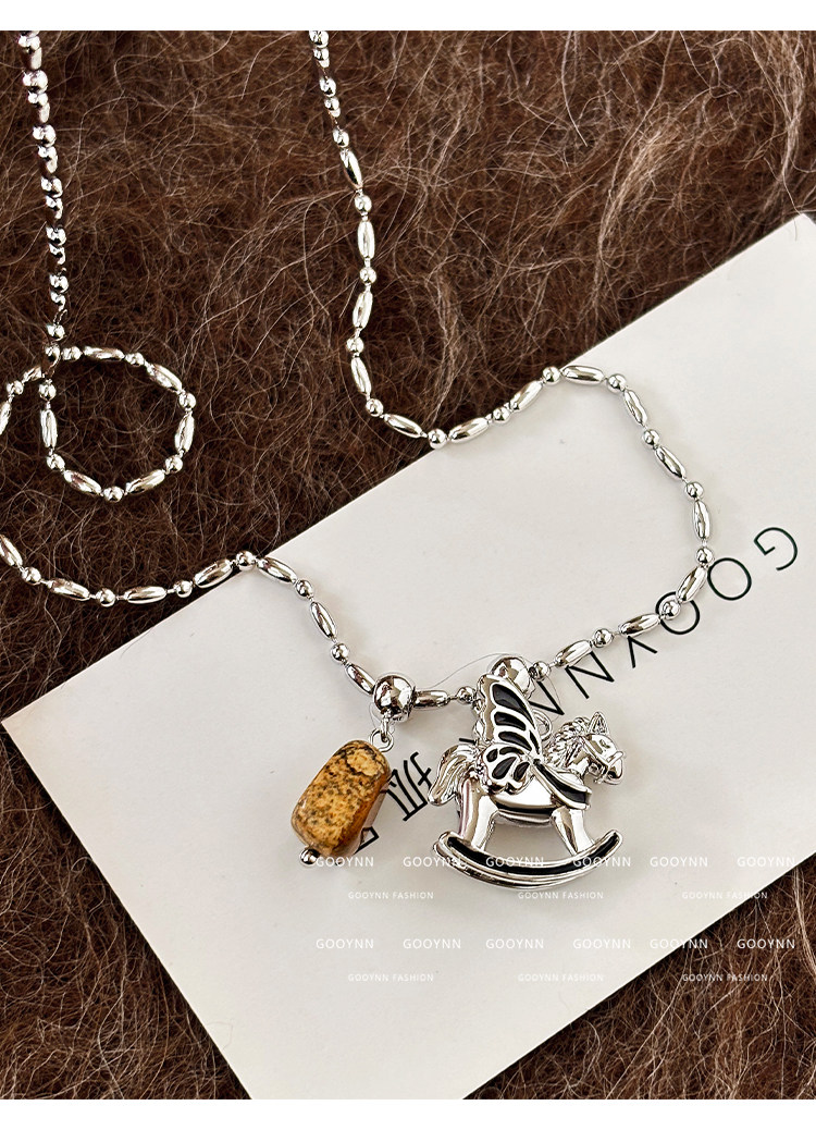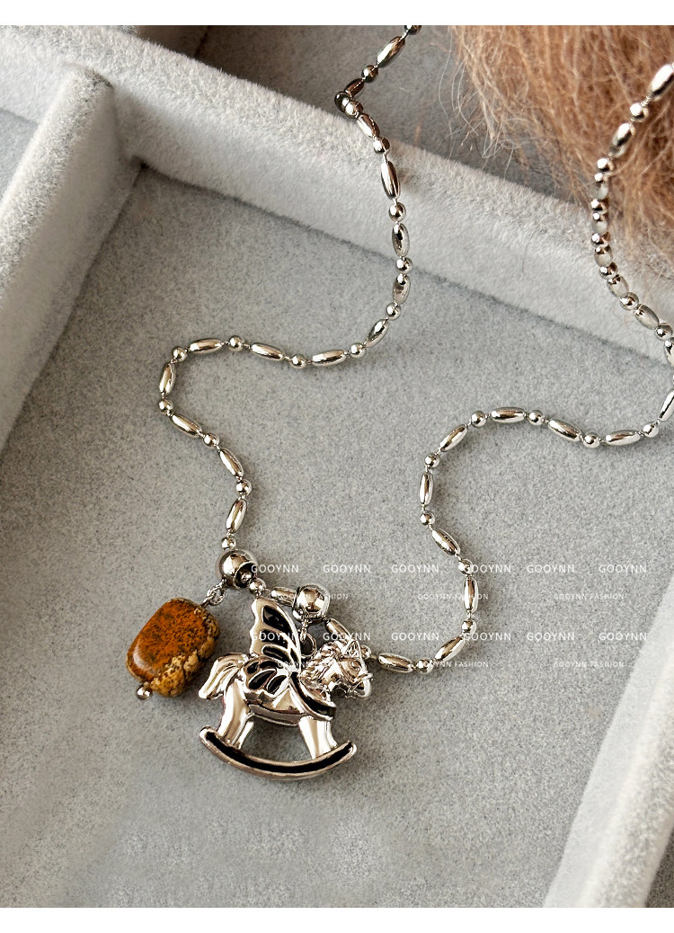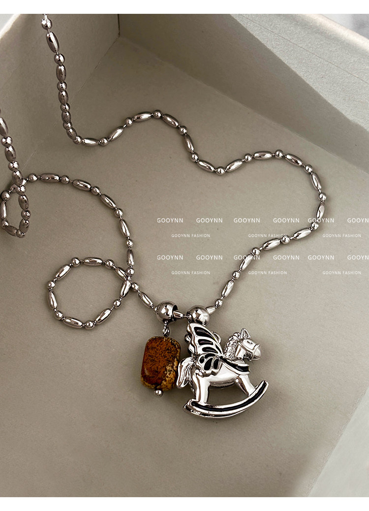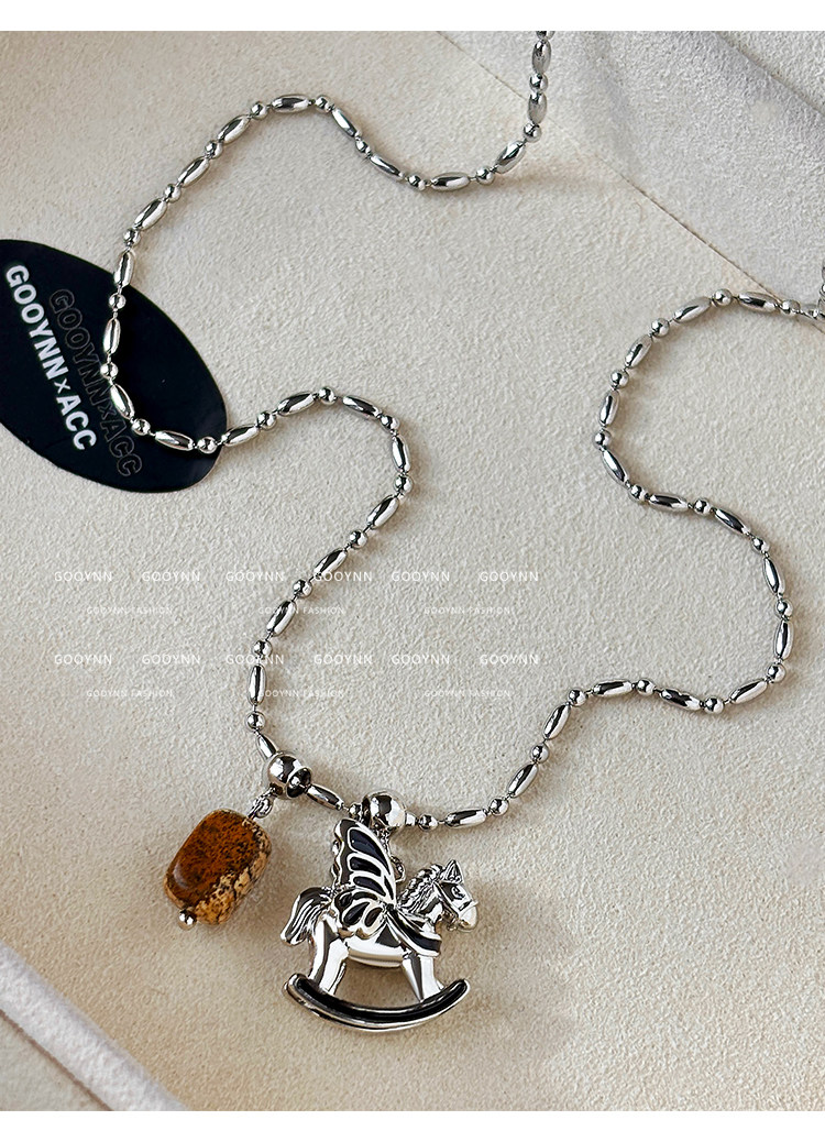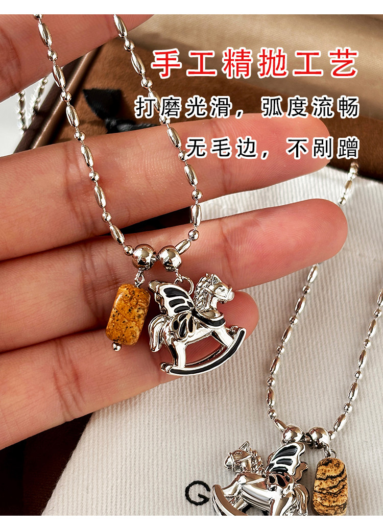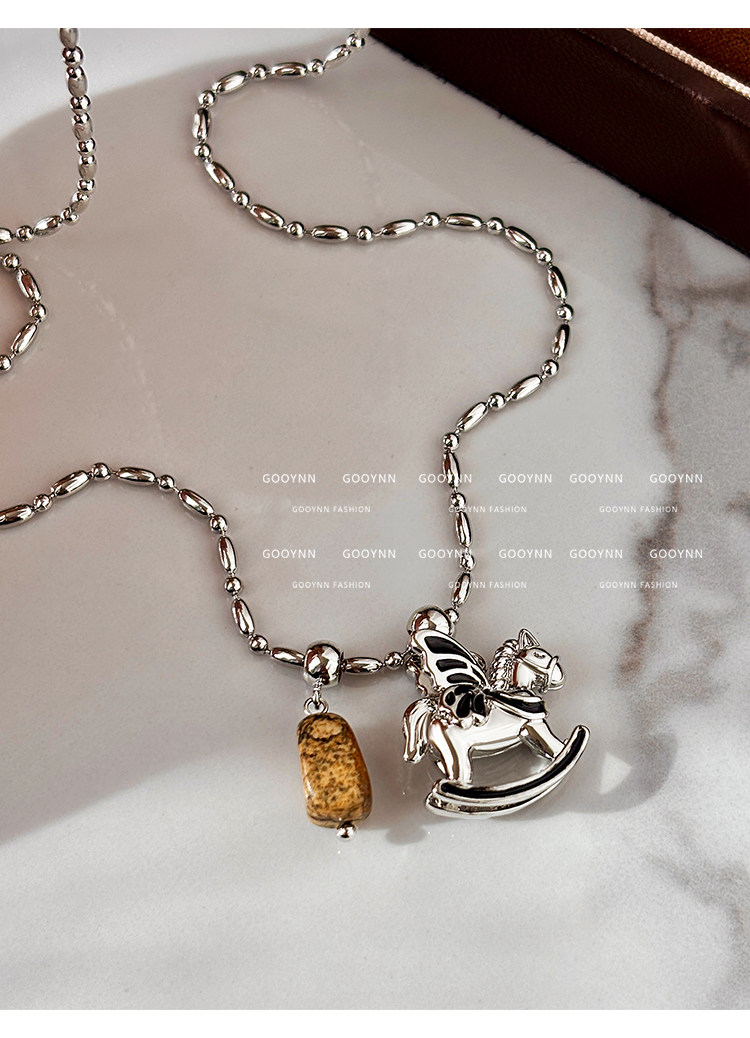 銀色生肖小木馬項鍊女款高級感輕奢小衆鎖骨毛衣鏈本命年長款配飾