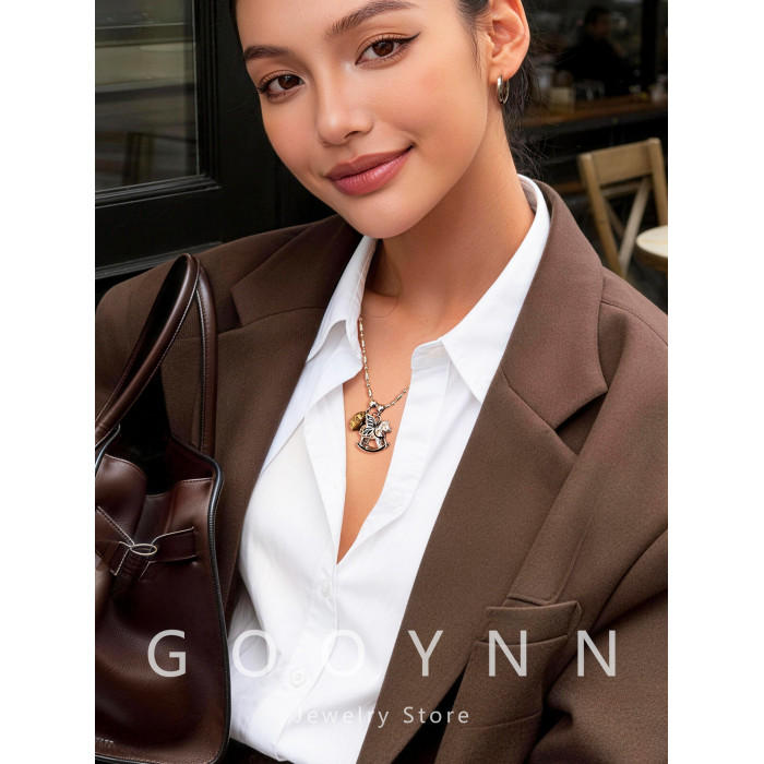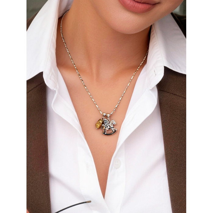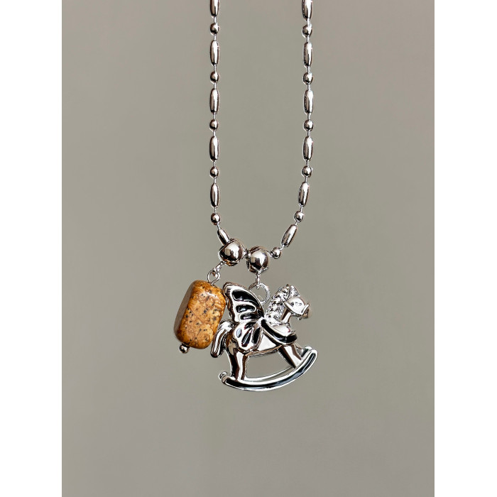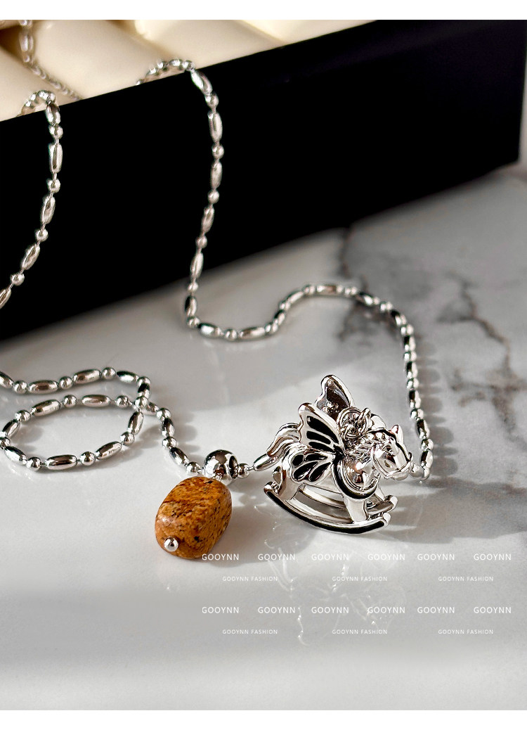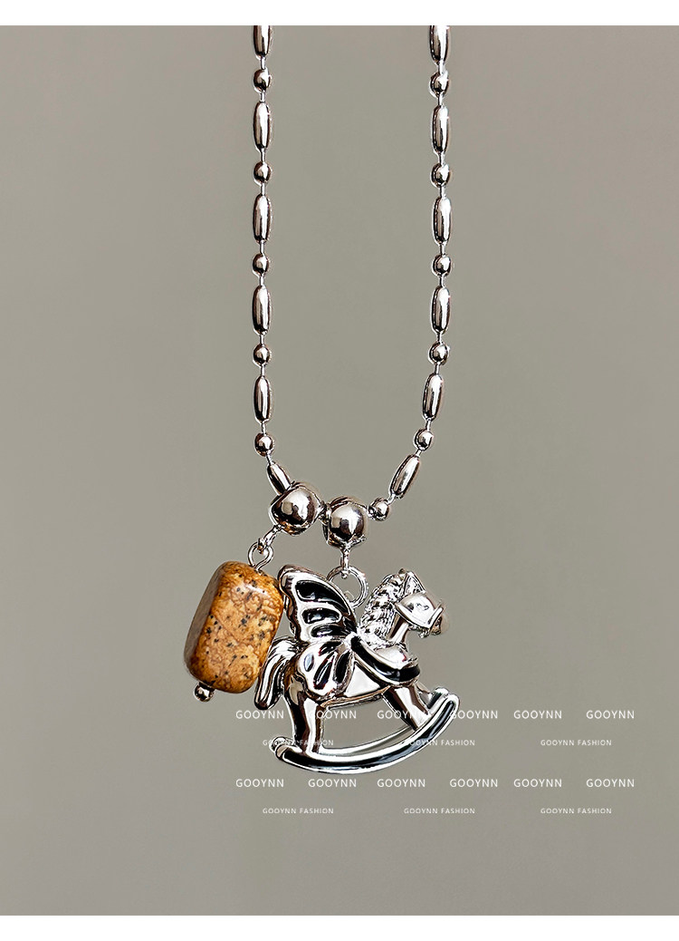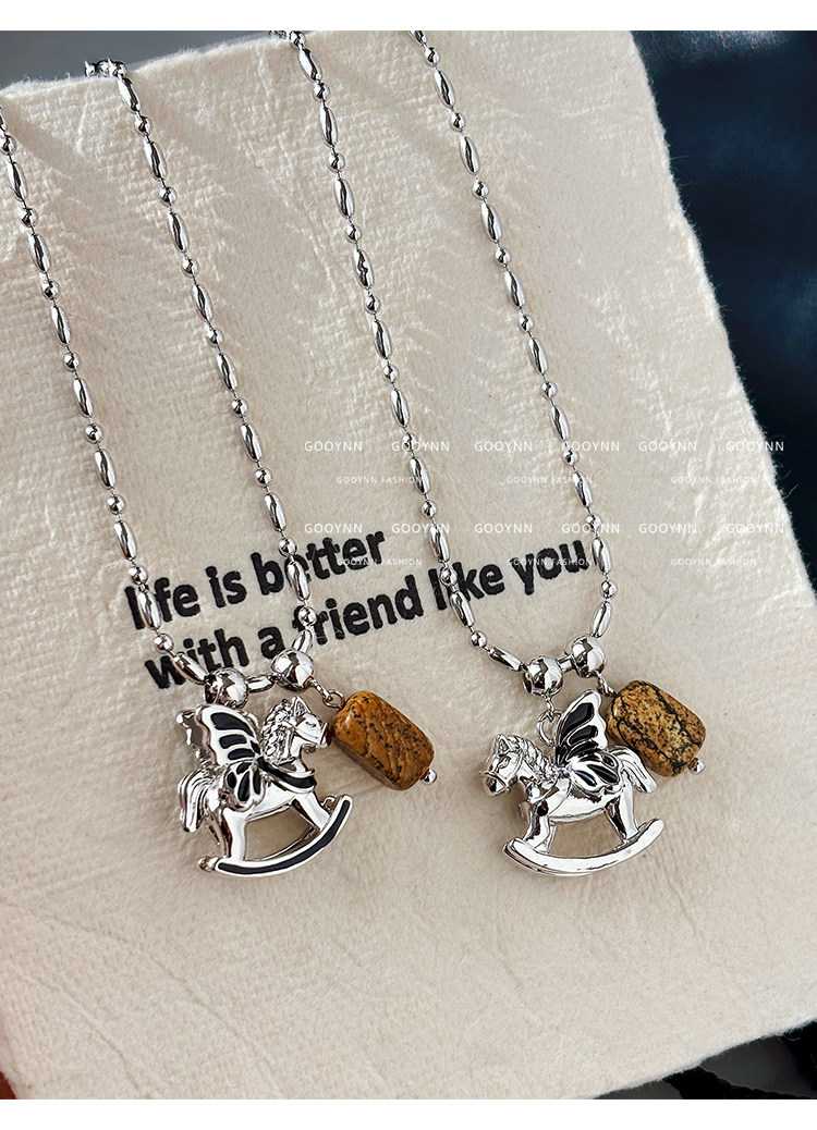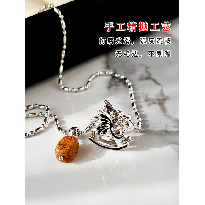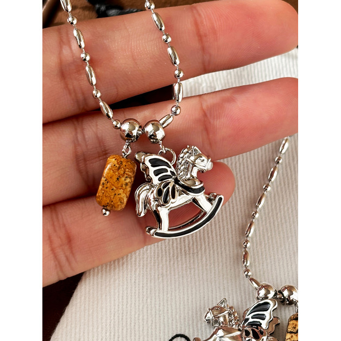 銀色生肖小木馬項鍊女款高級感輕奢小衆鎖骨毛衣鏈本命年長款配飾