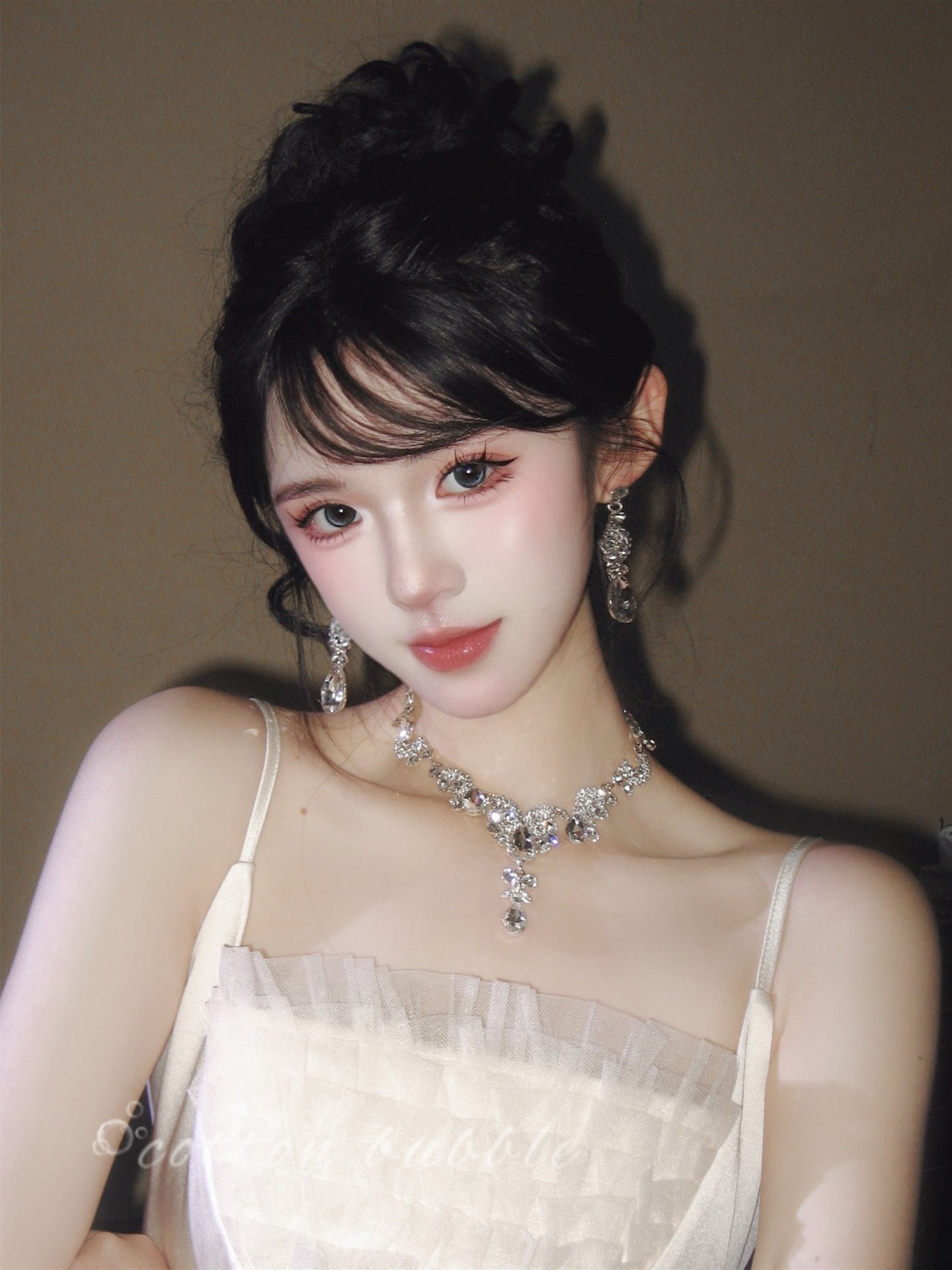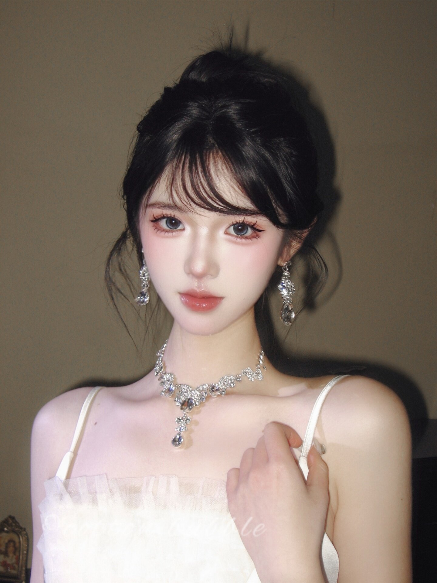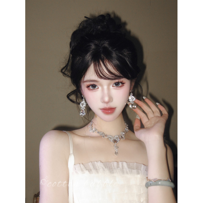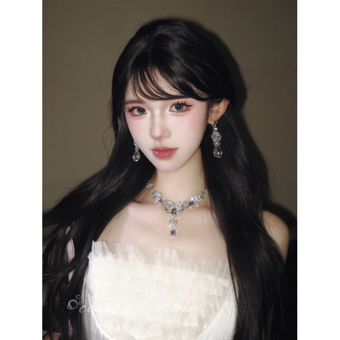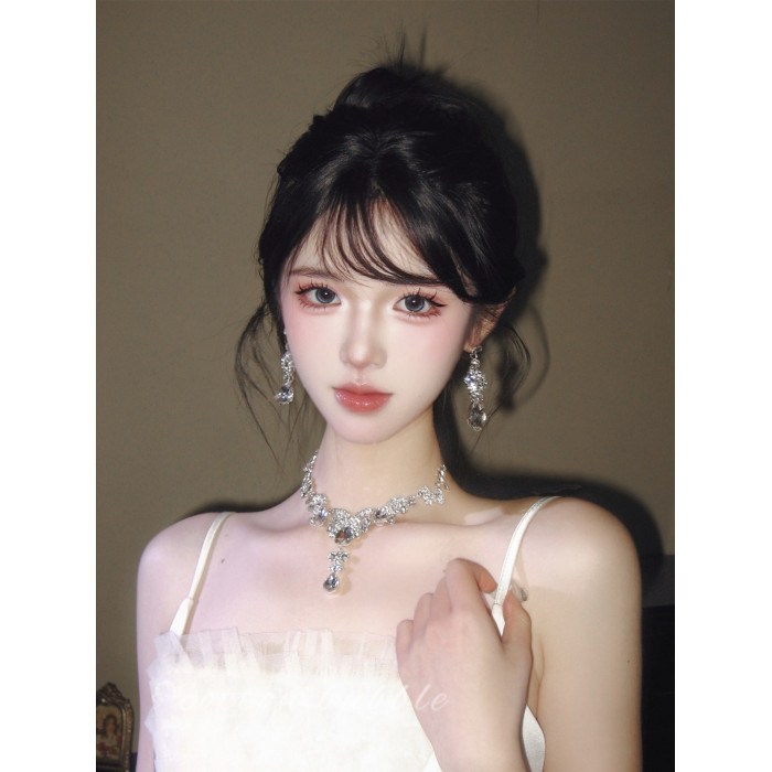 公主生日水滴項鍊耳環套裝輕奢千金晚禮服女新娘高級誇張小衆配飾