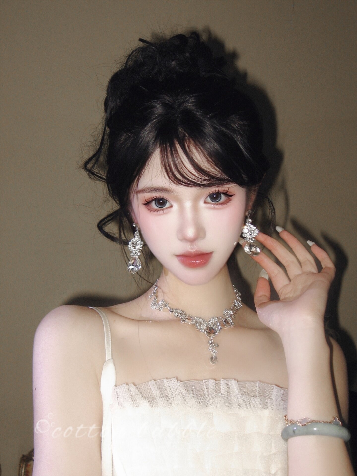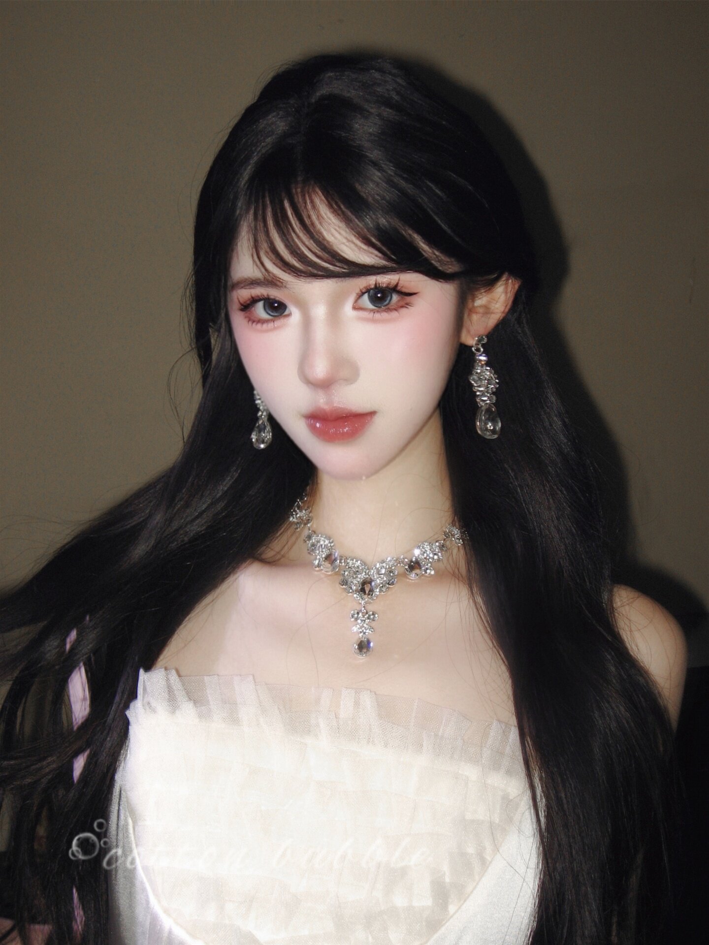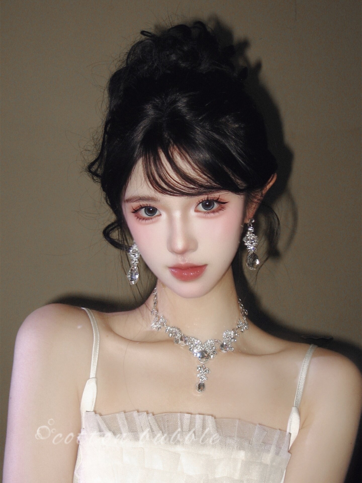 公主生日水滴項鍊耳環套裝輕奢千金晚禮服女新娘高級誇張小衆配飾