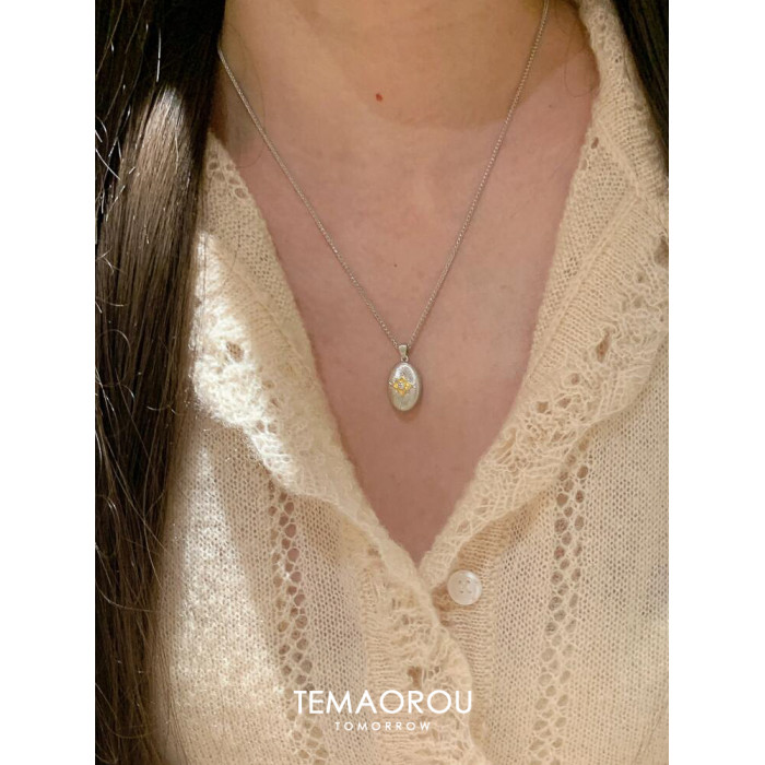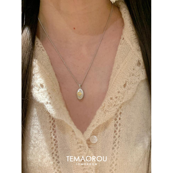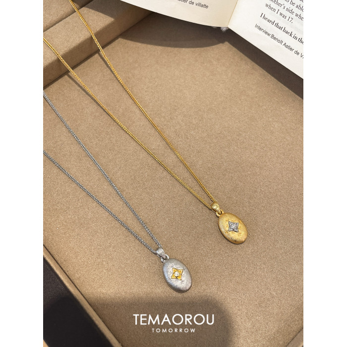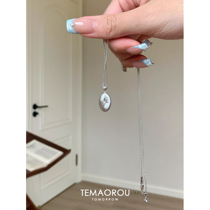 洗澡不掉色“八芒星咖啡豆”點鑽拉絲雙面吊墜項鍊女鎖骨鍊毛衣鏈