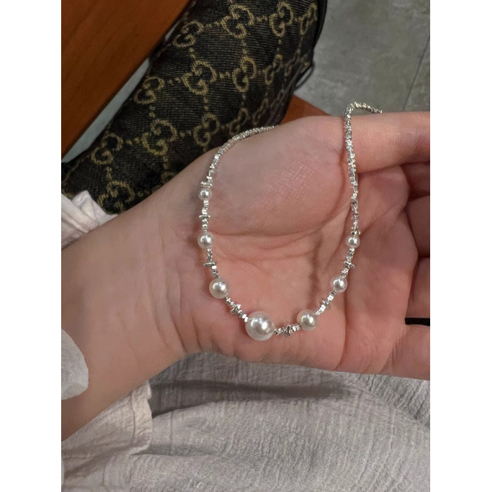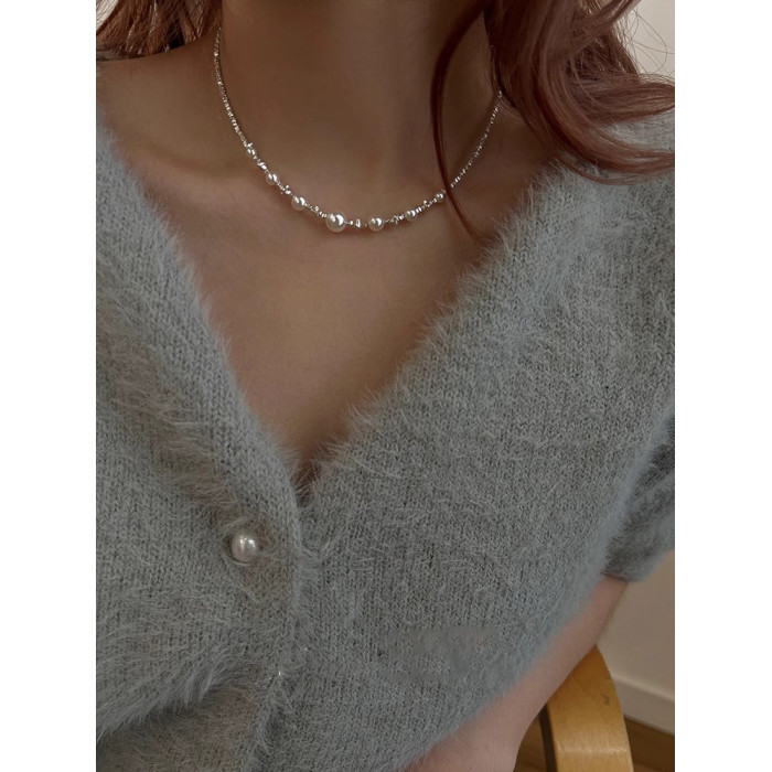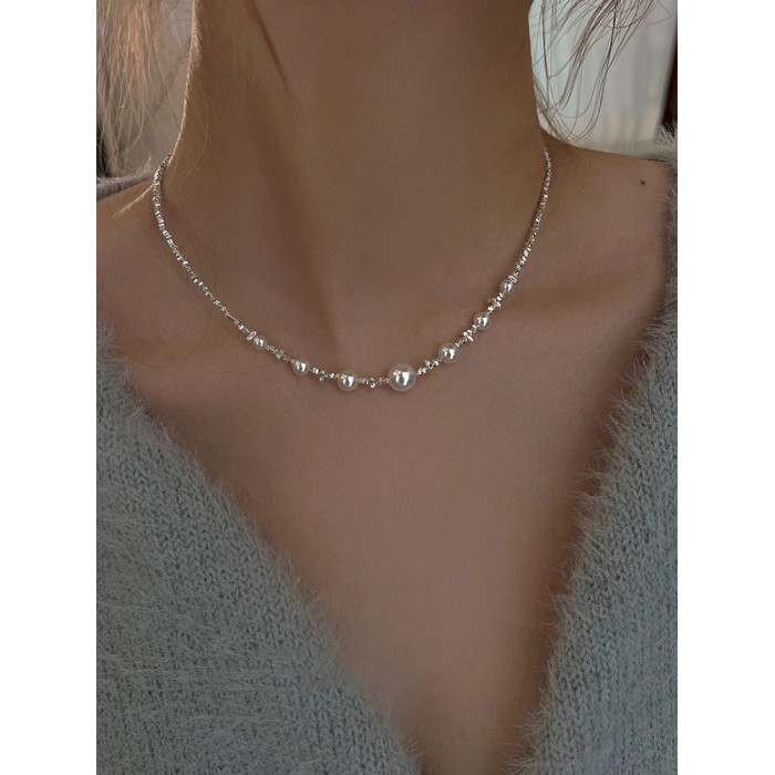強光碎銀幾兩滿天星珍珠項鍊女2025新款爆款高級感精緻小米珠項鍊