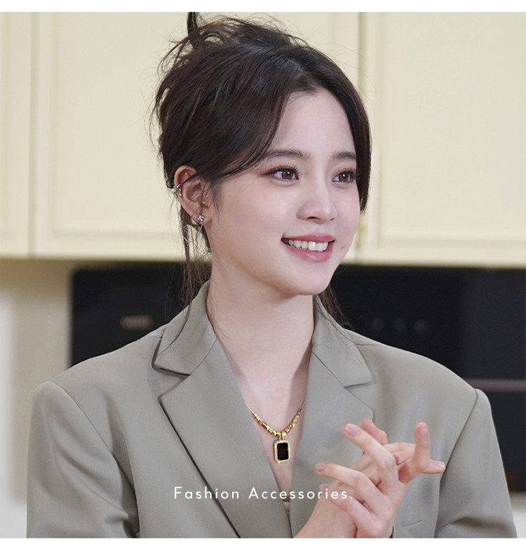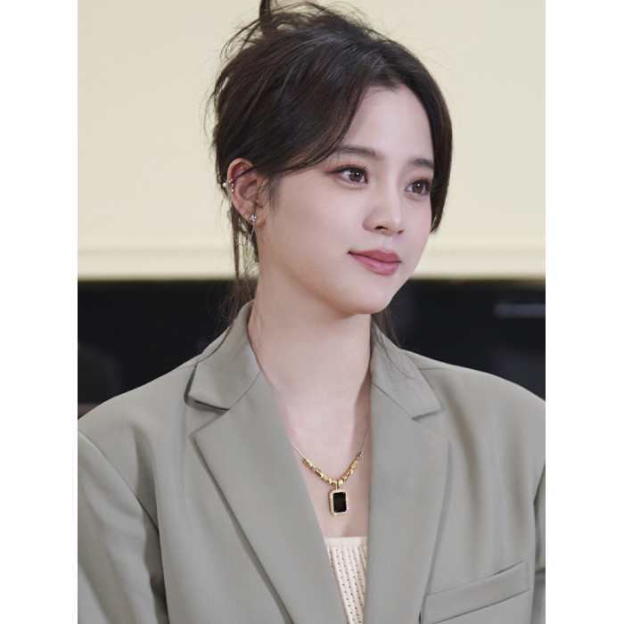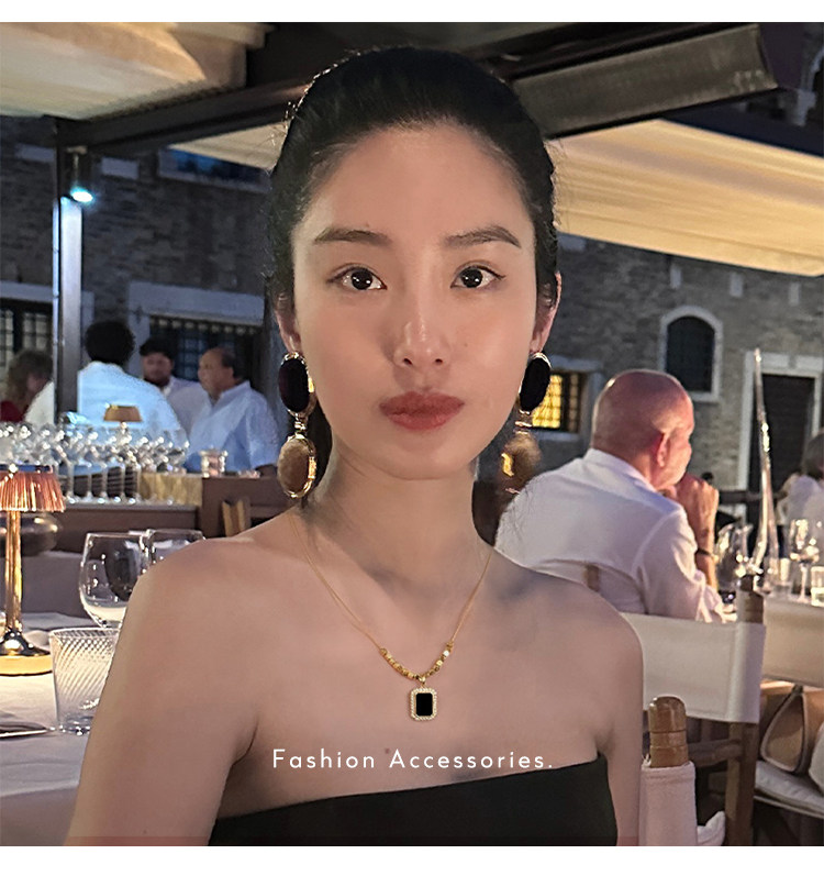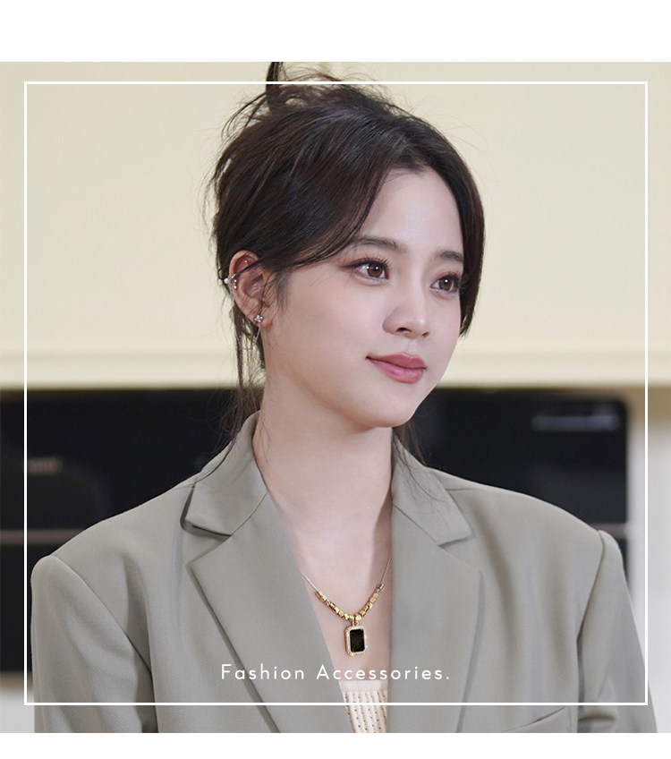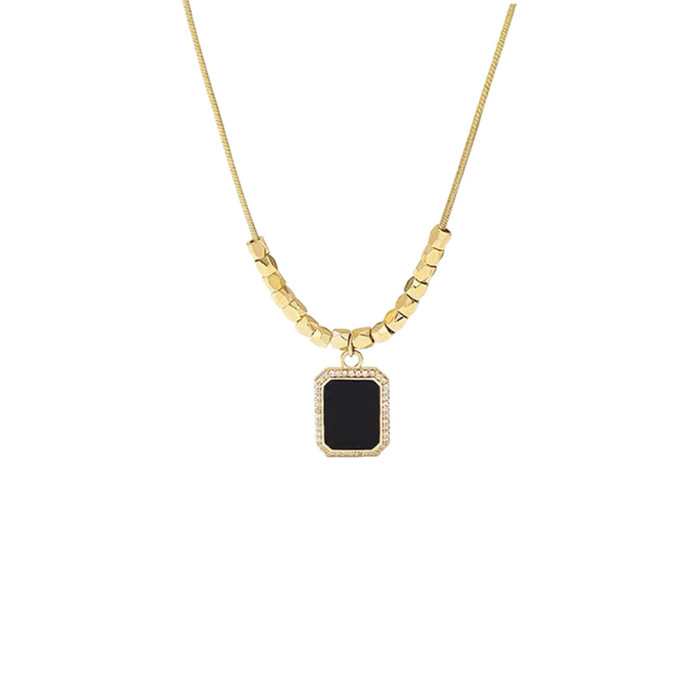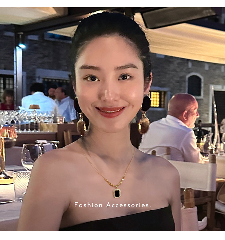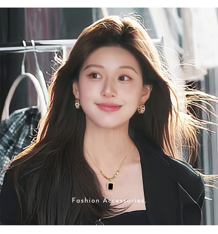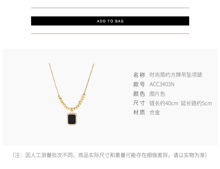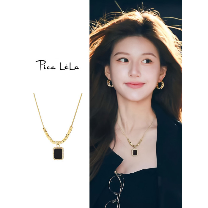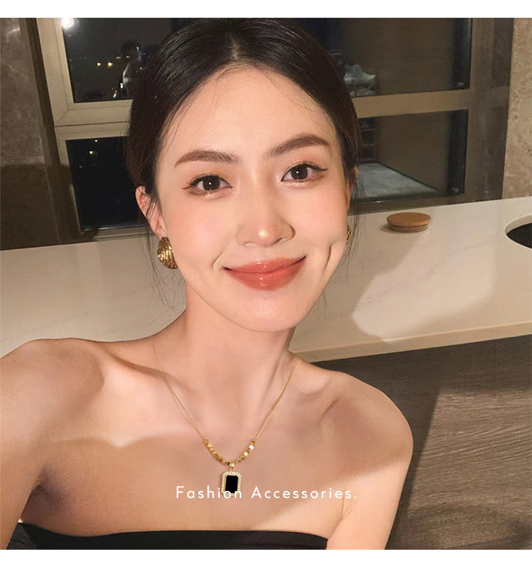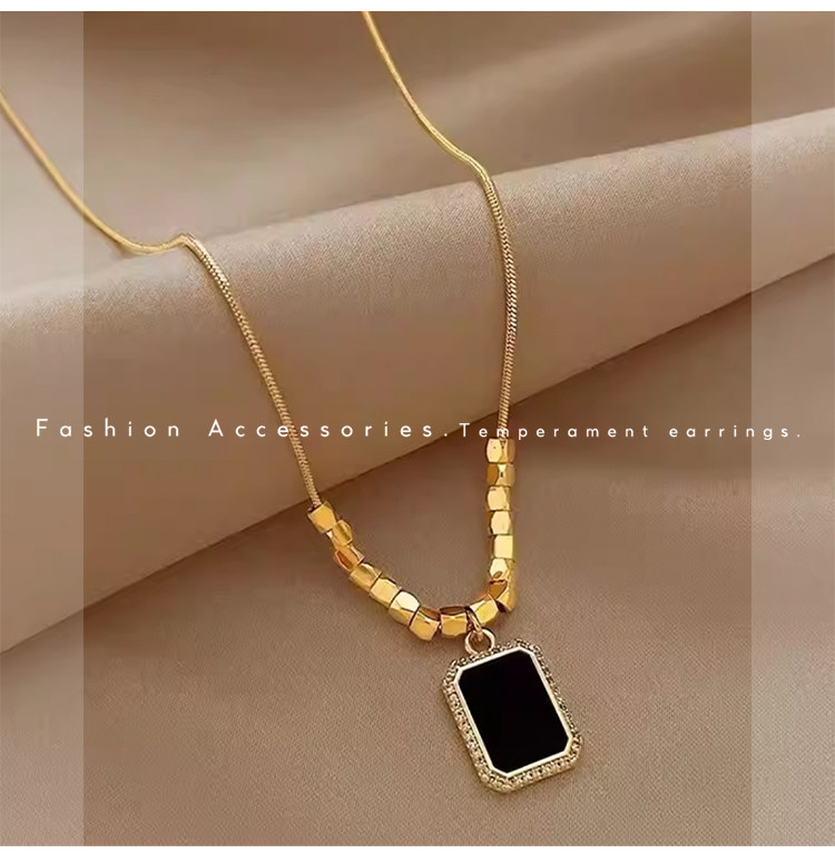 黑色方牌吊墜項鍊2026新款爆款輕奢小衆鎖骨鍊簡約高級感頸鏈配飾