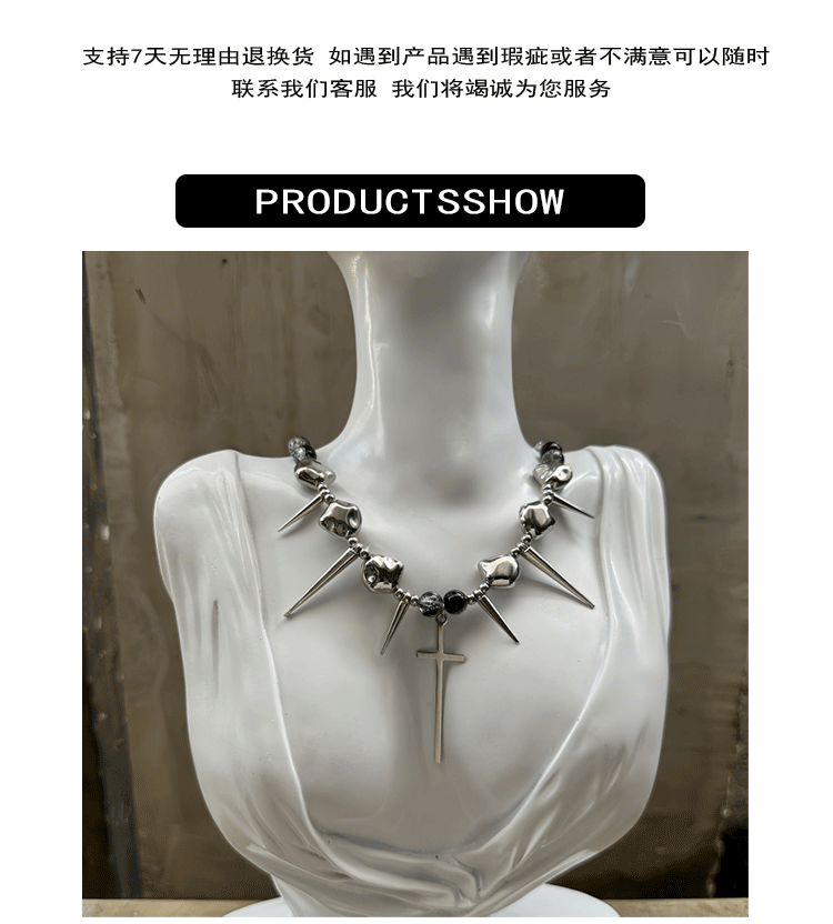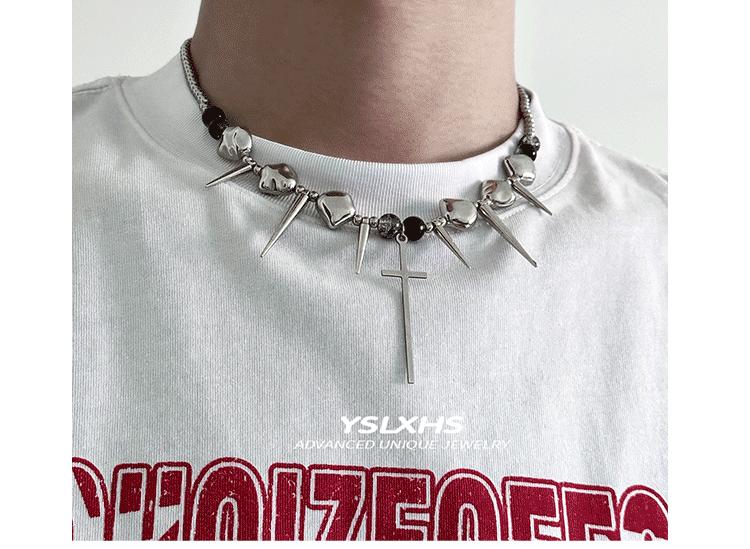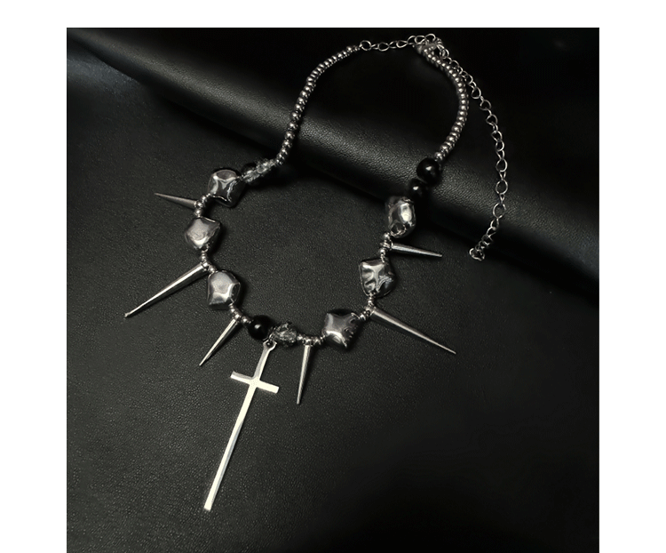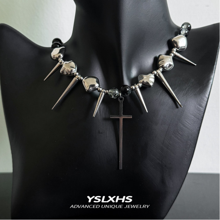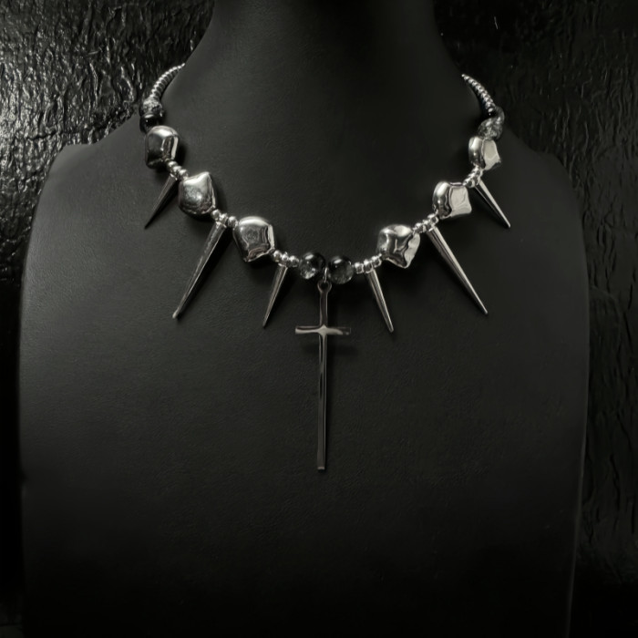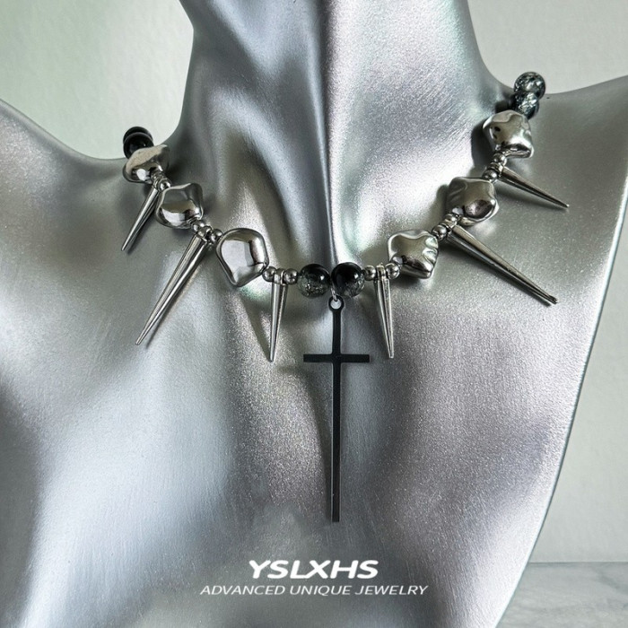 十字架龐克金屬項鍊y2k鉚釘高級感不規則choker亞文化配飾男女款