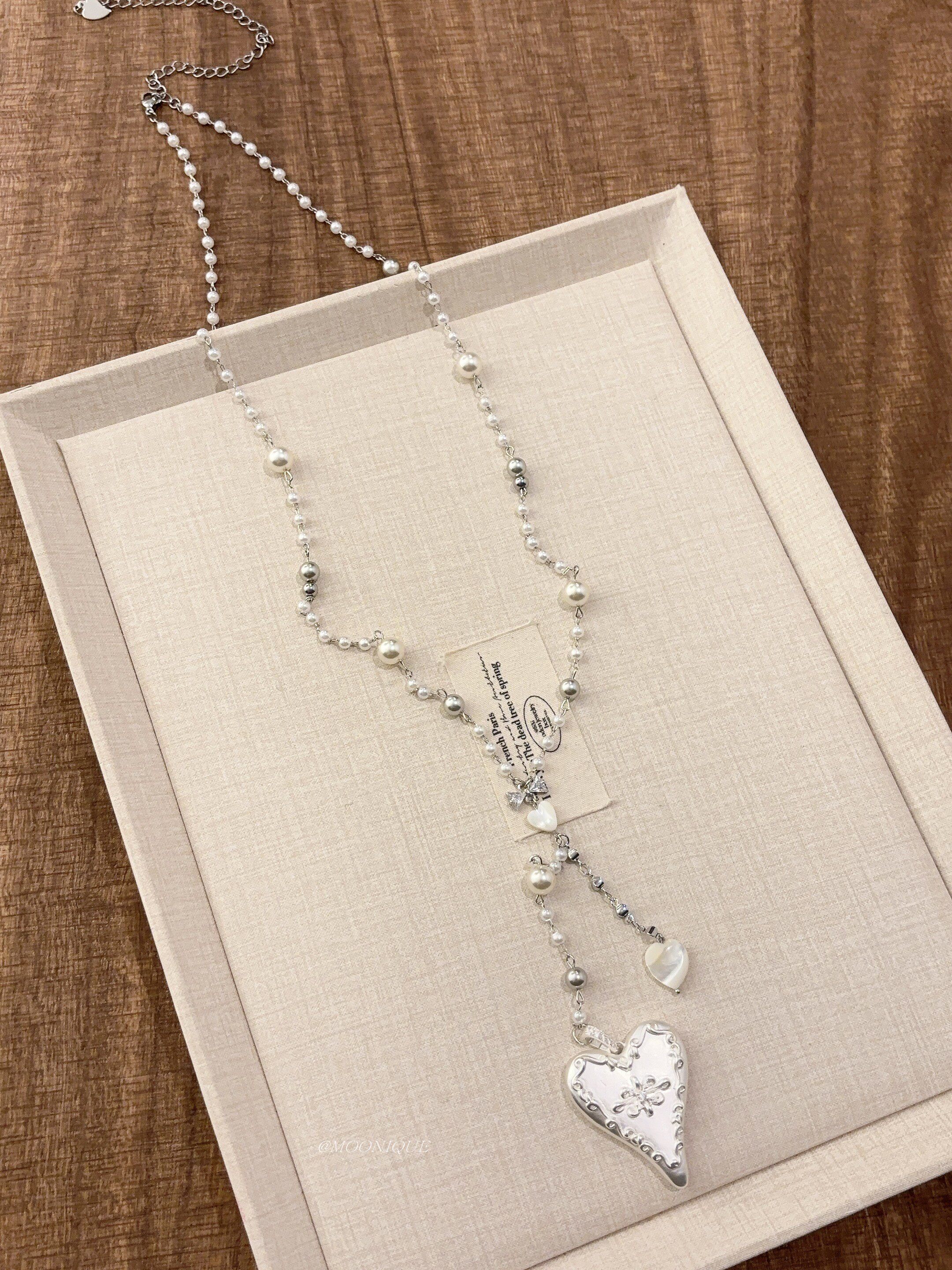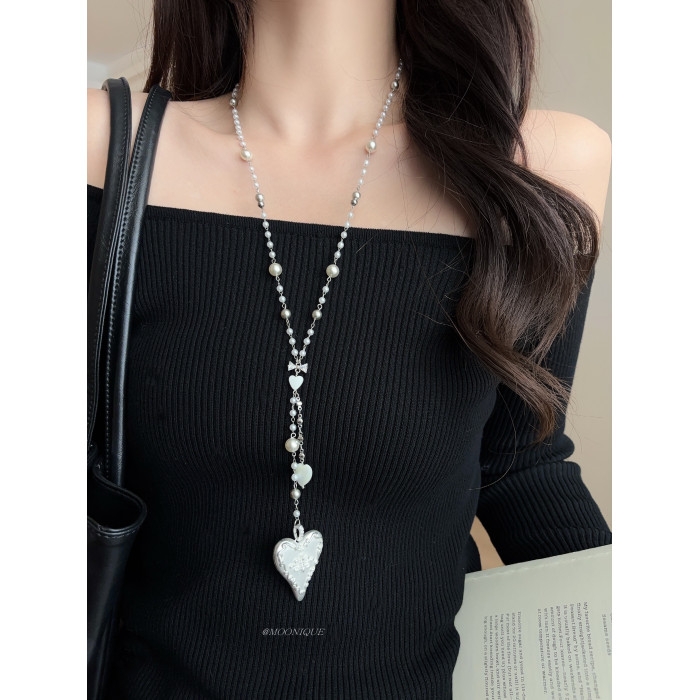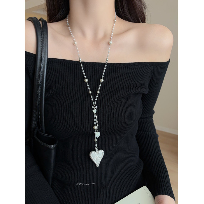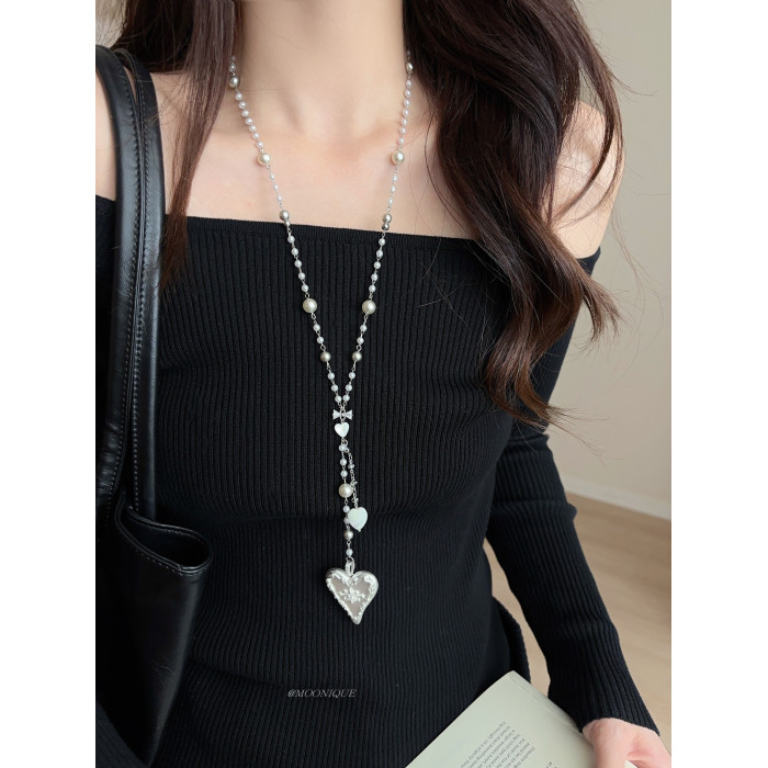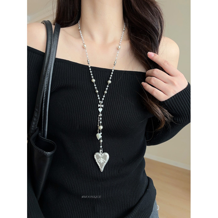 韓國風銀色愛心浮雕奶油蛋糕項鍊女百搭優雅時尚頸鏈長款毛衣鏈配