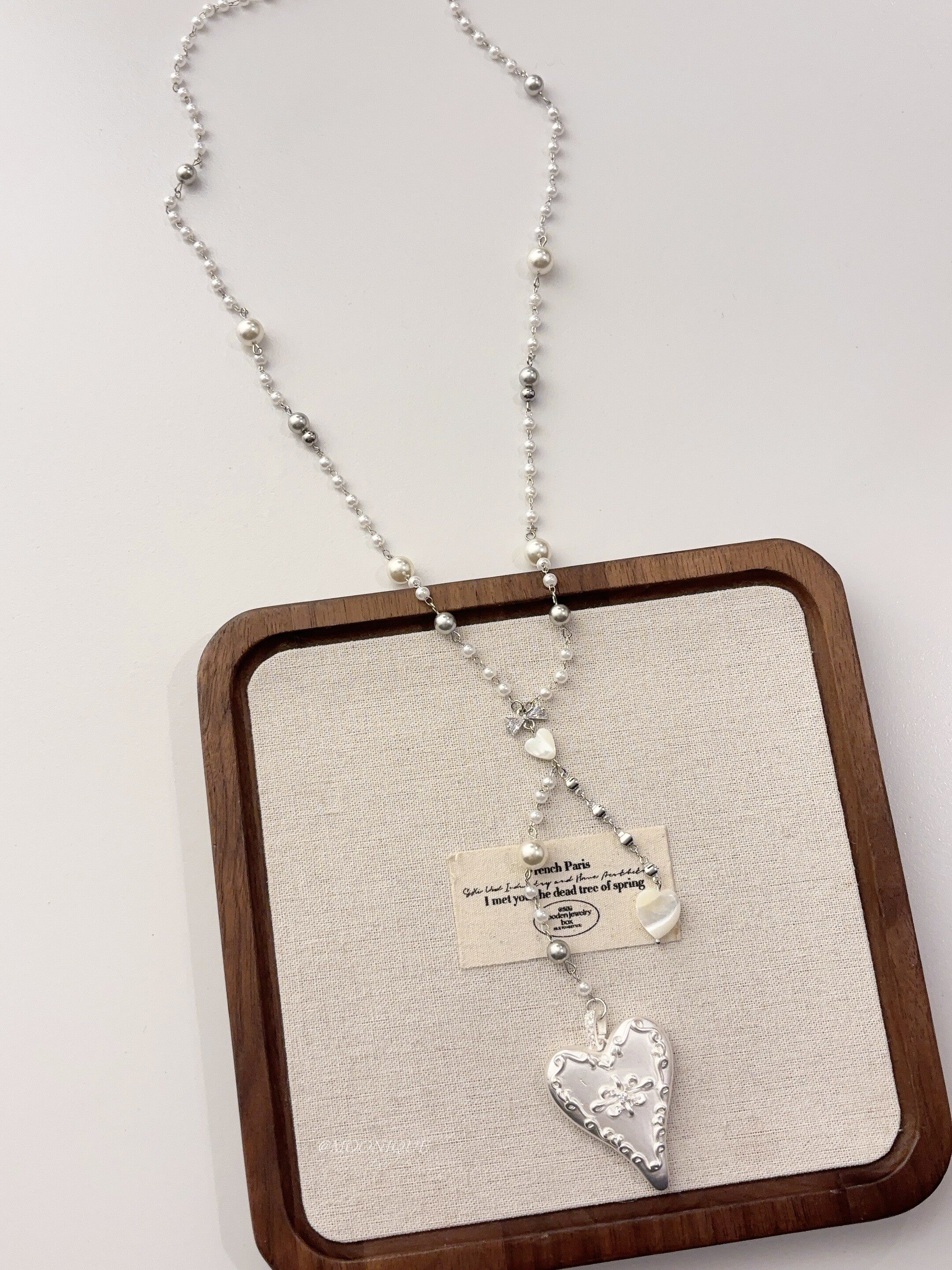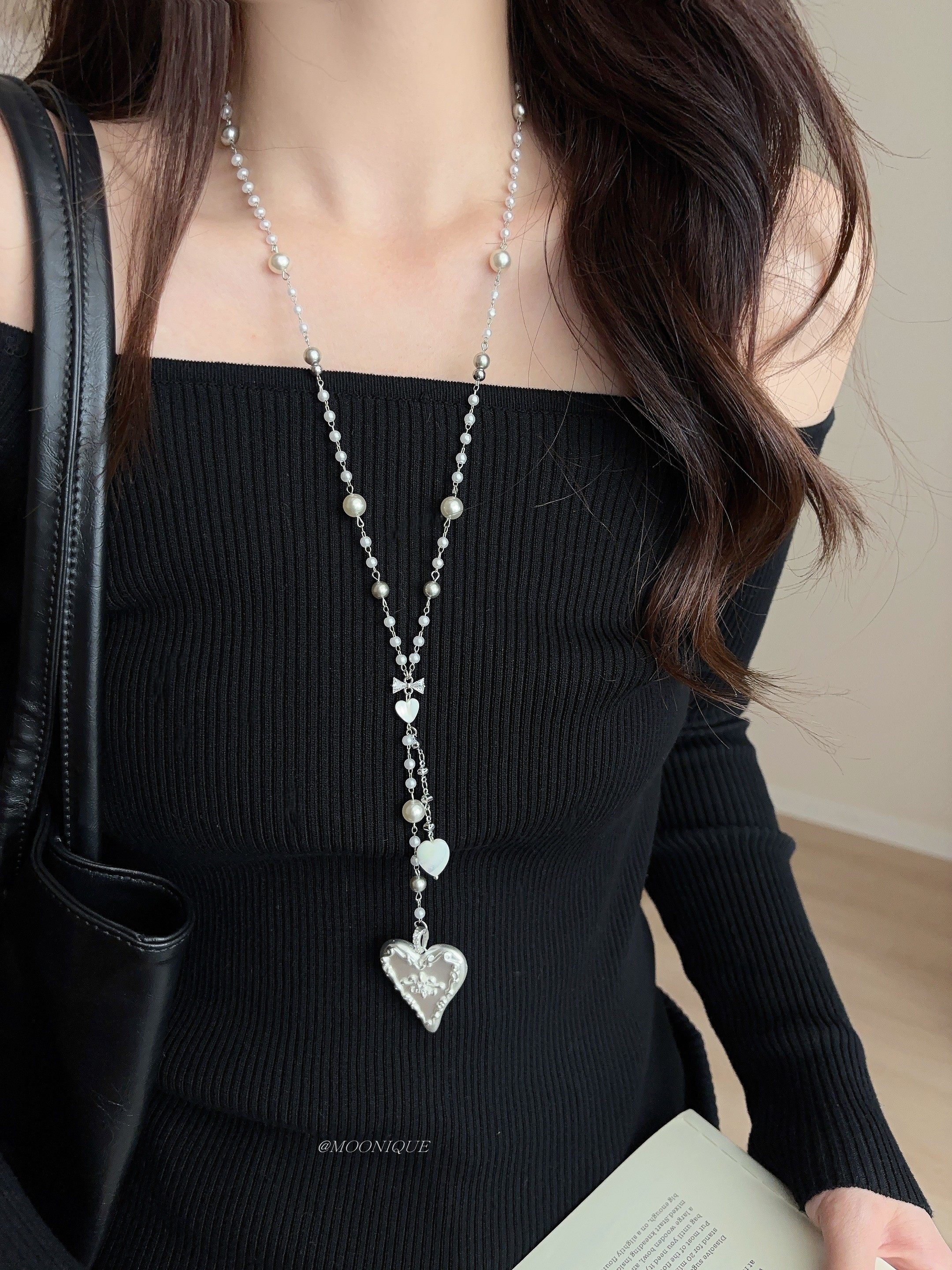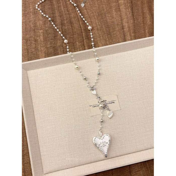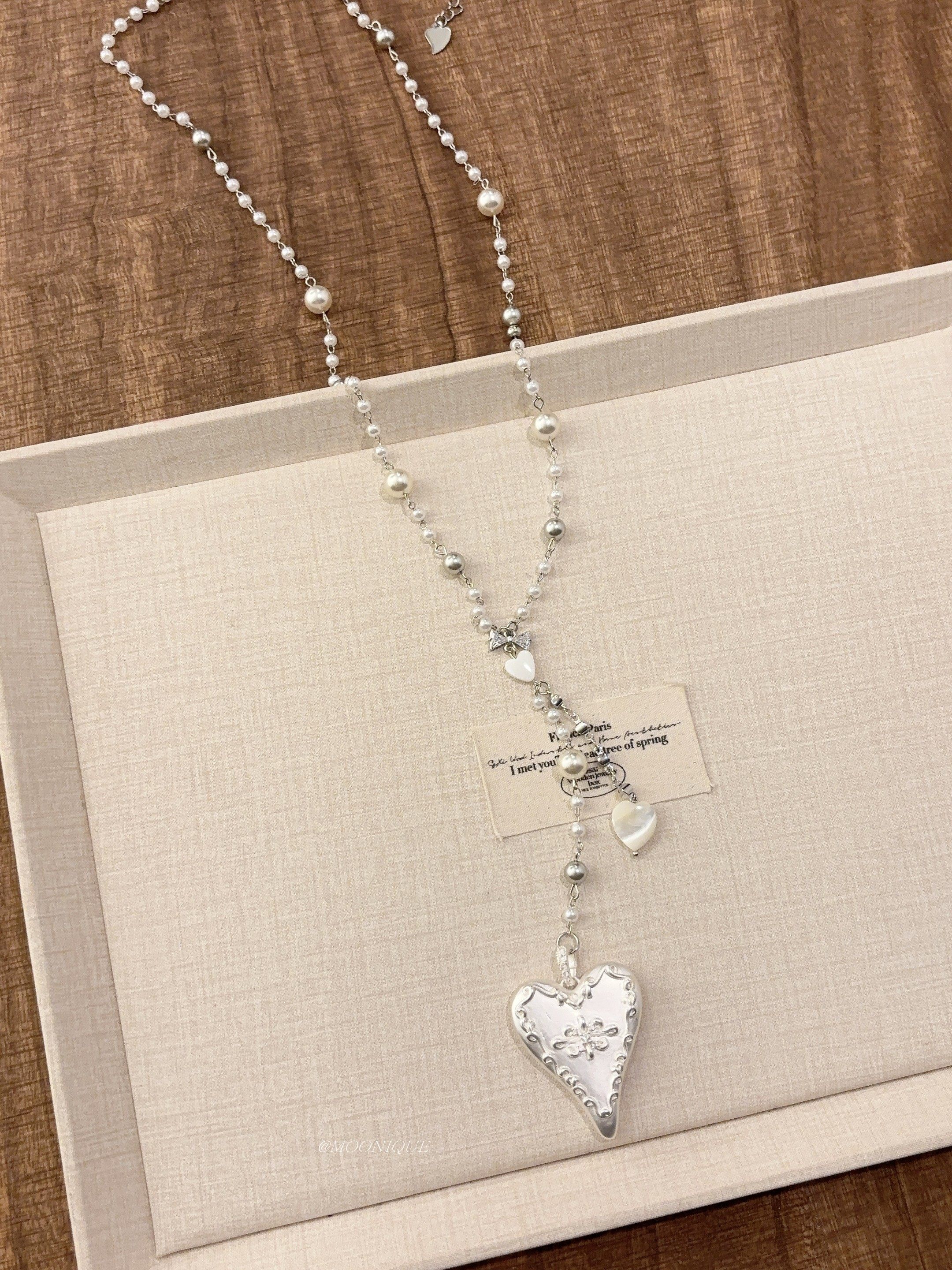 韓國風銀色愛心浮雕奶油蛋糕項鍊女百搭優雅時尚頸鏈長款毛衣鏈配