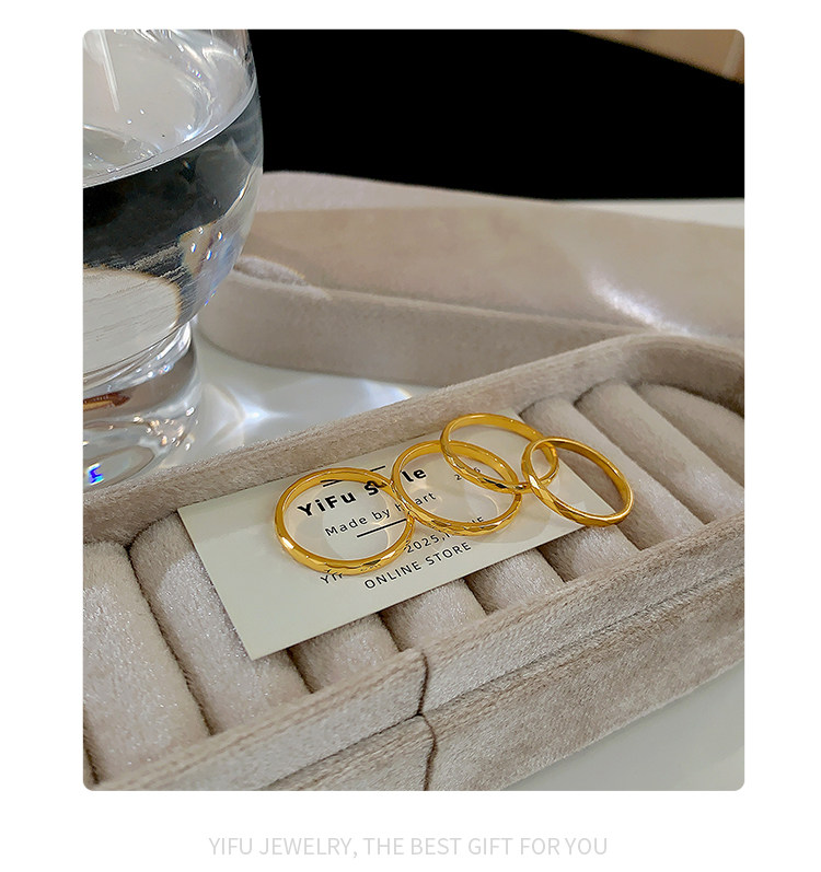 金色素圈戒指女輕奢高級感不掉色鈦鋼素戒2025新款爆款裝飾指環細