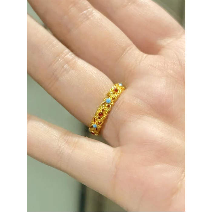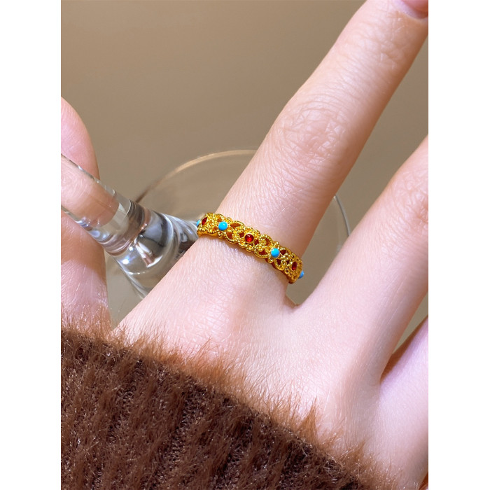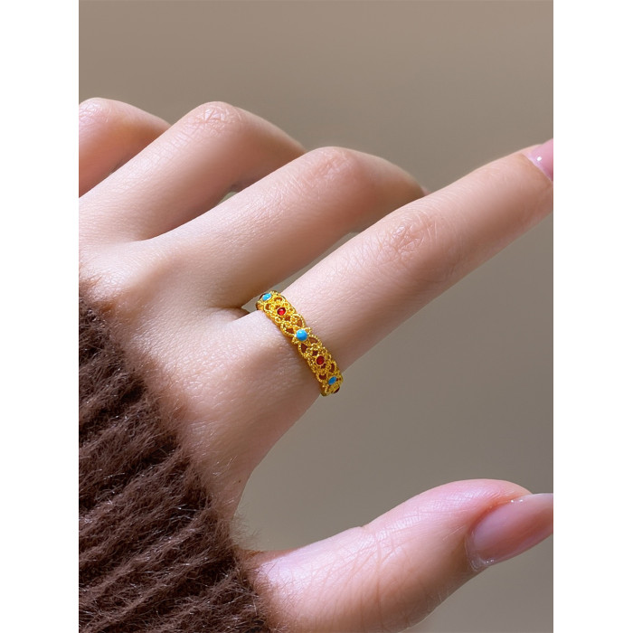 古法琺瑯彩開口戒指女款輕奢不掉色百搭食指環2026新款小衆設計感