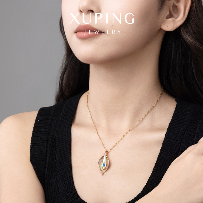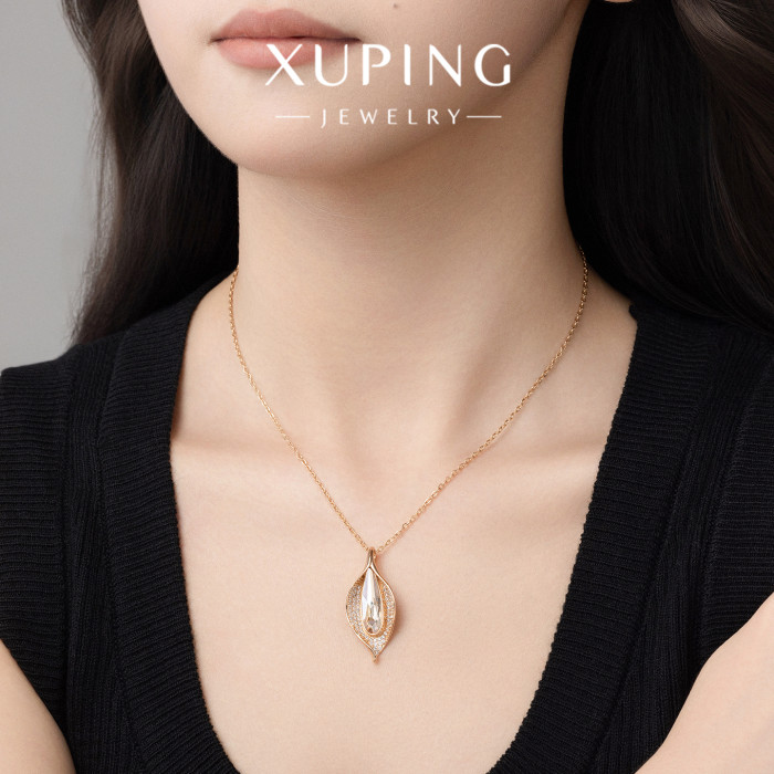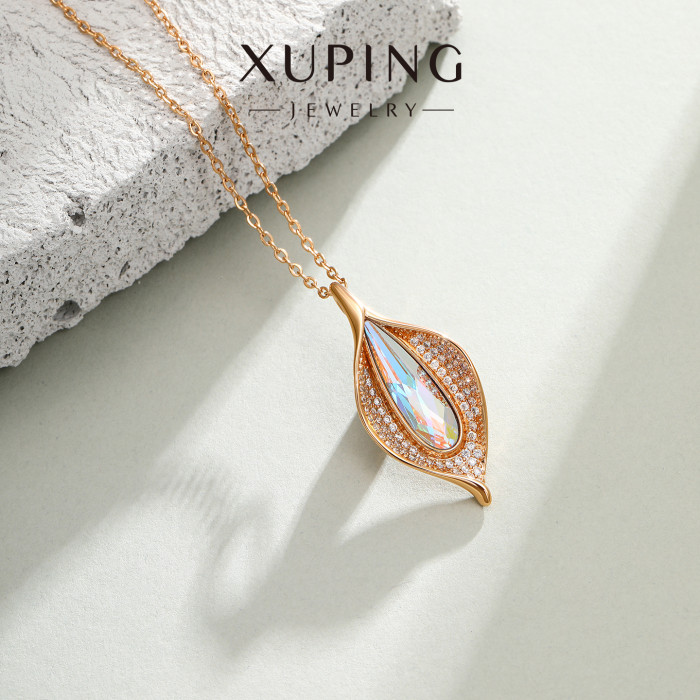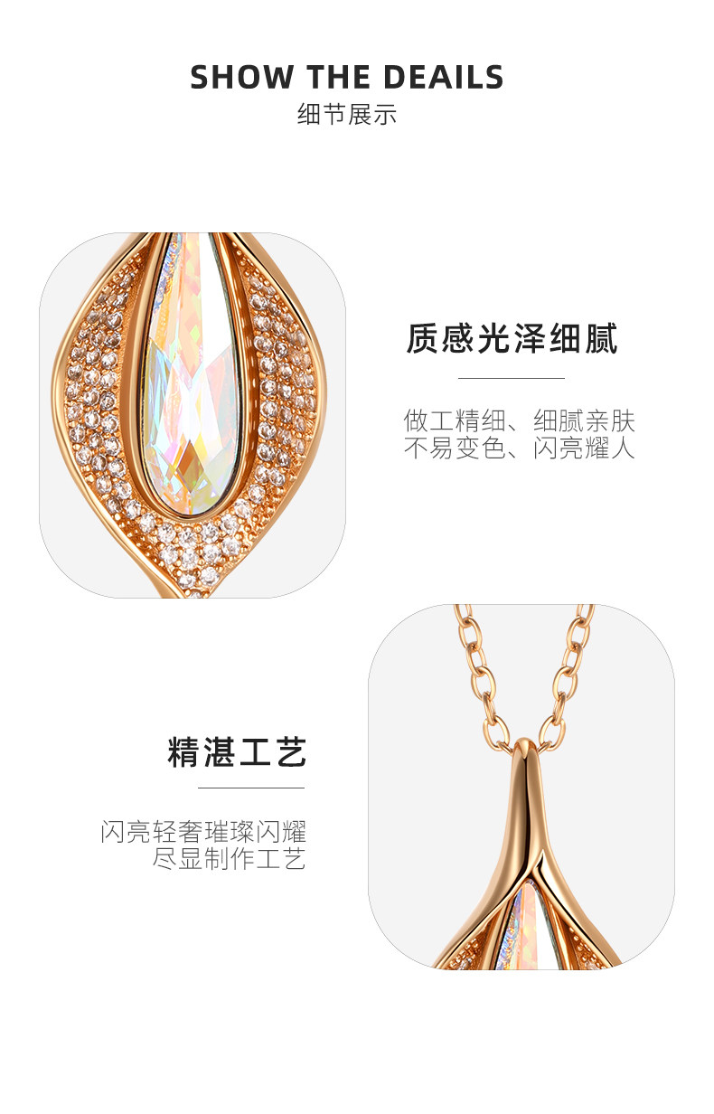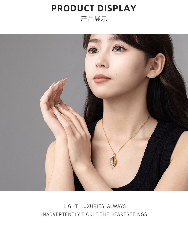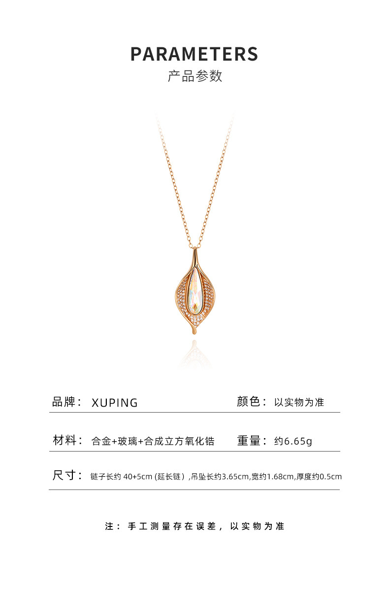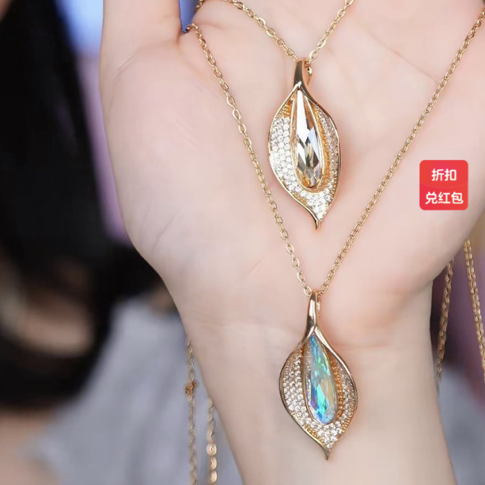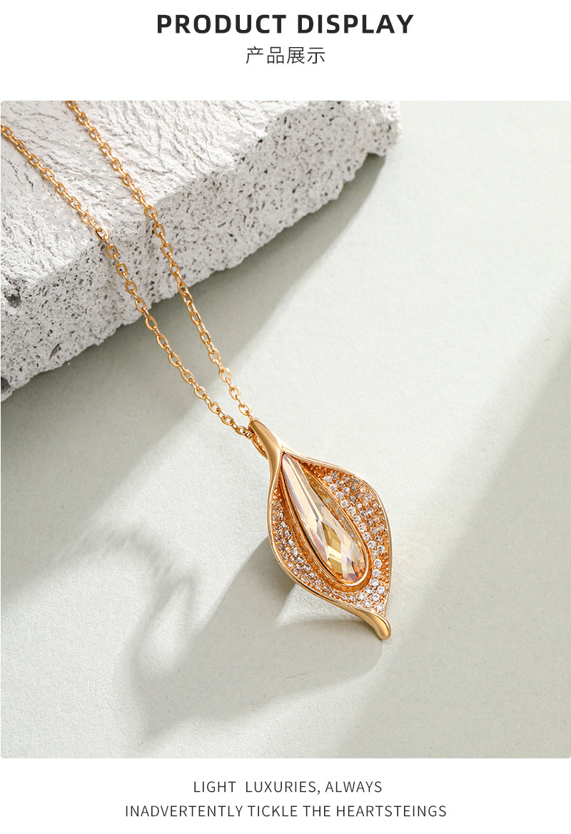 柔柔時尚輕奢重工合金馬蹄蓮仿水晶項鍊